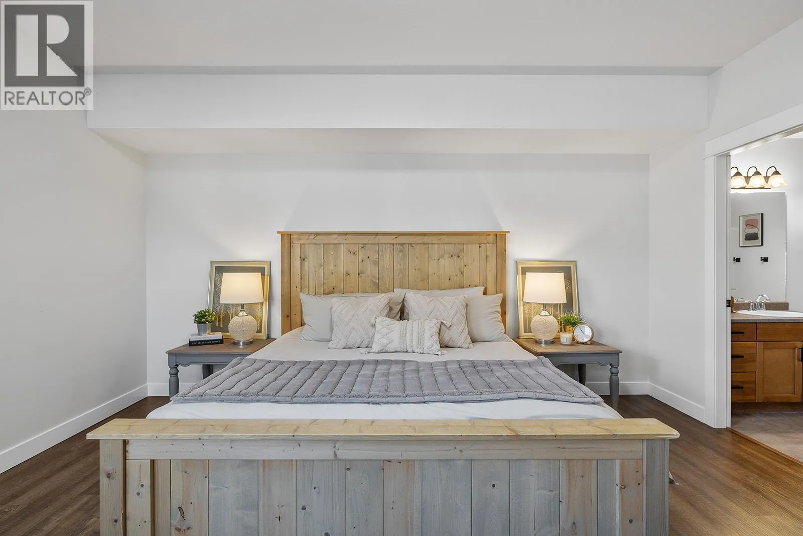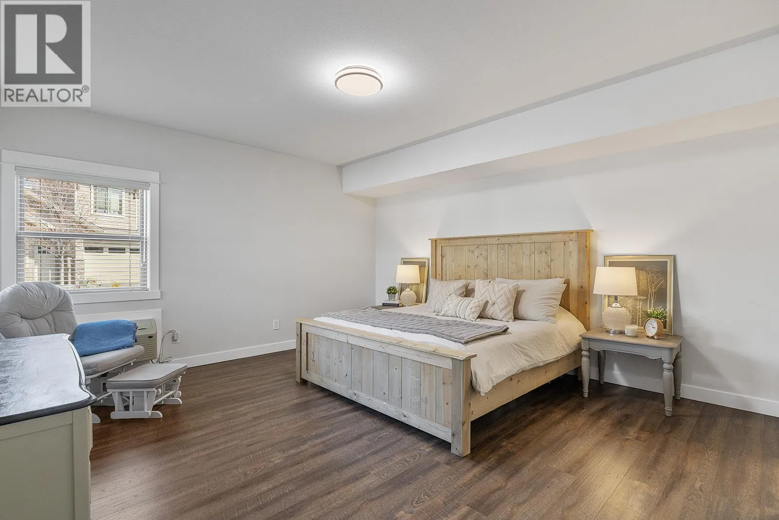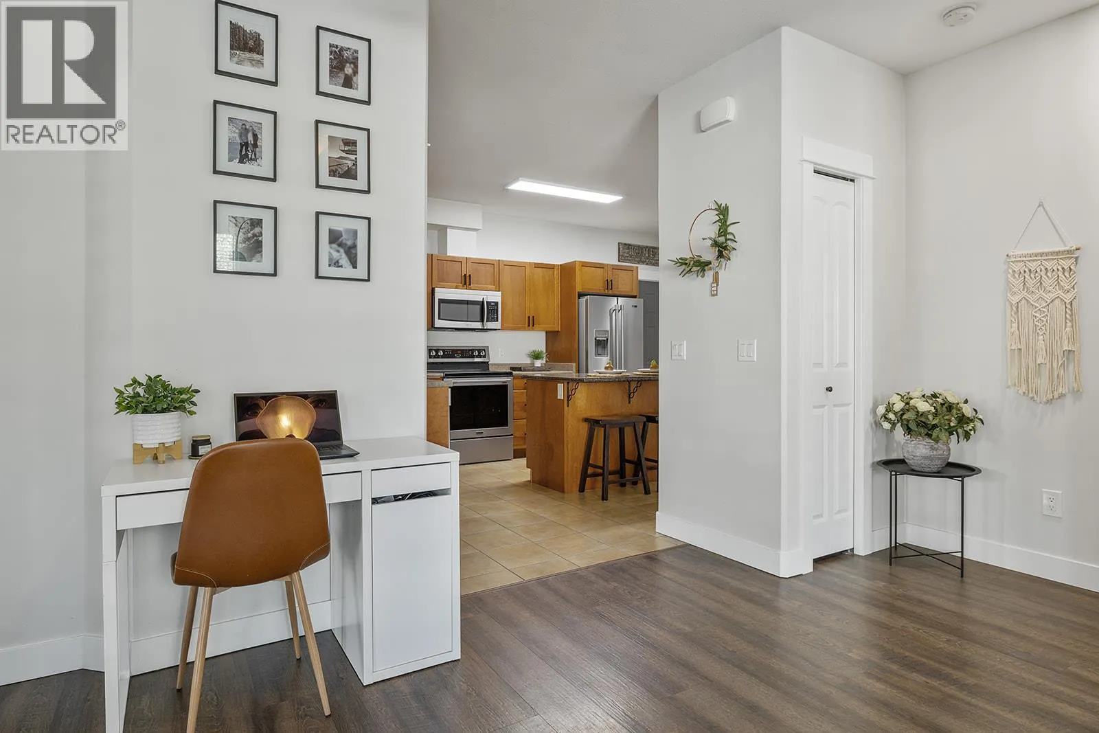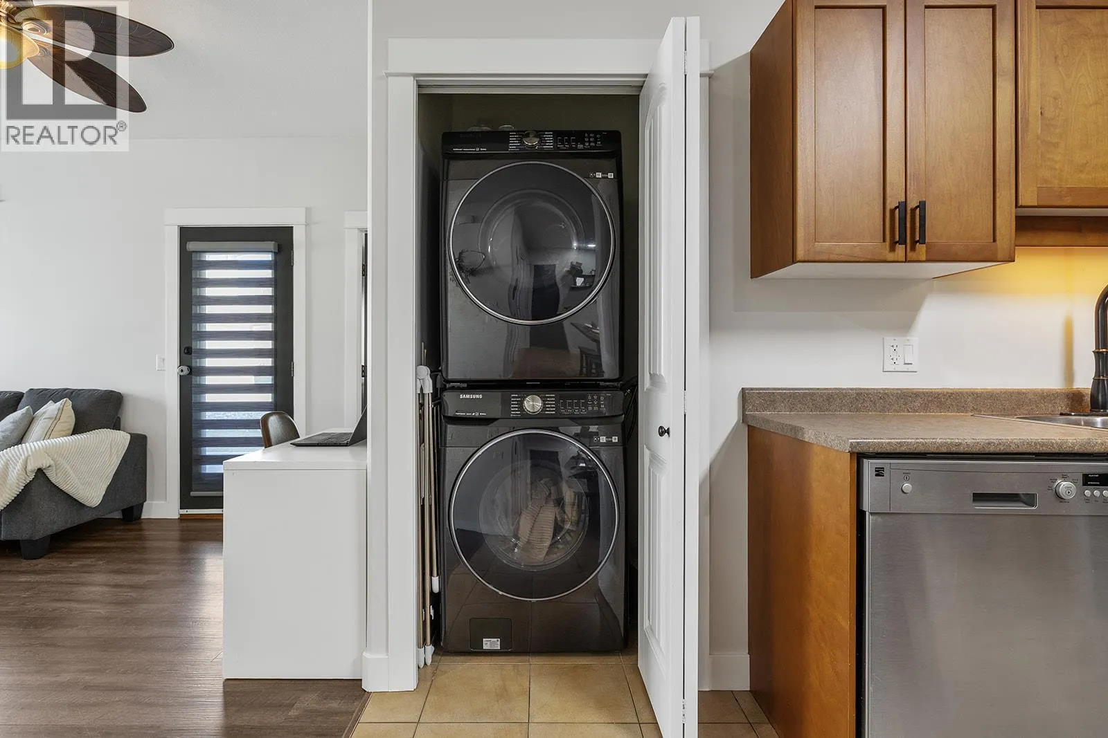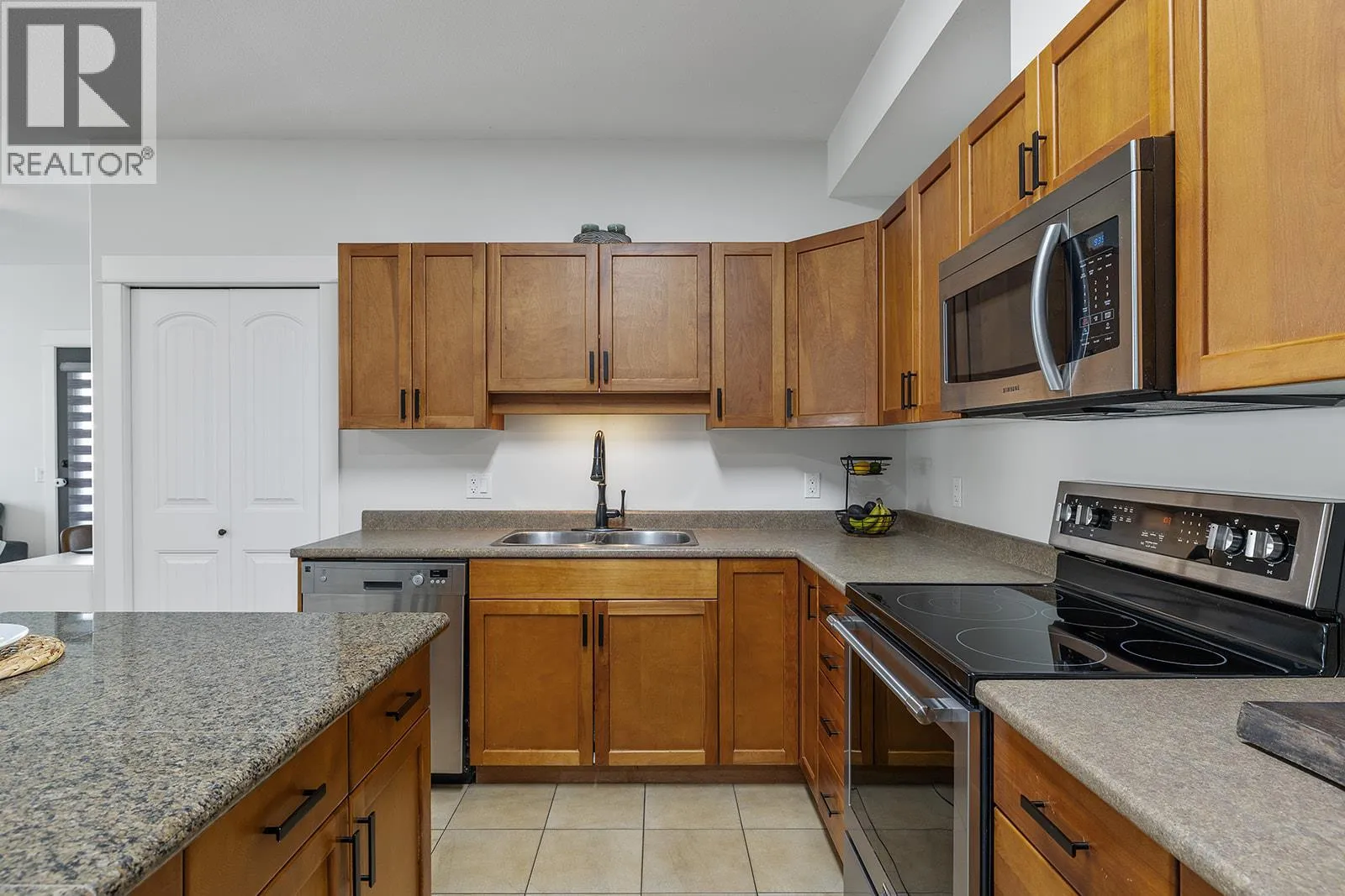Welcome to this charming ground-floor 2 bed, 2 bath home offering comfort, convenience, and exceptional value. Immaculately maintained and freshly painted throughout, this unit is move-in ready and thoughtfully designed. The bright kitchen features updated stainless steel appliances, an eat-up island, and direct access to the attached single-car garageâperfect for everyday ease. A private front entry also leads directly into the kitchen for added functionality. The spacious living room opens onto a covered concrete patio and grassy area, creating a seamless indoor-outdoor living experience. The well-designed split-bedroom layout ensures privacy, with a generously sized primary bedroom featuring a 3-piece ensuite and walk-in shower. The second bedroom is bright and inviting, with convenient access to a full 4-piece bathroom. Thoughtful upgrades include newer lighting with dimmable features, a newer hot water tank, and two new P-TAC systems for efficient heating and cooling. Plus, low strata fees keep ownership affordable. Pet lovers will appreciate the rare allowance of 2 dogs or cats with no size restrictions. The attached garage provides parking for one car w/ storage with convenient access to first-come, first-serve parking for residents & visitors just outside. Steps to The Rail Trail, Beasley Park & beachâenjoy lake days, trails & easy Lake Country living right at your doorstep. A fantastic opportunity for first-time buyers, downsizers, or investors alike! (id:27476)