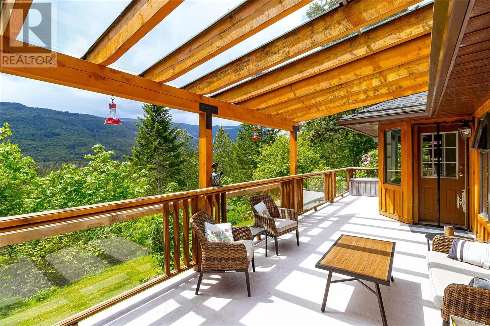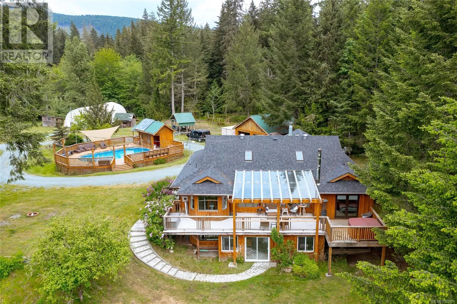Perched on a hilltop overlooking forests & mountains this lovely main lvl entry w/walkout basement home sits on a private 7.02 acre estate. The 4/5 bdrm, 3 bath main home features vaulted ceilings, tons of natural light & skylights, hardwood floors, oak kitchen cabinets, pellet stove, propane fireplace & lots of deck space. The second home has 2 bdrms, 2 baths, open concept living areas & is completely separate on the property. The property is mostly forested w/clearings around each home & there are trails all throughout. There is a large above ground pool w/wet bar, sauna & surrounding deck, 40x60 Quonset hut, detached dbl garage w/extra rooms, numerous outbuildings & includes 2 generators (1 w/auto transfer switch). Nature, trails, parks, the Cowichan River & Lake Cowichan amenities all at your doorstep. Ideal for multiple families, rental income or your own peaceful oasis. From the minute you enter the driveway, you will be pleased. There is extensive value here! (id:27476)