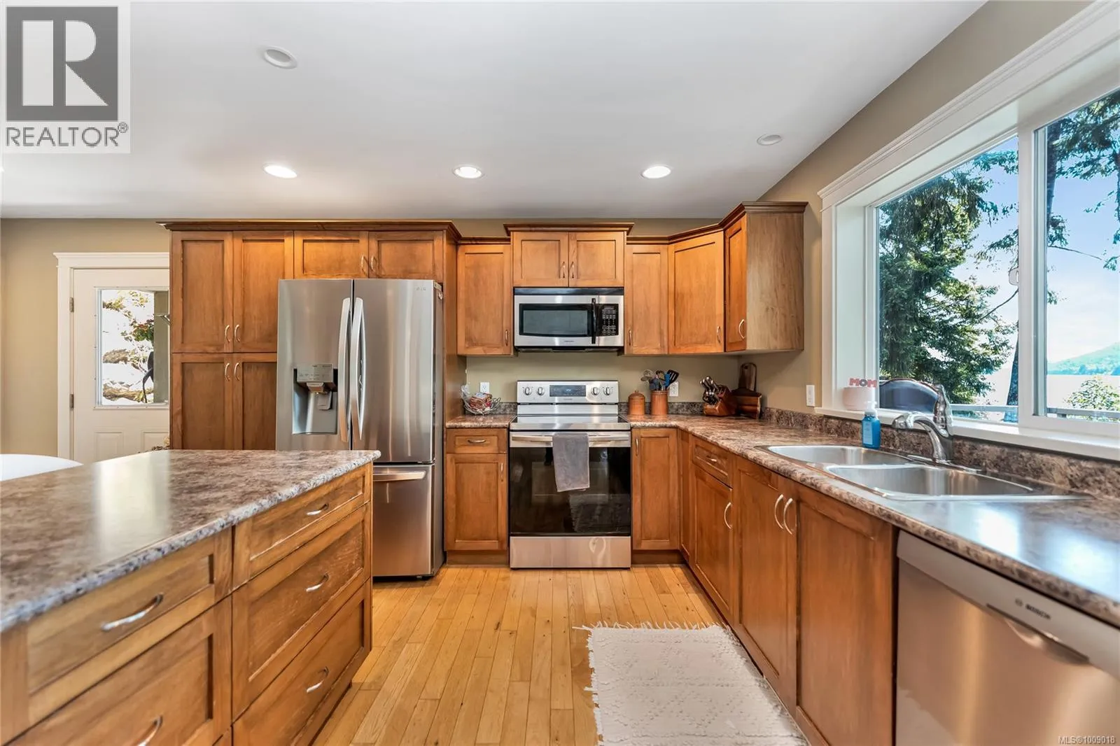 Welcome to your private lakeside sanctuary on Marble Bay Road. This exceptional property offers a remarkable 200 feet of private waterfront on Lake Cowichan, complete with your own sandy beach, dock, and moorage. Step inside to a home that is both warm and inviting. The stunning open-plan living, dining, and kitchen area features a magnificent custom stone fireplace and soaring 18-foot cedar vaulted ceilings. The living room's big, open windows frame incredible lake views, which you can also enjoy from your private lake-view balconies. Nestled within a small, gated community, this home offers a rare blend of privacy and security. It also features suite potential, providing a flexible space for an in-law suite, guest accommodations, or as a source of rental income. This isn't just a house; it's a place to create a lifetime of memories, where family and friends will gather for fun and adventure, while still enjoying the quiet, peaceful relaxation of lakeside living. (id:27476)