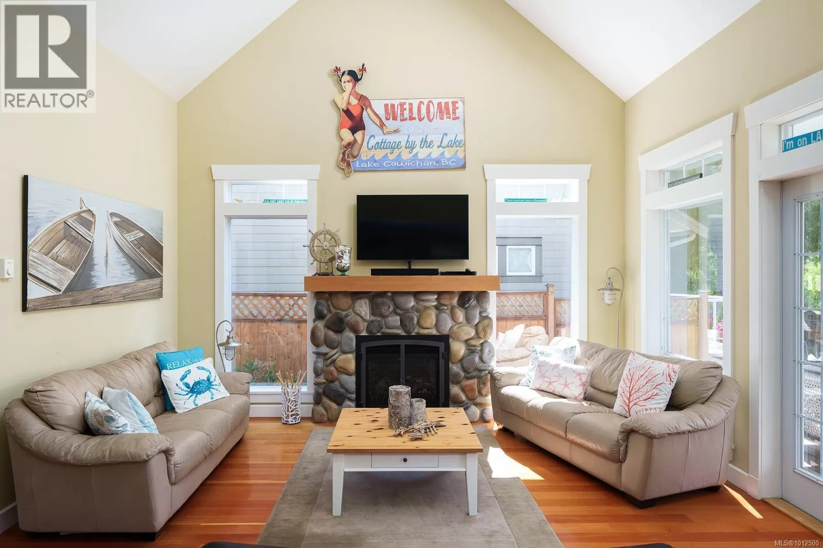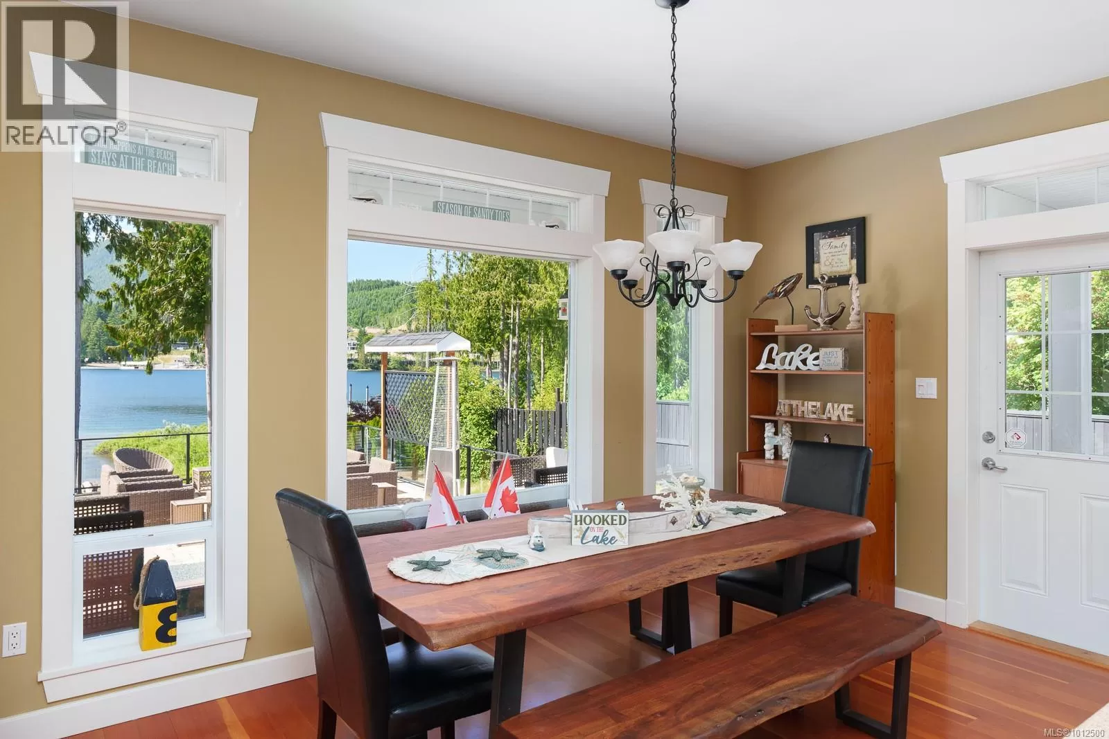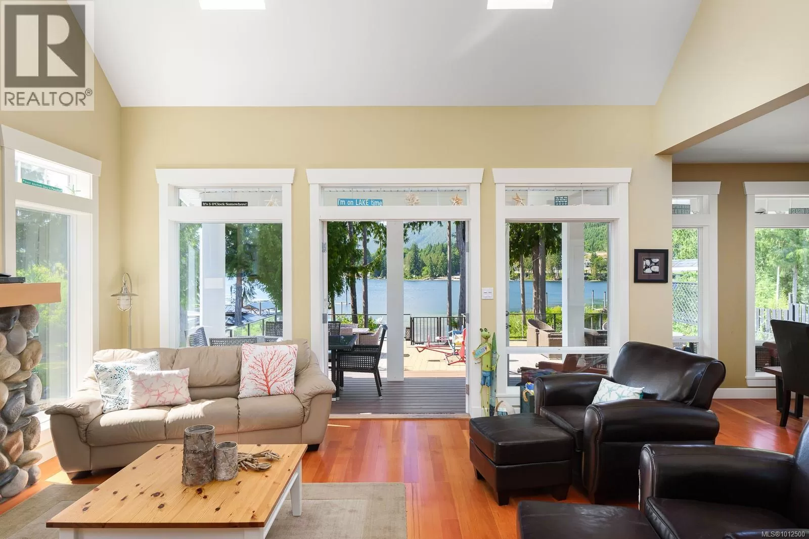 Situated in the highly desirable Point Ideal neighbourhood, this exceptional lakefront home offers over 80 feet of gently sloping walk-on waterfront. With 4 bedrooms and 3 bathrooms, this stunning property encompasses all the features you desire in a lakefront residence. The home offers an open floor plan, vaulted ceilings, a family-friendly layout, and large windows providing ample natural light, offering panoramic views of the lake and surrounding natural beauty. The property boasts a newly finished large dock as the perfect spot to relax by the water's edge, go fishing, or launch your boat for a day of adventures on the lake. The outdoor living space provides a serene setting for entertaining guests, featuring a projection screen for cozy outdoor movie nights under the starry sky. RV parking is available, plus room to store your boat securely in the elongated double garage. All within walking distance of Lake Cowichan's shops and amenities, this is a true piece of paradise! (id:27476)