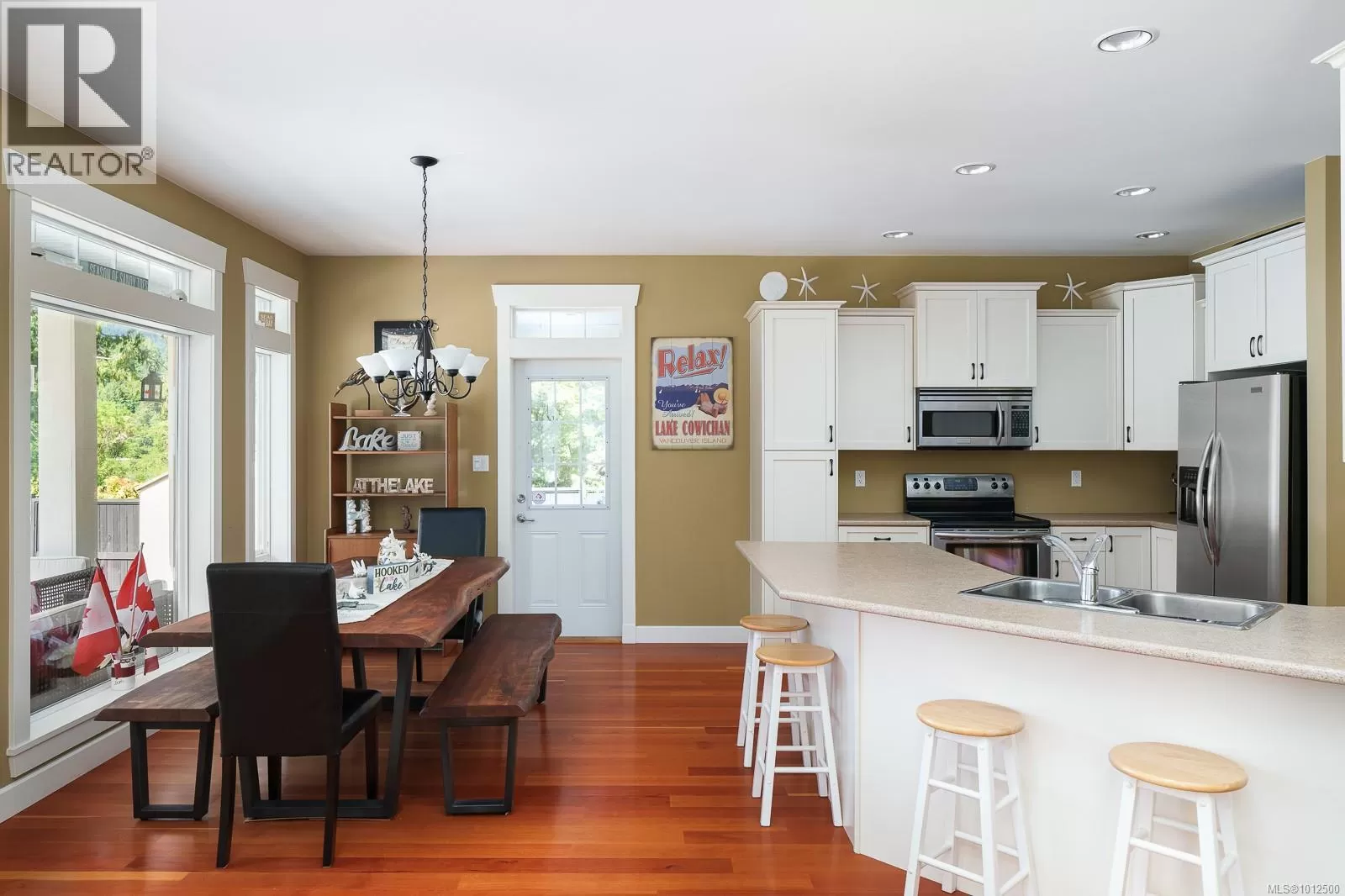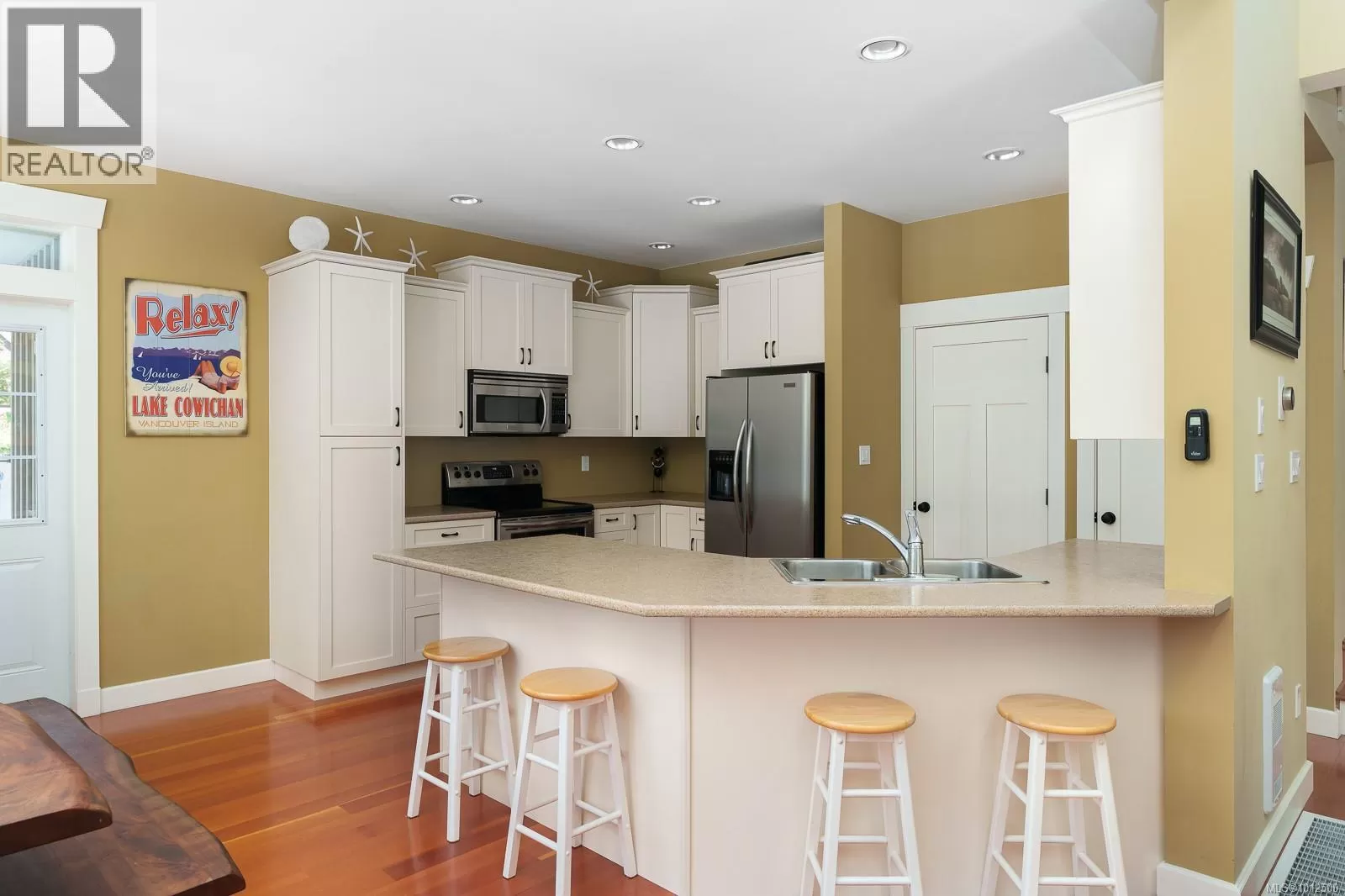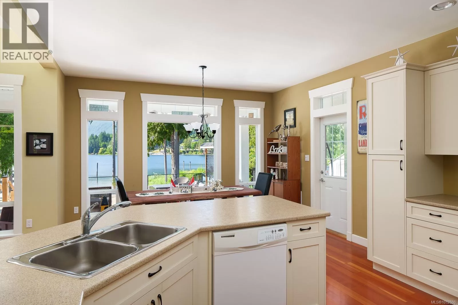 Situated in the highly desirable Point Ideal neighbourhood, this exceptional lakefront home offers over 80 feet of gently sloping walk-on waterfront. With 4 bedrooms and 3 bathrooms, this stunning property encompasses all the features you desire in a lakefront residence. The home offers an open floor plan, vaulted ceilings, a family-friendly layout, and large windows providing ample natural light, offering panoramic views of the lake and surrounding natural beauty. The property boasts a newly finished large dock as the perfect spot to relax by the water's edge, go fishing, or launch your boat for a day of adventures on the lake. The outdoor living space provides a serene setting for entertaining guests, featuring a projection screen for cozy outdoor movie nights under the starry sky. RV parking is available, plus room to store your boat securely in the elongated double garage. All within walking distance of Lake Cowichan's shops and amenities, this is a true piece of paradise! (id:27476)