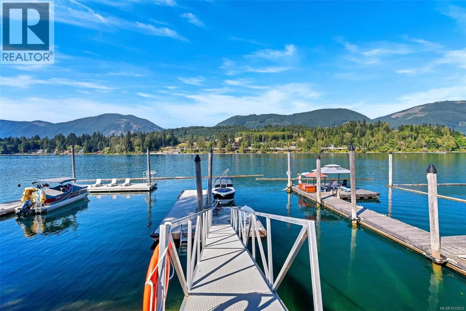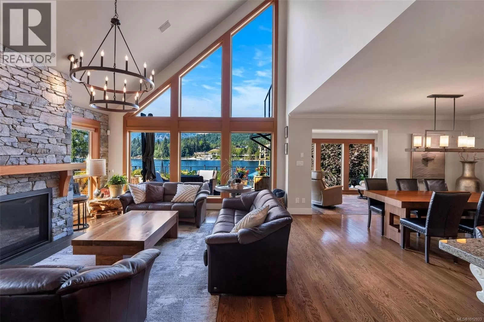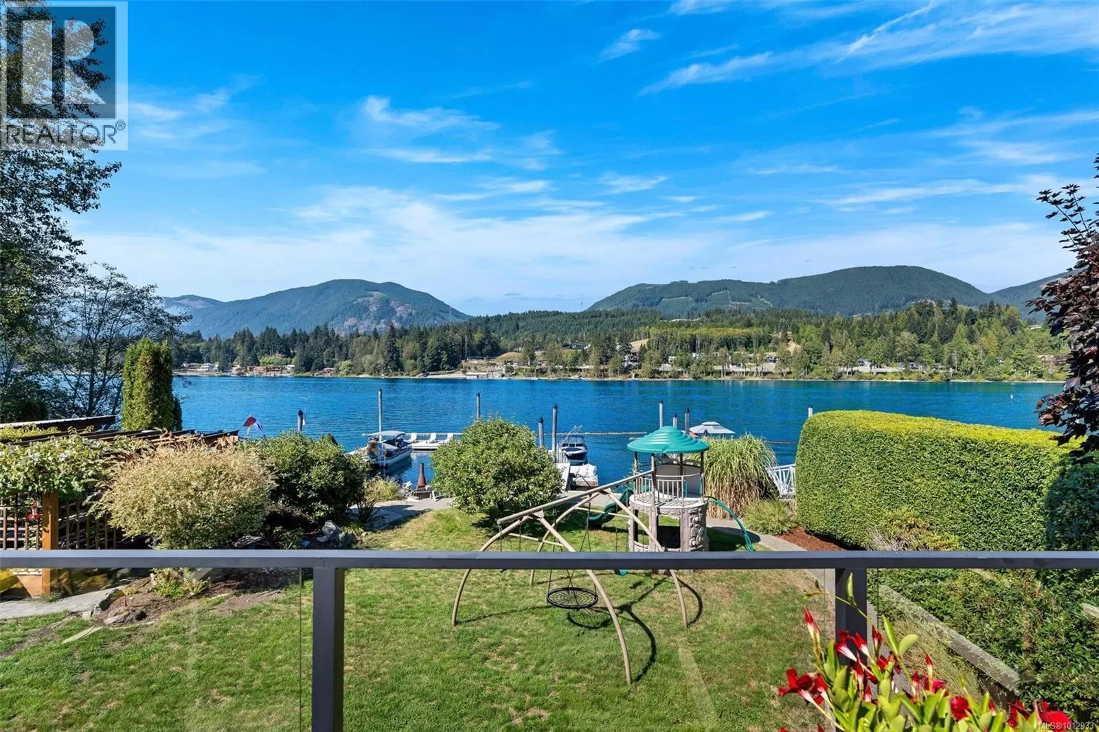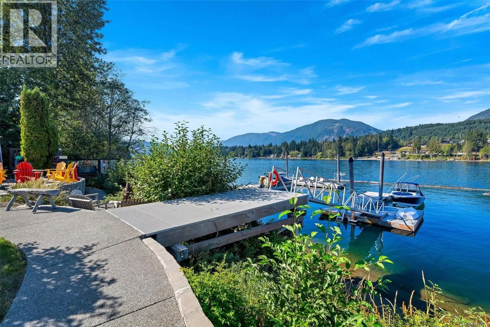 Welcome to a once-in-a-lifetime opportunity to own an exceptional waterfront property on Cowichan Lake. Situated in a gated community on Point Ideal Drive. This stunning residence was custom built in 2005 and offers 3,241 sq. ft. of thoughtfully designed living space on an 8,815 sq. ft. lot with a private dock. Every detail was carefully considered to highlight the beauty of the lake and surrounding mountains, creating a timeless West Coast retreat. The main level greets you with soaring 19â ceilings, a striking stone fireplace, and walls of windows that frame spectacular views. Oak hardwood floors and custom millwork add warmth and craftsmanship throughout. The kitchen is designed for both function and style, featuring maple shaker cabinetry, granite countertops, walk-through pantry, butcher block prep area, and a large island that opens to the dining room and sunroom. From here, step out to a 300+ sq. ft. deck with panoramic views and direct access to the backyard and dockâperfect for summer entertaining and lakeside living. The main floor also includes a bedroom, full bath, and laundry with quartz counters and fir cabinetry. Upstairs, the primary suite feels like a private getaway, with 15â ceilings, a wall of windows overlooking the lake, private deck, and spa-inspired ensuite with soaker tub and separate shower. An additional bedroom, 4-piece bath, and office space complete this level. The lower floor offers a wine cellar, games room, and theatre room, providing plenty of space for family and friends. The propertyâs private dock features aluminum railings and durable composite decking, making lake access both safe and stylish. This remarkable home has been lovingly cared for by the original owners and is ready to create new memories for the next family. Rarely does a property of this caliber become available on Cowichan Lakeâdonât miss your chance to make it yours. Contact your Realtor or the Victoria Real Estate Team today to arrange a private viewing. (id:27476)