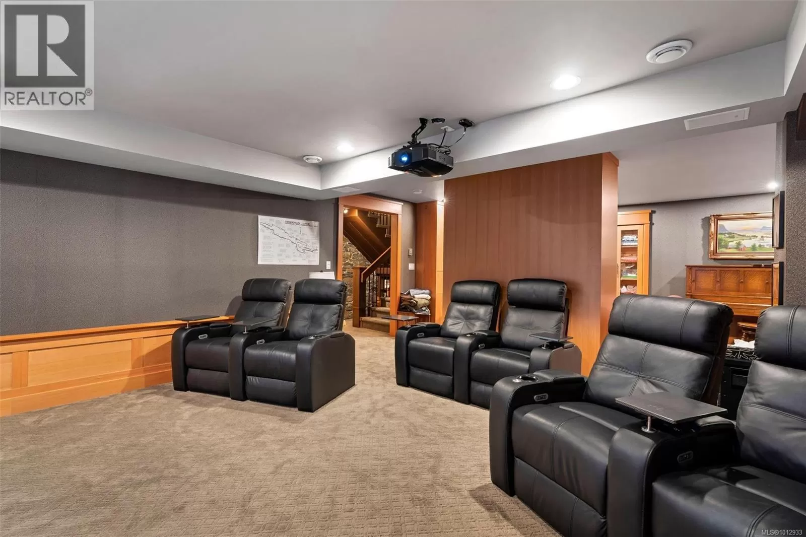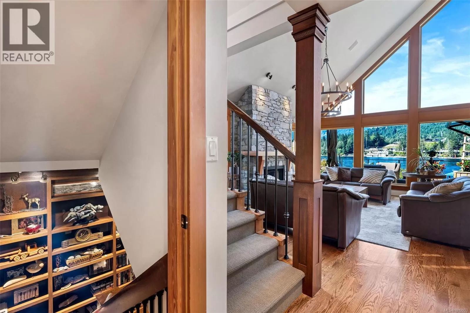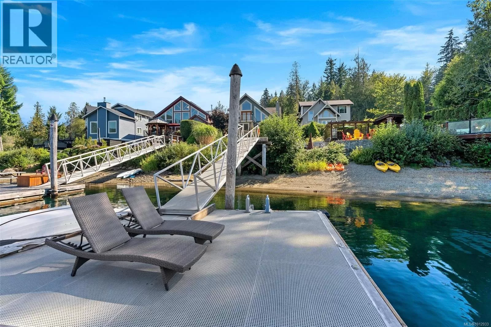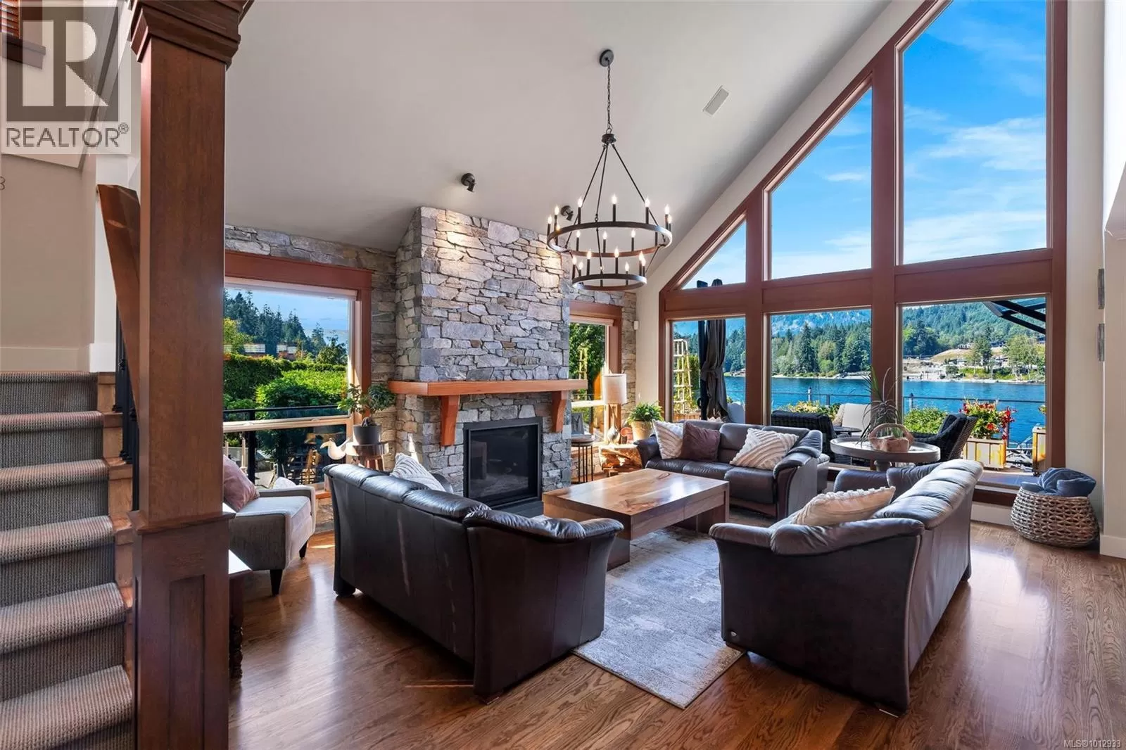 Welcome to a once-in-a-lifetime opportunity to own an exceptional waterfront property on Cowichan Lake. Situated in a gated community on Point Ideal Drive. This stunning residence was custom built in 2005 and offers 3,241 sq. ft. of thoughtfully designed living space on an 8,815 sq. ft. lot with a private dock. Every detail was carefully considered to highlight the beauty of the lake and surrounding mountains, creating a timeless West Coast retreat. The main level greets you with soaring 19â ceilings, a striking stone fireplace, and walls of windows that frame spectacular views. Oak hardwood floors and custom millwork add warmth and craftsmanship throughout. The kitchen is designed for both function and style, featuring maple shaker cabinetry, granite countertops, walk-through pantry, butcher block prep area, and a large island that opens to the dining room and sunroom. From here, step out to a 300+ sq. ft. deck with panoramic views and direct access to the backyard and dockâperfect for summer entertaining and lakeside living. The main floor also includes a bedroom, full bath, and laundry with quartz counters and fir cabinetry. Upstairs, the primary suite feels like a private getaway, with 15â ceilings, a wall of windows overlooking the lake, private deck, and spa-inspired ensuite with soaker tub and separate shower. An additional bedroom, 4-piece bath, and office space complete this level. The lower floor offers a wine cellar, games room, and theatre room, providing plenty of space for family and friends. The propertyâs private dock features aluminum railings and durable composite decking, making lake access both safe and stylish. This remarkable home has been lovingly cared for by the original owners and is ready to create new memories for the next family. Rarely does a property of this caliber become available on Cowichan Lakeâdonât miss your chance to make it yours. Contact your Realtor or the Victoria Real Estate Team today to arrange a private viewing. (id:27476)
