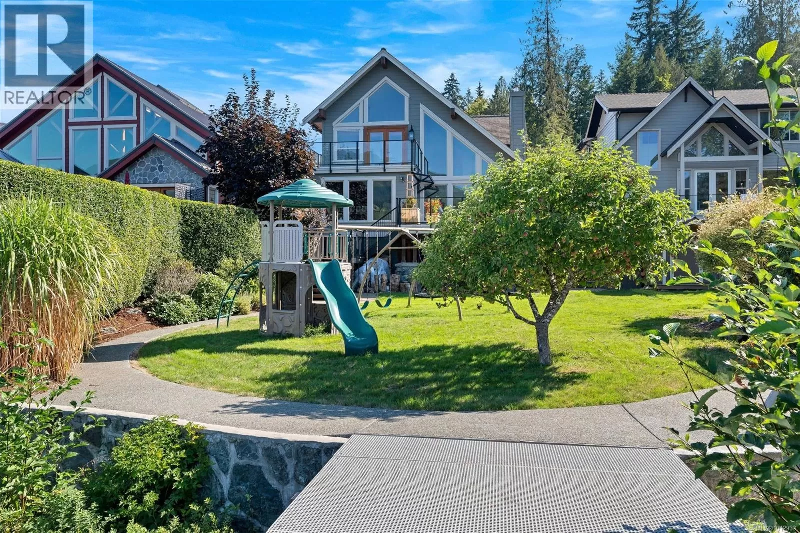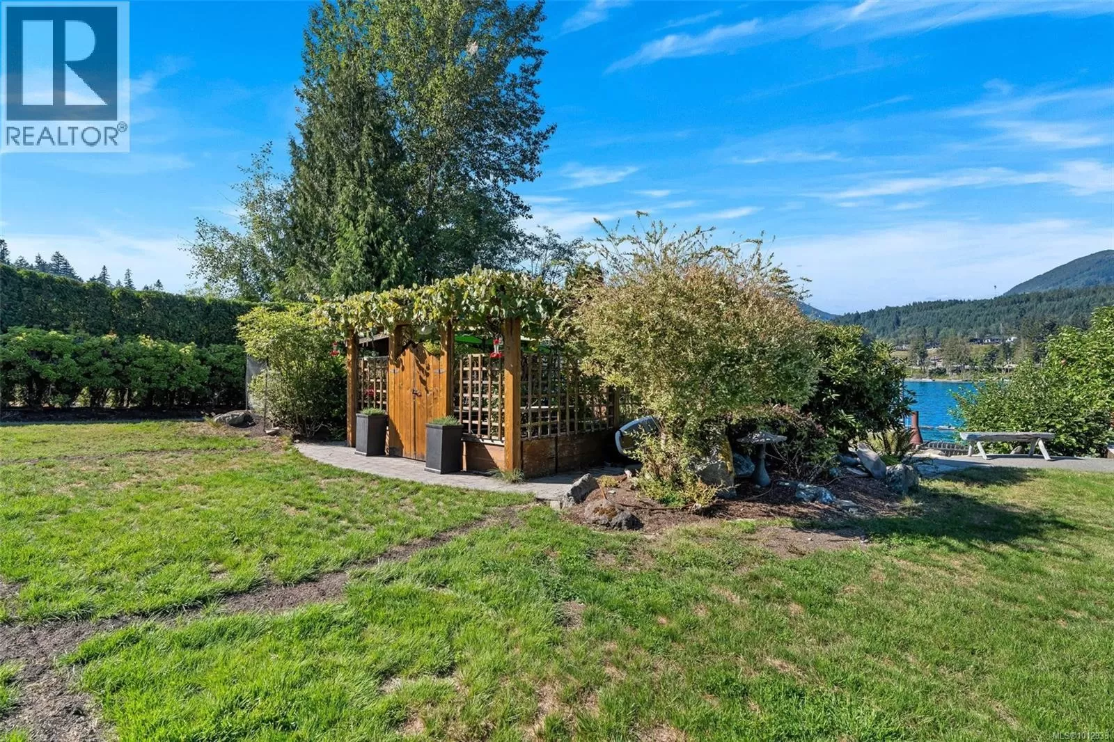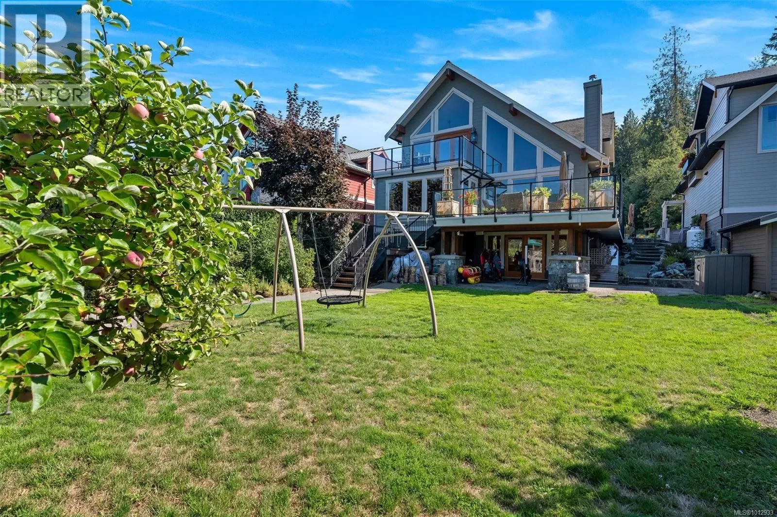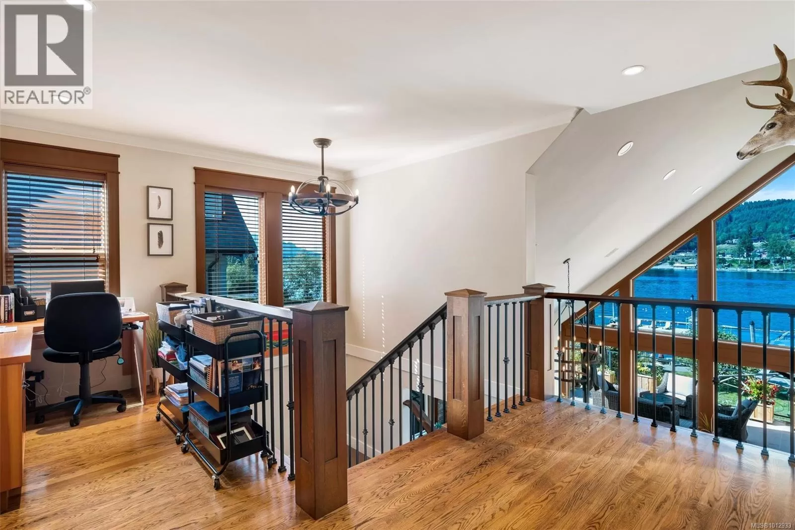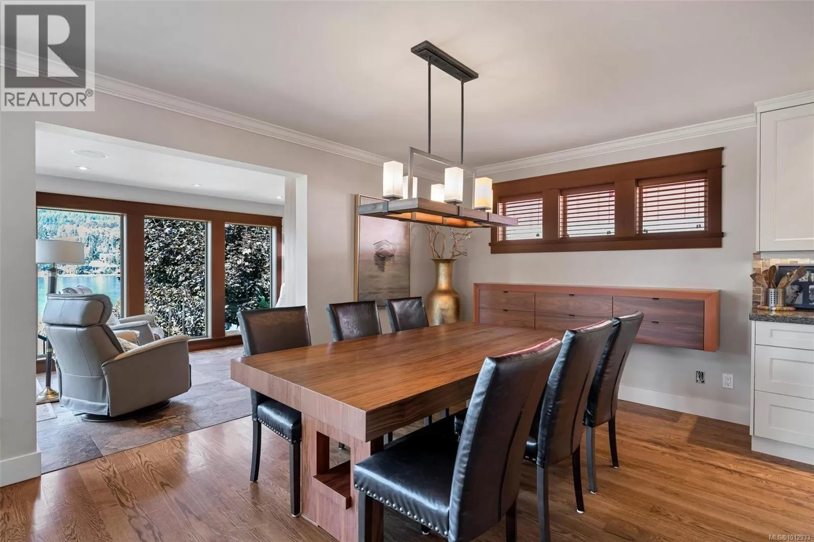 Welcome to a once-in-a-lifetime opportunity to own an exceptional waterfront property on Cowichan Lake. Situated in a gated community on Point Ideal Drive. This stunning residence was custom built in 2005 and offers 3,241 sq. ft. of thoughtfully designed living space on an 8,815 sq. ft. lot with a private dock. Every detail was carefully considered to highlight the beauty of the lake and surrounding mountains, creating a timeless West Coast retreat. The main level greets you with soaring 19â ceilings, a striking stone fireplace, and walls of windows that frame spectacular views. Oak hardwood floors and custom millwork add warmth and craftsmanship throughout. The kitchen is designed for both function and style, featuring maple shaker cabinetry, granite countertops, walk-through pantry, butcher block prep area, and a large island that opens to the dining room and sunroom. From here, step out to a 300+ sq. ft. deck with panoramic views and direct access to the backyard and dockâperfect for summer entertaining and lakeside living. The main floor also includes a bedroom, full bath, and laundry with quartz counters and fir cabinetry. Upstairs, the primary suite feels like a private getaway, with 15â ceilings, a wall of windows overlooking the lake, private deck, and spa-inspired ensuite with soaker tub and separate shower. An additional bedroom, 4-piece bath, and office space complete this level. The lower floor offers a wine cellar, games room, and theatre room, providing plenty of space for family and friends. The propertyâs private dock features aluminum railings and durable composite decking, making lake access both safe and stylish. This remarkable home has been lovingly cared for by the original owners and is ready to create new memories for the next family. Rarely does a property of this caliber become available on Cowichan Lakeâdonât miss your chance to make it yours. Contact your Realtor or the Victoria Real Estate Team today to arrange a private viewing. (id:27476)