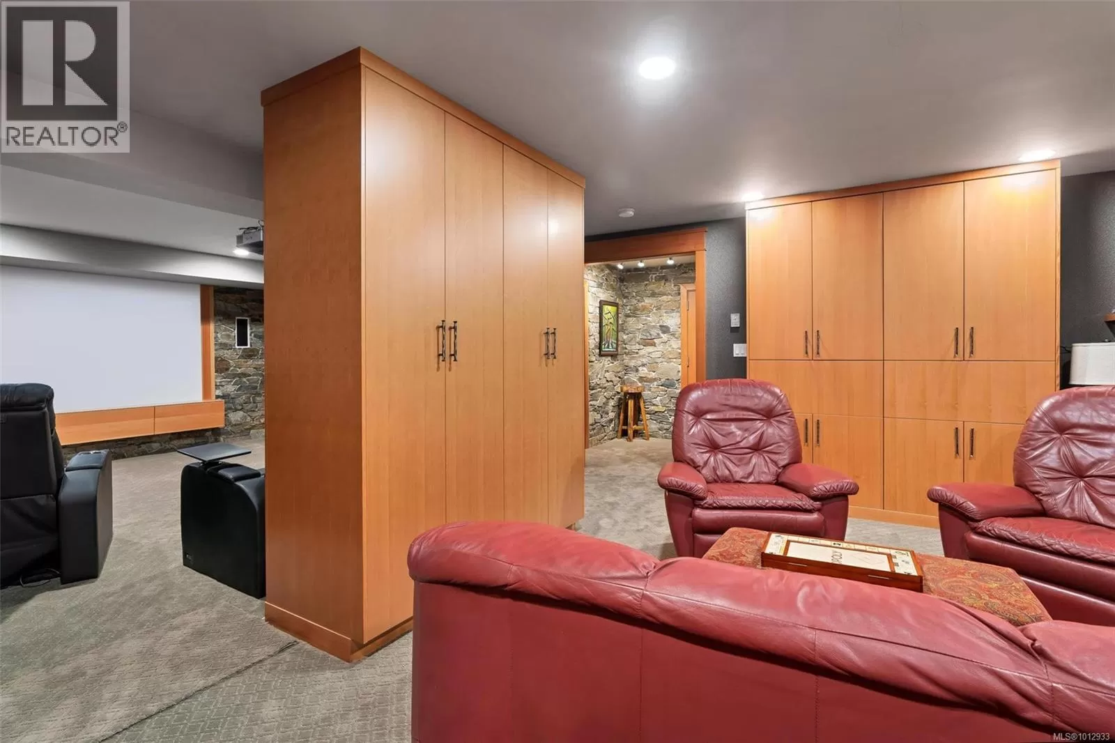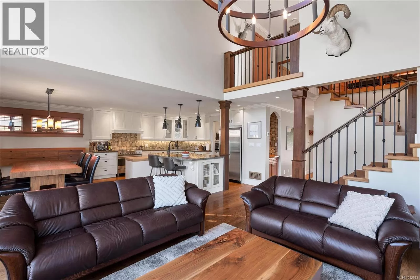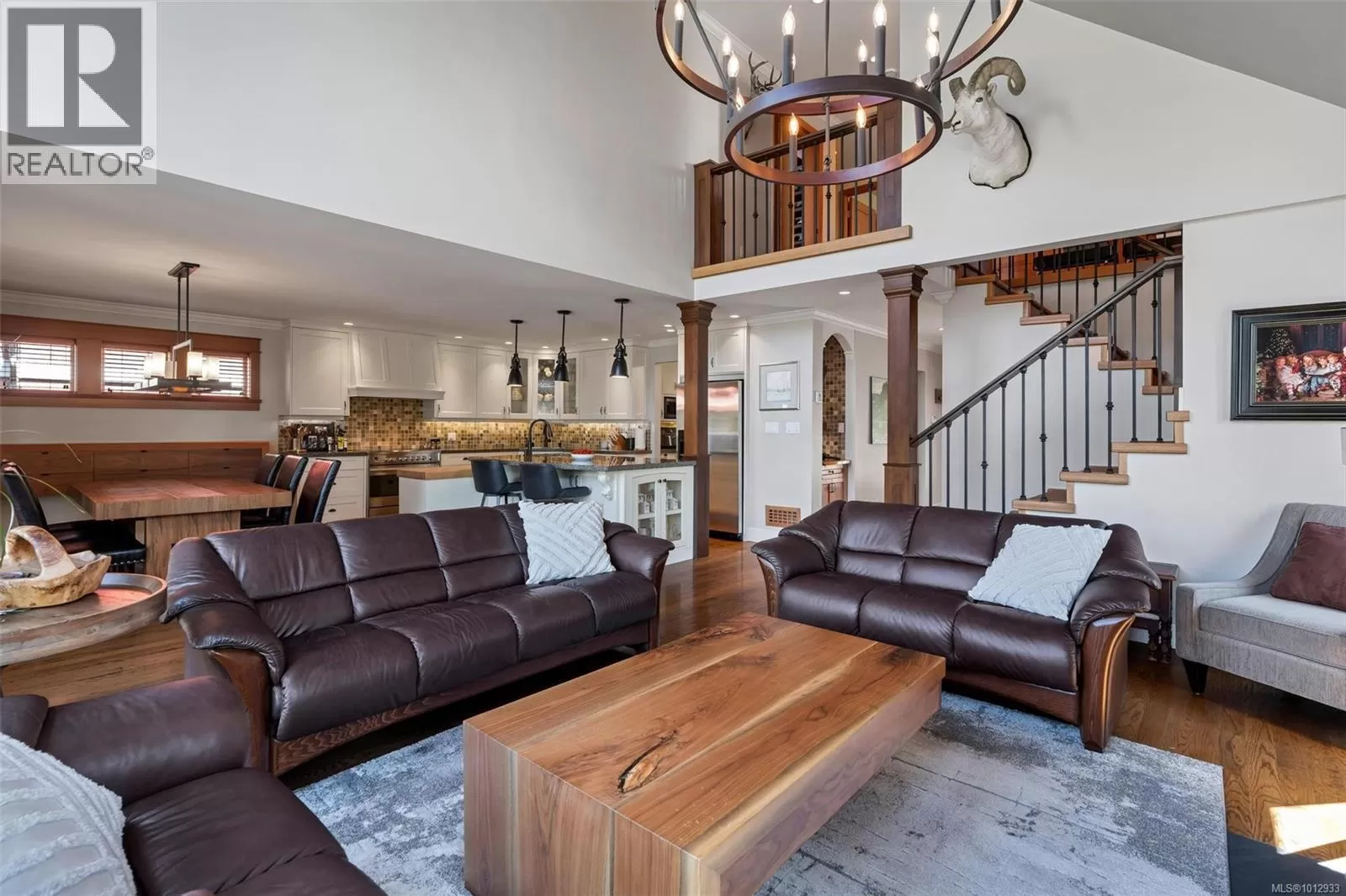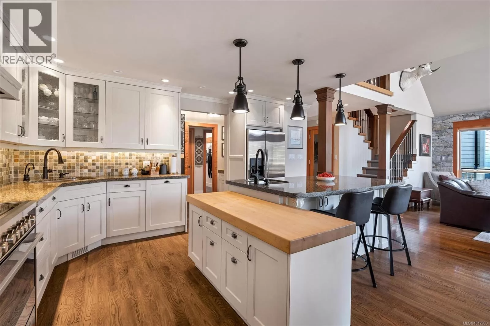 Welcome to a once-in-a-lifetime opportunity to own an exceptional waterfront property on Cowichan Lake. Situated in a gated community on Point Ideal Drive. This stunning residence was custom built in 2005 and offers 3,241 sq. ft. of thoughtfully designed living space on an 8,815 sq. ft. lot with a private dock. Every detail was carefully considered to highlight the beauty of the lake and surrounding mountains, creating a timeless West Coast retreat. The main level greets you with soaring 19â ceilings, a striking stone fireplace, and walls of windows that frame spectacular views. Oak hardwood floors and custom millwork add warmth and craftsmanship throughout. The kitchen is designed for both function and style, featuring maple shaker cabinetry, granite countertops, walk-through pantry, butcher block prep area, and a large island that opens to the dining room and sunroom. From here, step out to a 300+ sq. ft. deck with panoramic views and direct access to the backyard and dockâperfect for summer entertaining and lakeside living. The main floor also includes a bedroom, full bath, and laundry with quartz counters and fir cabinetry. Upstairs, the primary suite feels like a private getaway, with 15â ceilings, a wall of windows overlooking the lake, private deck, and spa-inspired ensuite with soaker tub and separate shower. An additional bedroom, 4-piece bath, and office space complete this level. The lower floor offers a wine cellar, games room, and theatre room, providing plenty of space for family and friends. The propertyâs private dock features aluminum railings and durable composite decking, making lake access both safe and stylish. This remarkable home has been lovingly cared for by the original owners and is ready to create new memories for the next family. Rarely does a property of this caliber become available on Cowichan Lakeâdonât miss your chance to make it yours. Contact your Realtor or the Victoria Real Estate Team today to arrange a private viewing. (id:27476)