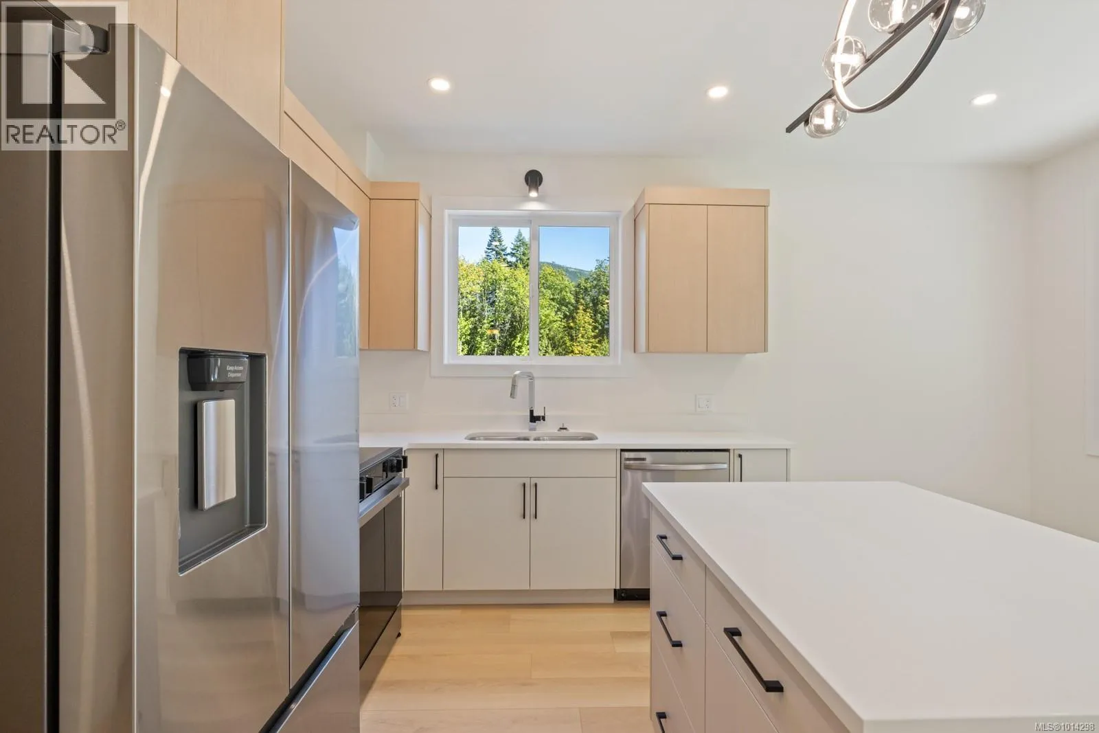 Move in today, to this exceptional 3 bed, 3 bath + den Lake Cowichan home. Every little detail has been thought of and looked after. From the fully landscaped & fenced yard to the full appliance package, thereâs even a car charger outlet in the single bay garage. Lovely open plan kitchen, living & dinning area flowing out to a covered patio overlooking the fully fenced back yard. Heronwood Custom Cabinetry created a beautiful kitchen featuring soft close cabinets with quartz counters, complemented by stainless steel appliances. Three bedrooms up including the primary with walk-in closet and 5 pcs ensuite. There are two additional bedrooms on this level, a second bathroom as well as the conveniently located laundry. The homes heating and cooling are provided by a high efficiency Fujitsu heat pump. This is a very well designed and built home and is only minutes away from the village amenities or summer fun at the lake. (id:27476)