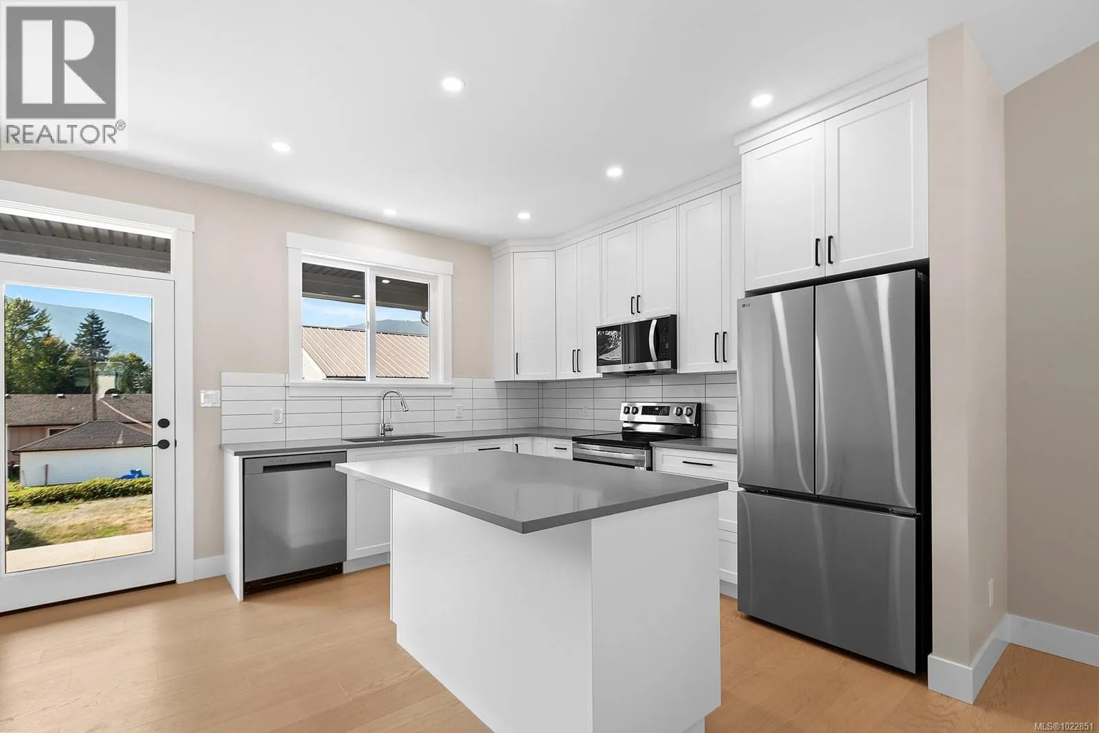 Welcome to this brand-new 2 bedroom, 2 bathroom home tucked away in a quiet area of Lake Cowichan. Thoughtfully designed with comfort and style in mind, this home features high-end finishings throughout including hardwood floors, quartz countertops, and stainless steel appliances. Large windows fill the space with natural light, highlighting the clean lines and modern design. Step outside to the back deck, perfect for relaxing or entertaining. Efficiently heated and cooled by a heat pump, this home combines modern convenience with timeless quality. (id:27476)