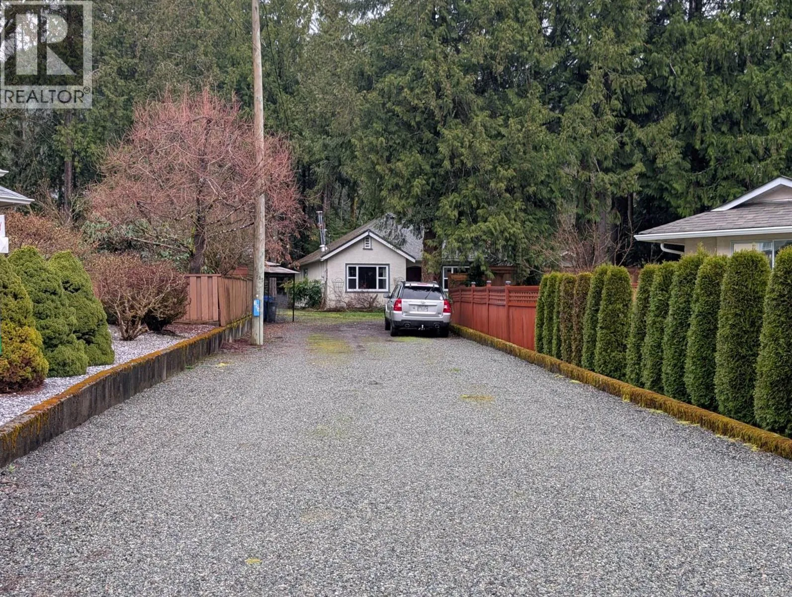 Welcome to your forest oasis in the heart of Lake Cowichan. This charming character home was moved in 1993 from Duncan into this quiet cul-de-sac of quality homes, and put onto a new concrete foundation. The home is tucked off a wide/level driveway into your own private .31AC forest garden backing onto a seasonal creek. The 1245sf 3 bedroom rancher is perfect for all ages with Fir floors throughout, handy kitchen and plenty of storage. Features include heat pump, vinyl thermal windows, and newer appliances. Year round outdoor living is complete with veggie gardens, carport/covered patio, workshop, large garden shed, BBQ, picnic and play areas. This Lake home is perfect for YOU! (id:27476)