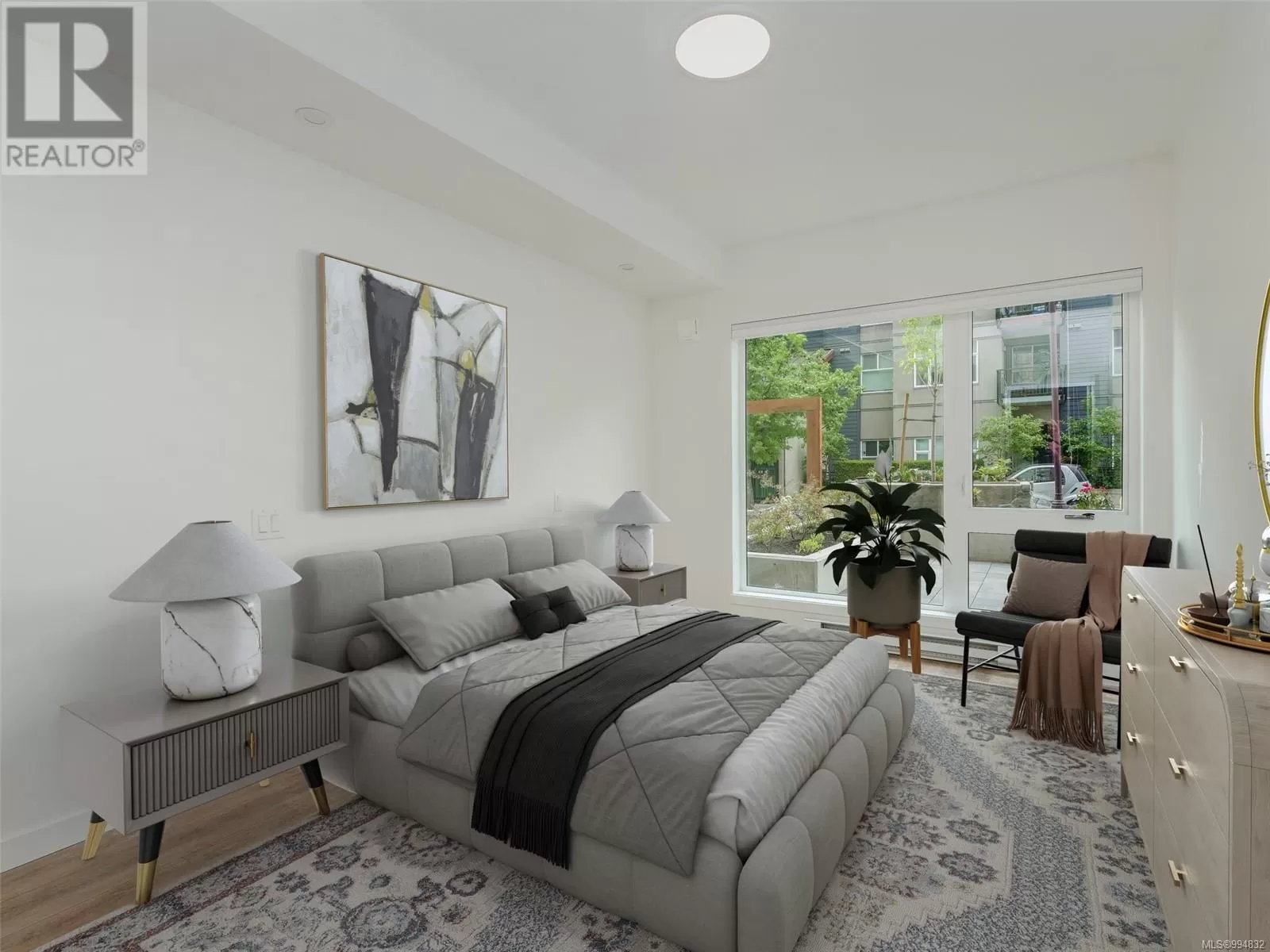 MOVE IN READY - E FLOOR PLAN - This is an amazing 2 bedroom 2 bathroom unit with opposing bedrooms on either side which makes for a great layout! Enter inside to find a bright open feel with a great sized kitchen offering a peninsula style quartz island! Enjoy cooking with a Natural Gas stove while enjoying your modern finishing's throughout including; stainless steel appliances, quartz countertops, vinyl plank flooring, gas range & gas BBQ hook up, highly energy efficient heating & cooling, roughed in EV charger, under ground secure parking, bike storage, gym, and a work station! Enjoy walking to restaurants, pubs, shopping, recreation, schools, E & N Trail, Royal Colwood Golf Course, transit, hiking trails and much more! 5 minute drive to HWY 1 plus a walk score of 73 & bike score of 95!  2 pets no weight restrictions and rentals allowed - Price+GST. (id:27476)
