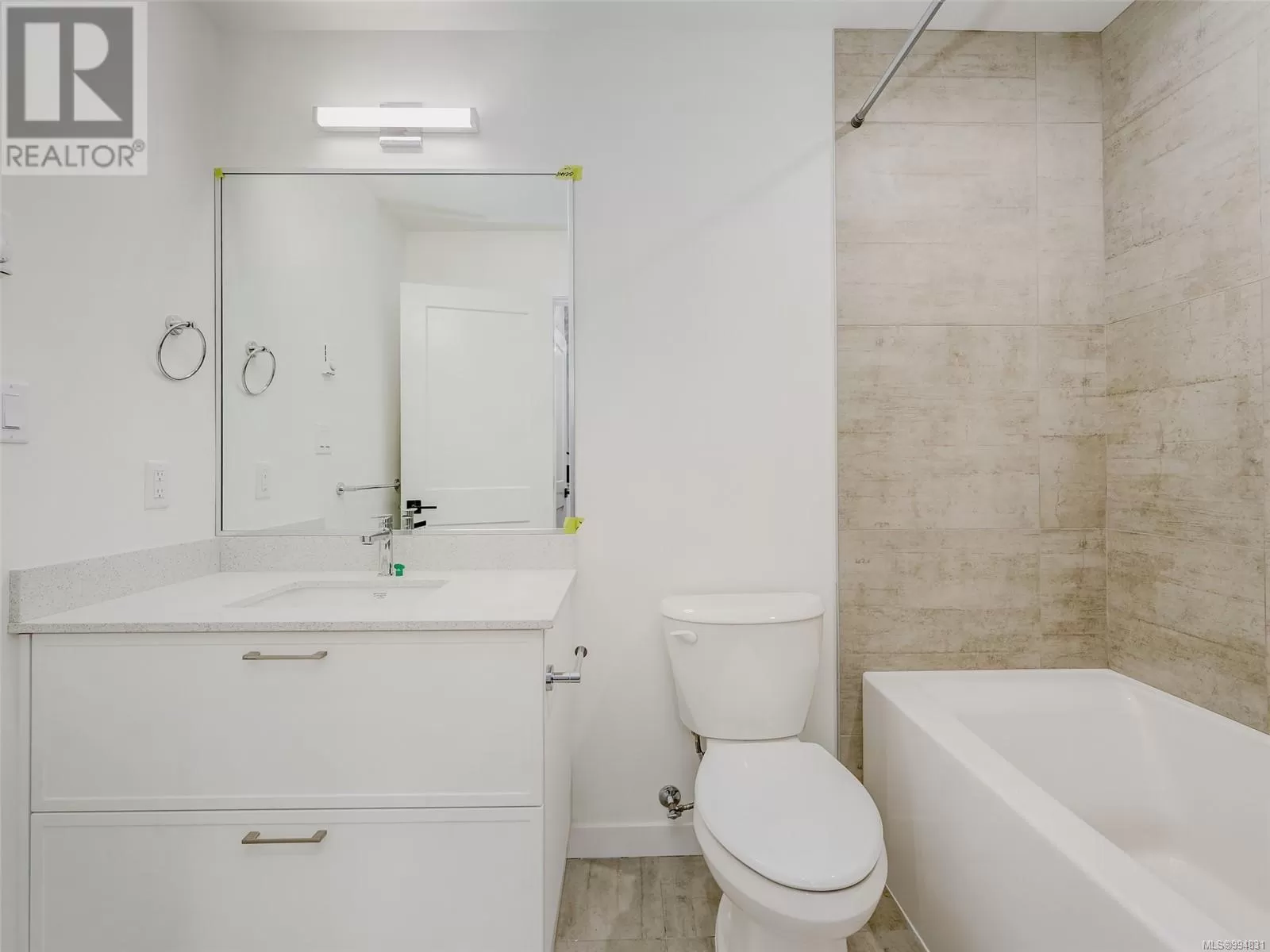 MOVE IN READY - E FLOOR PLAN - This is an amazing 2 bedroom 2 bathroom unit with opposing bedrooms on either side which makes for a great layout! Enter inside to find a bright open feel with a great sized kitchen offering a peninsula style quartz island! Enjoy cooking with a Natural Gas stove while enjoying your modern finishing's throughout including; stainless steel appliances, quartz countertops, vinyl plank flooring, gas range & gas BBQ hook up, highly energy efficient heating & cooling, roughed in EV charger, under ground secure parking, bike storage, gym, and a work station! Enjoy walking to restaurants, pubs, shopping, recreation, schools, E & N Trail, Royal Colwood Golf Course, transit, hiking trails and much more! 5 minute drive to HWY 1 plus a walk score of 73 & bike score of 95! Â 2 pets no weight restrictions and rentals allowed - Price+GST. (id:27476)