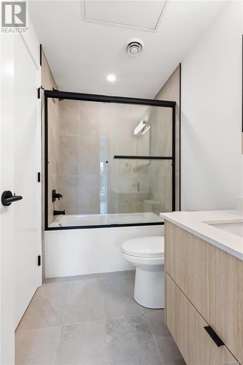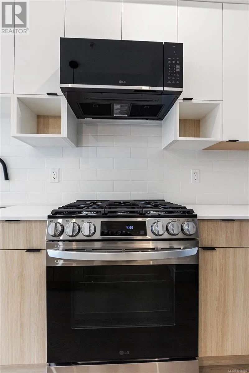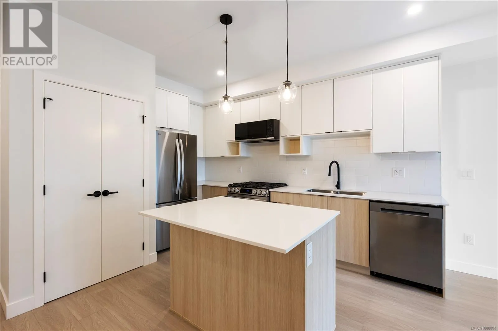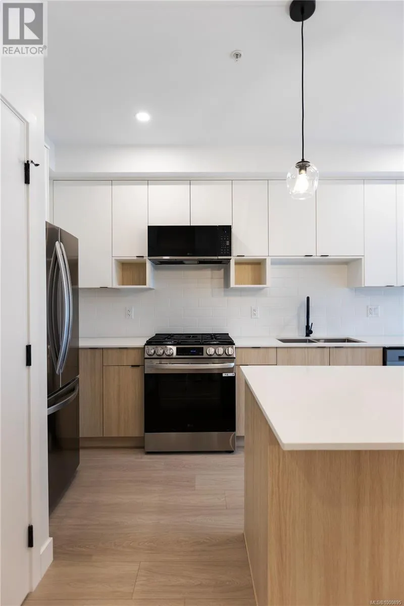 This stylish and efficient 1 bed / 1 bath 561 sq ft condo smartly laid-out interior space, plus a 42 sq ft patioâideal for relaxing or entertaining on warm days. Inside, natural light beams through complementing the contemporary finishes and bold matte black accents. The kitchen is equipped with quartz counters, modern two-tone cabinetry, and premium LG stainless steel appliances.Bonus heat pump for extra comfort. Peace of mind having a secured parking spot.Residents can enjoy access to a beautifully landscaped common area with green space, gas fire pits, BBQs, seating areas, and a playground. Perfectly situated in central Langford, youâre just moments away from schools, parks, trails, lakes, and all the shopping and dining you need. (id:27476)