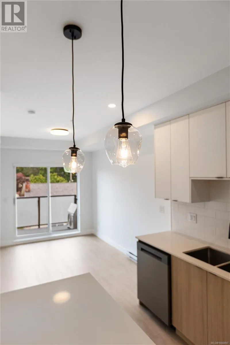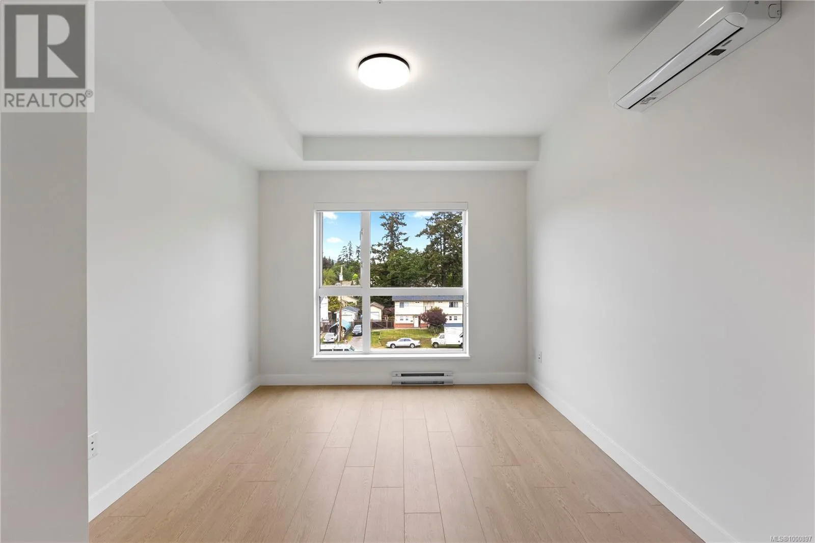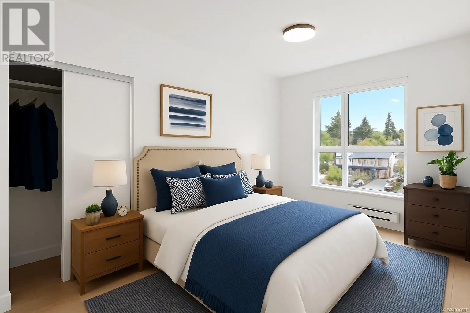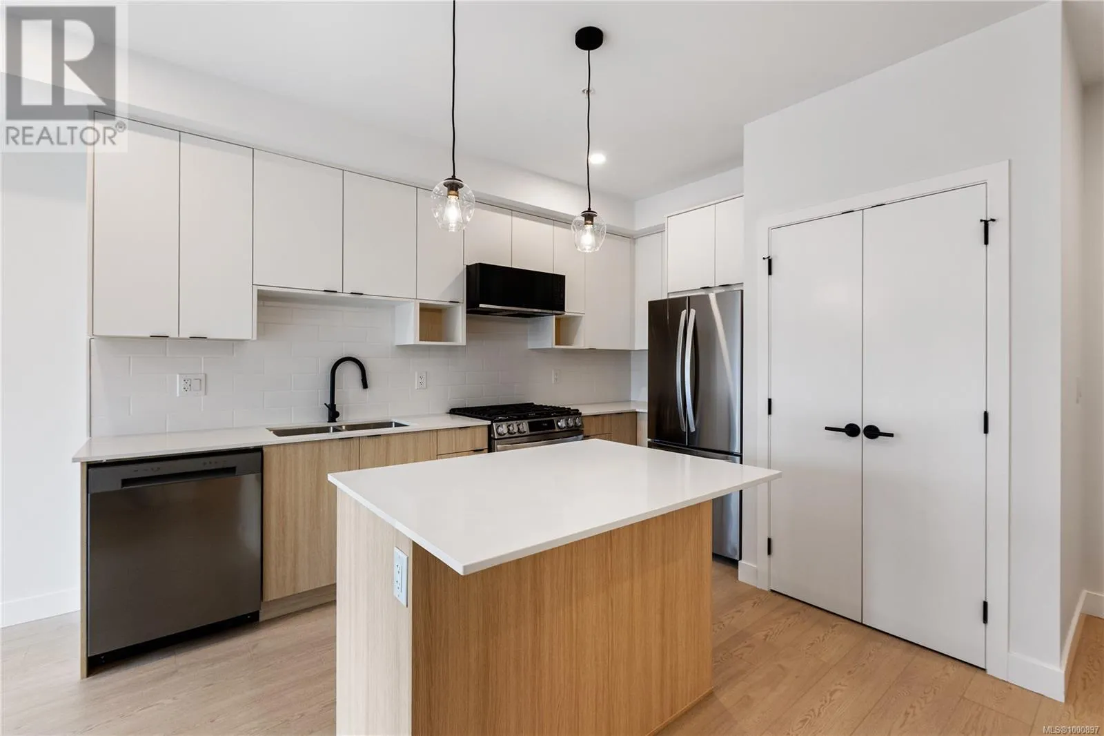 This thoughtfully designed 1 bed, 1 bath condo offers 564 sq ft of efficient living space, complemented by a 42 sq ft private patio ideal for outdoor enjoyment. Contemporary interiors feature an abundance of natural light, matte black accents, stylish fixtures, and a heat pump for year-round comfort. The modern kitchen is equipped with quartz countertops, two-tone cabinetry, and premium LG stainless steel appliances. A secured underground parking stall is included. Residents enjoy access to beautifully landscaped common areas complete with green space, gas fire pits, BBQs, seating areas, and a playground. Ideally located in central Langford, close to schools, parks, trails, lakes, and major amenities. (id:27476)