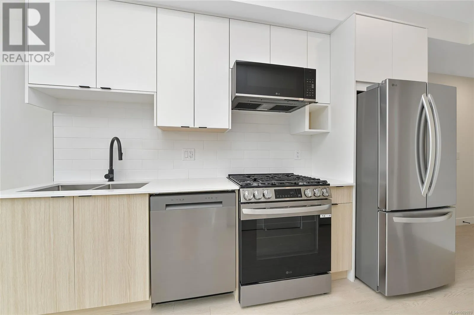 Welcome to your new home at Millstream Residences, located close to all amenities and right off the hwy to get into town quickly avoiding Langford core traffic. This brand new affordable unit is perfect for someone looking to enter the market, or for an investor looking for a rental unit. This studio unit features a balcony larger than those of the 1 bedrooms, has in suite laundry. Built by Landvision, a developer known for quality, this unit features quartz counter tops, trendy 2 toned cabinets and attention to detail throughout. The building features a large common space balcony on the second level. Don't delay, your new home awaits you! (id:27476)