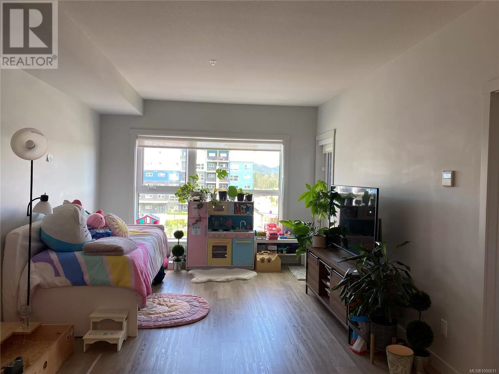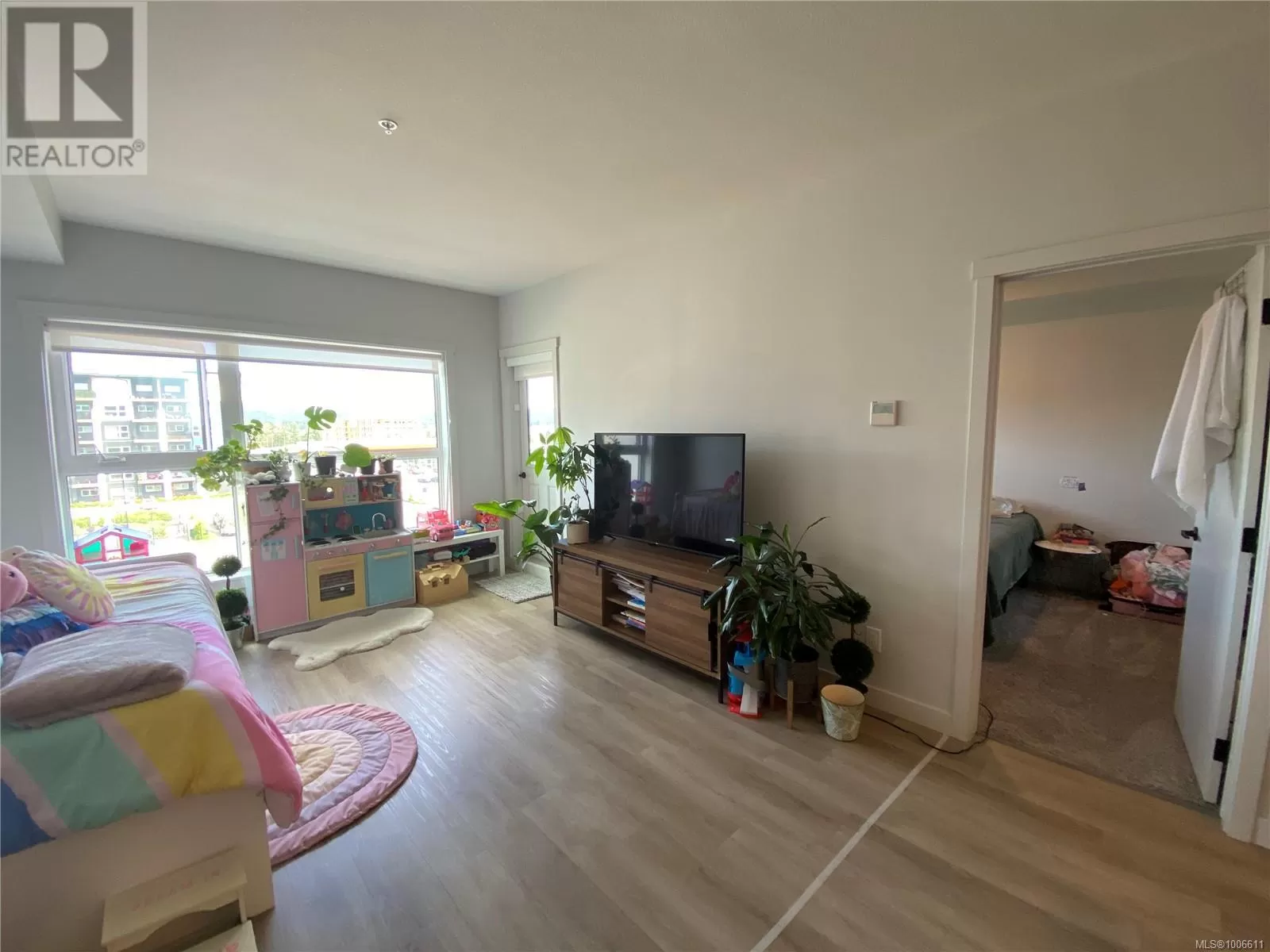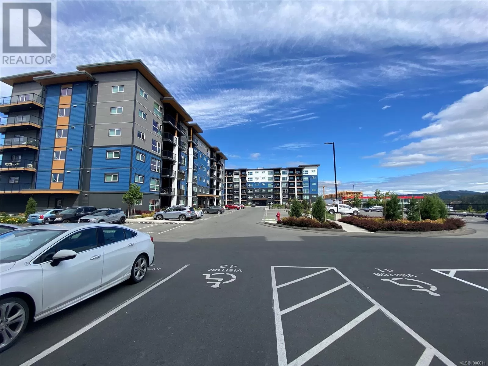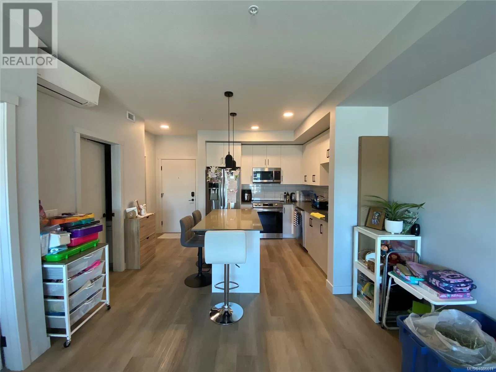 Welcome to the SKY GATE! High on the 4th floor with open air views exemplifying modern living. All conveniences in this 3-year-old home include heat pump heating and cooling, luxury vinyl flooring, a perfectly appointed kitchen with soft-close cabinetry, premium stainless steel appliances and quartz countertops, an in-suite laundry room with storage, and a balcony. The bathroom is a haven for pampering. There is also a separate secured storage locker with this suite. SkyGate amenities include a fitness centre, EV charging stations, a roof-top patio, a dog run, community gardens, a social lounge and bike storage. Nearby are restaurants, shopping and grocery stores as well parks and trails. Just 20 minutes to downtown Victoria. (id:27476)