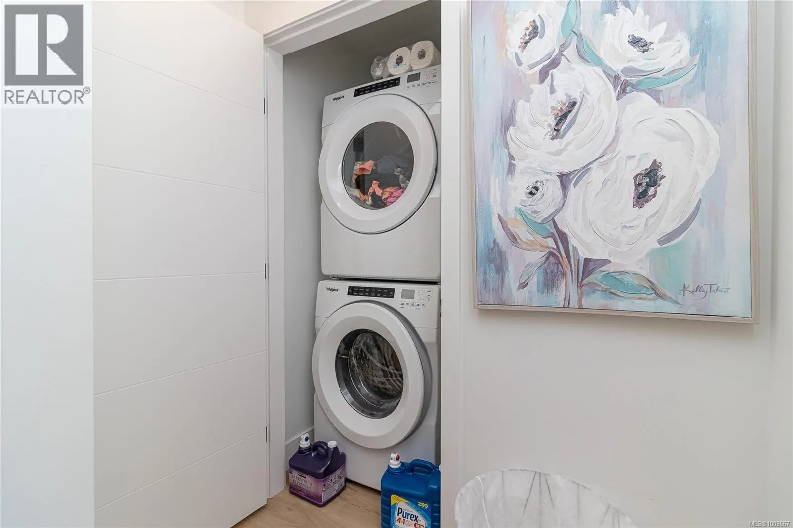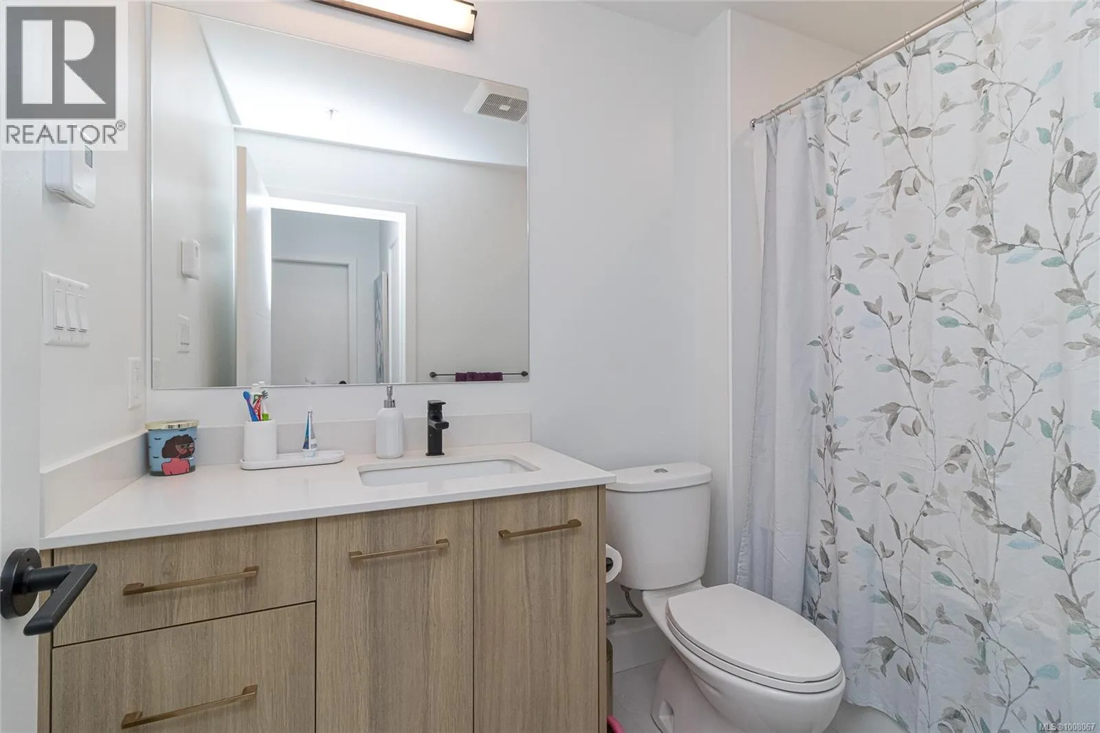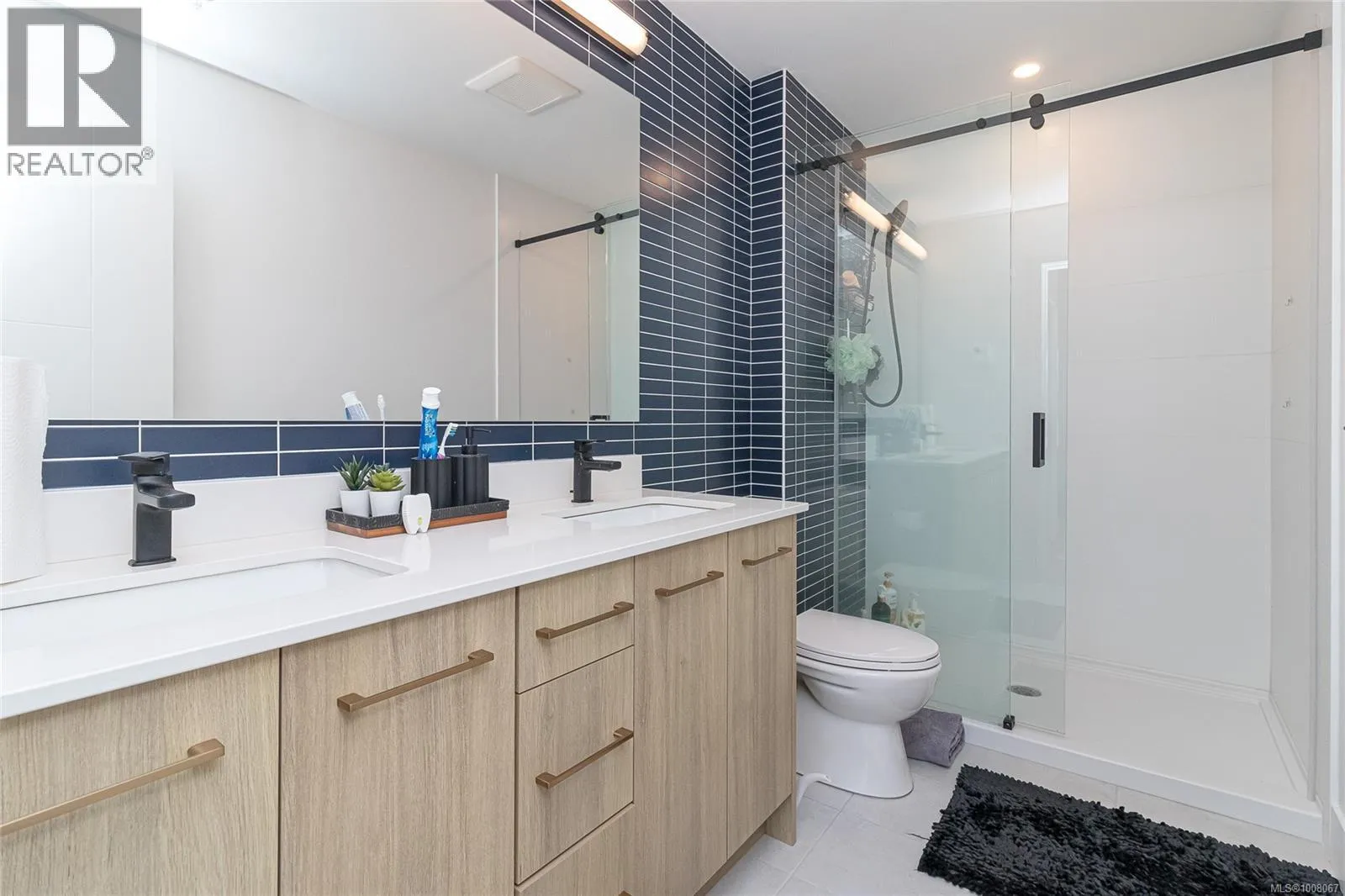 Welcome to Belmont, Langfordâs pet-friendly community. This top floor 2-bed, 2-bath home delivers 900 + sq ft of bright, private living space. The primary suite features an ensuite and walk-in closet, while the kitchen boasts quartz counters, Whirlpool appliances, and an entertainer-sized island. Relax on the covered balcony with forest views and a natural-gas BBQ hook-up. Residents enjoy a fireside lounge, fitness centre, outdoor BBQ area, dog wash and run, bike room, storage locker, and in-suite laundry. With Belmont Market, Westshore Town Centre, and the Galloping Goose Trail just steps away, you can leave the car at home. Now vacant (id:27476)