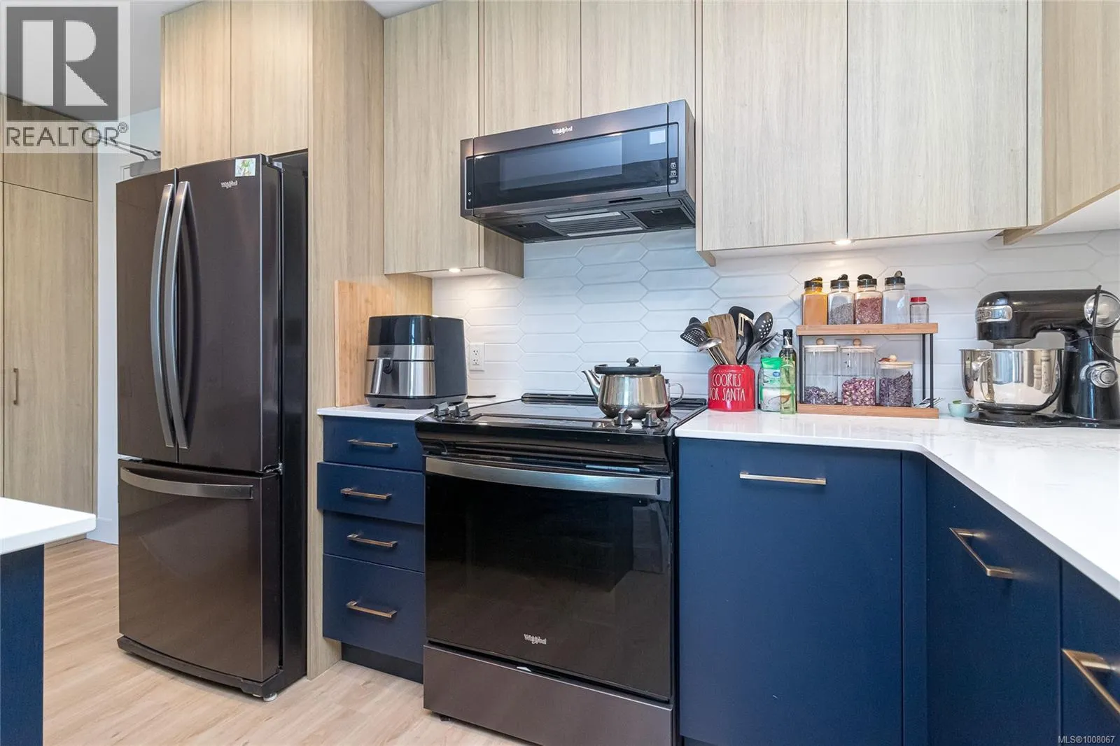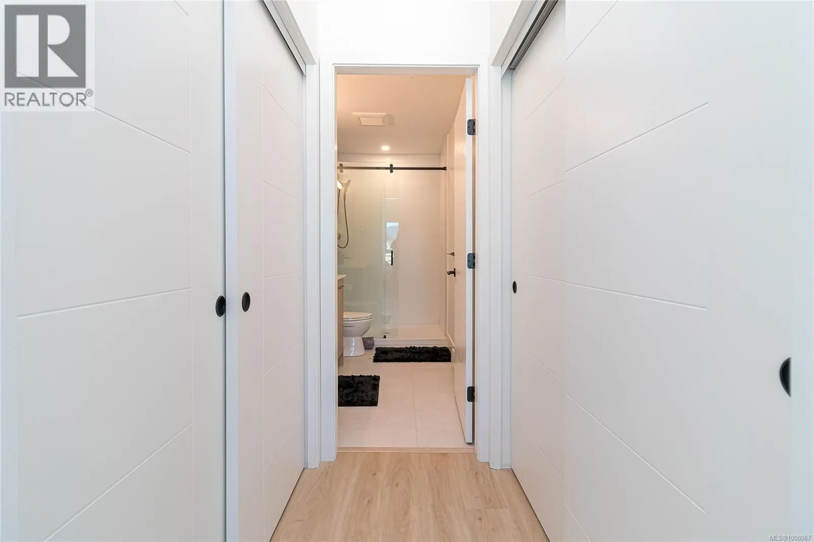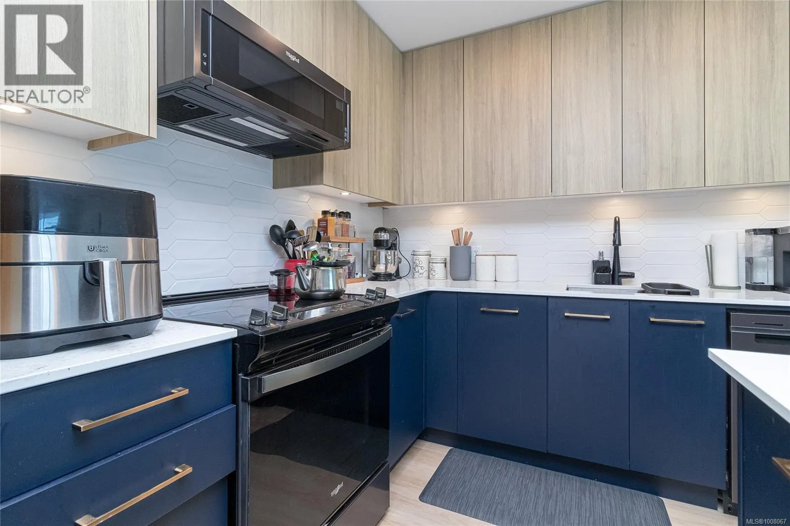 Welcome to Belmont, Langfordâs pet-friendly community. This top floor 2-bed, 2-bath home delivers 900 + sq ft of bright, private living space. The primary suite features an ensuite and walk-in closet, while the kitchen boasts quartz counters, Whirlpool appliances, and an entertainer-sized island. Relax on the covered balcony with forest views and a natural-gas BBQ hook-up. Residents enjoy a fireside lounge, fitness centre, outdoor BBQ area, dog wash and run, bike room, storage locker, and in-suite laundry. With Belmont Market, Westshore Town Centre, and the Galloping Goose Trail just steps away, you can leave the car at home. Now vacant (id:27476)