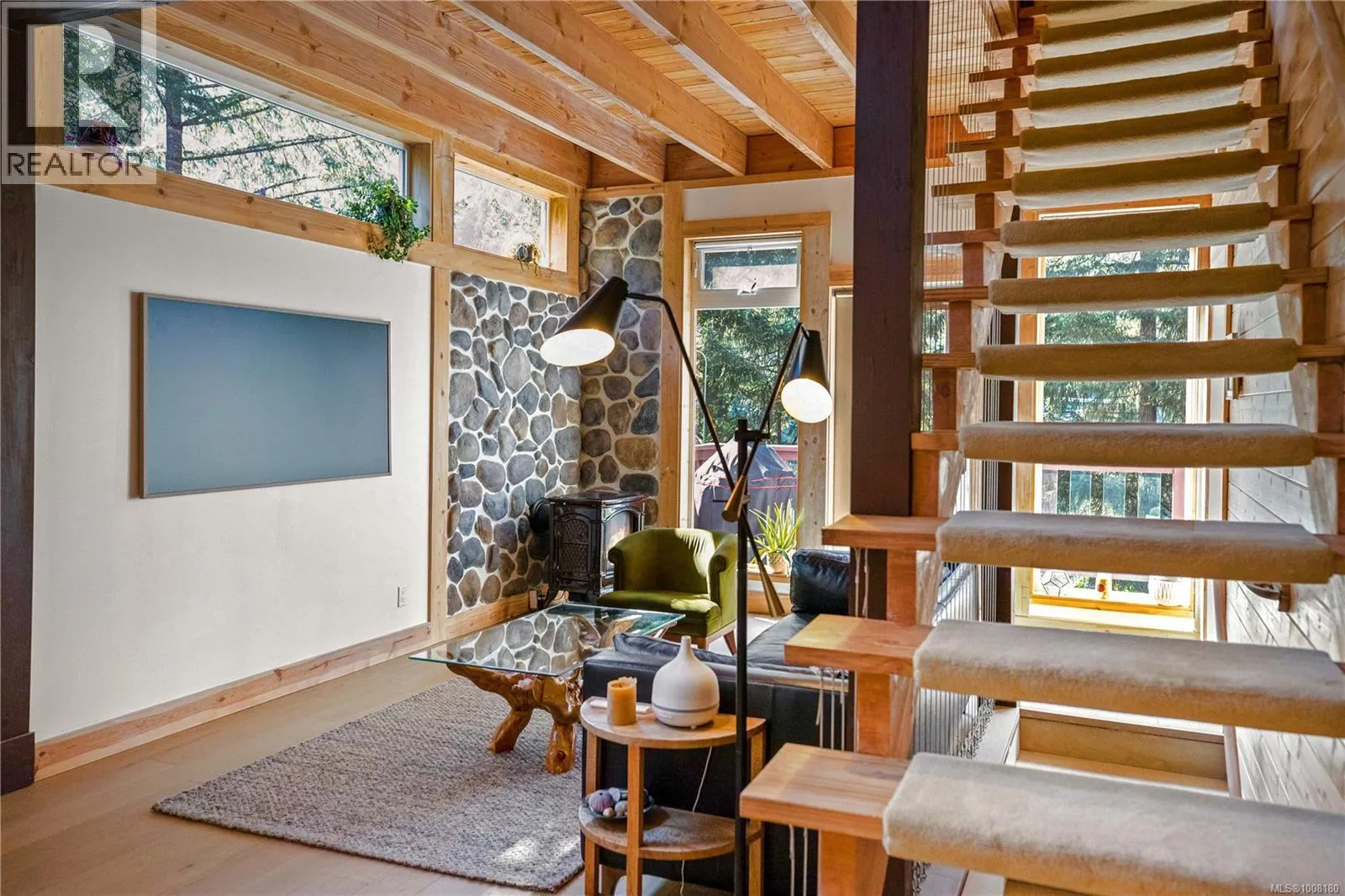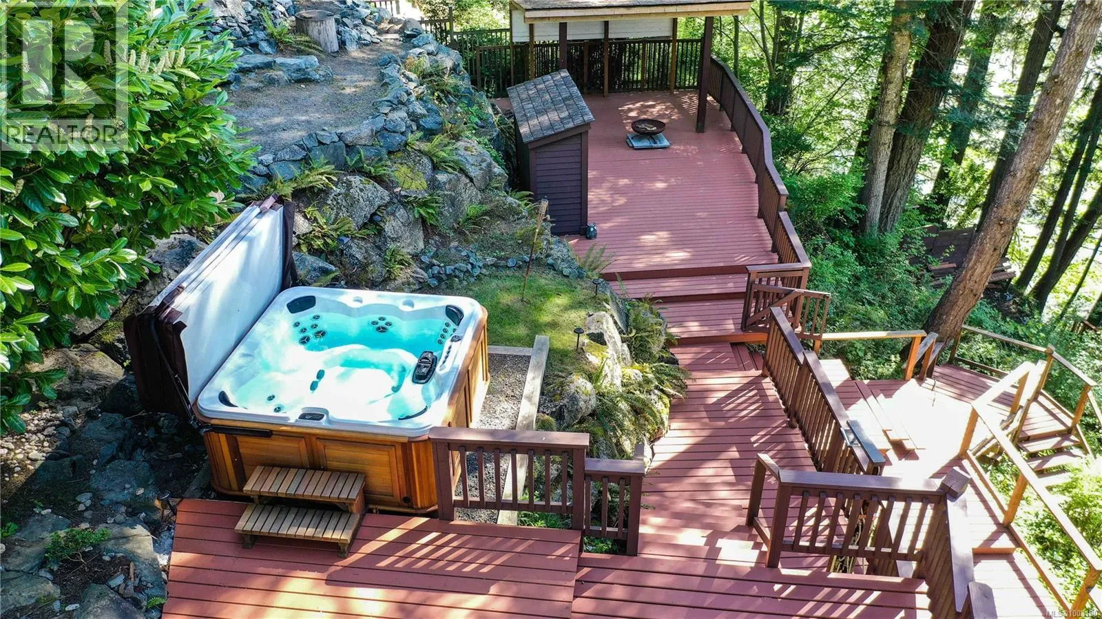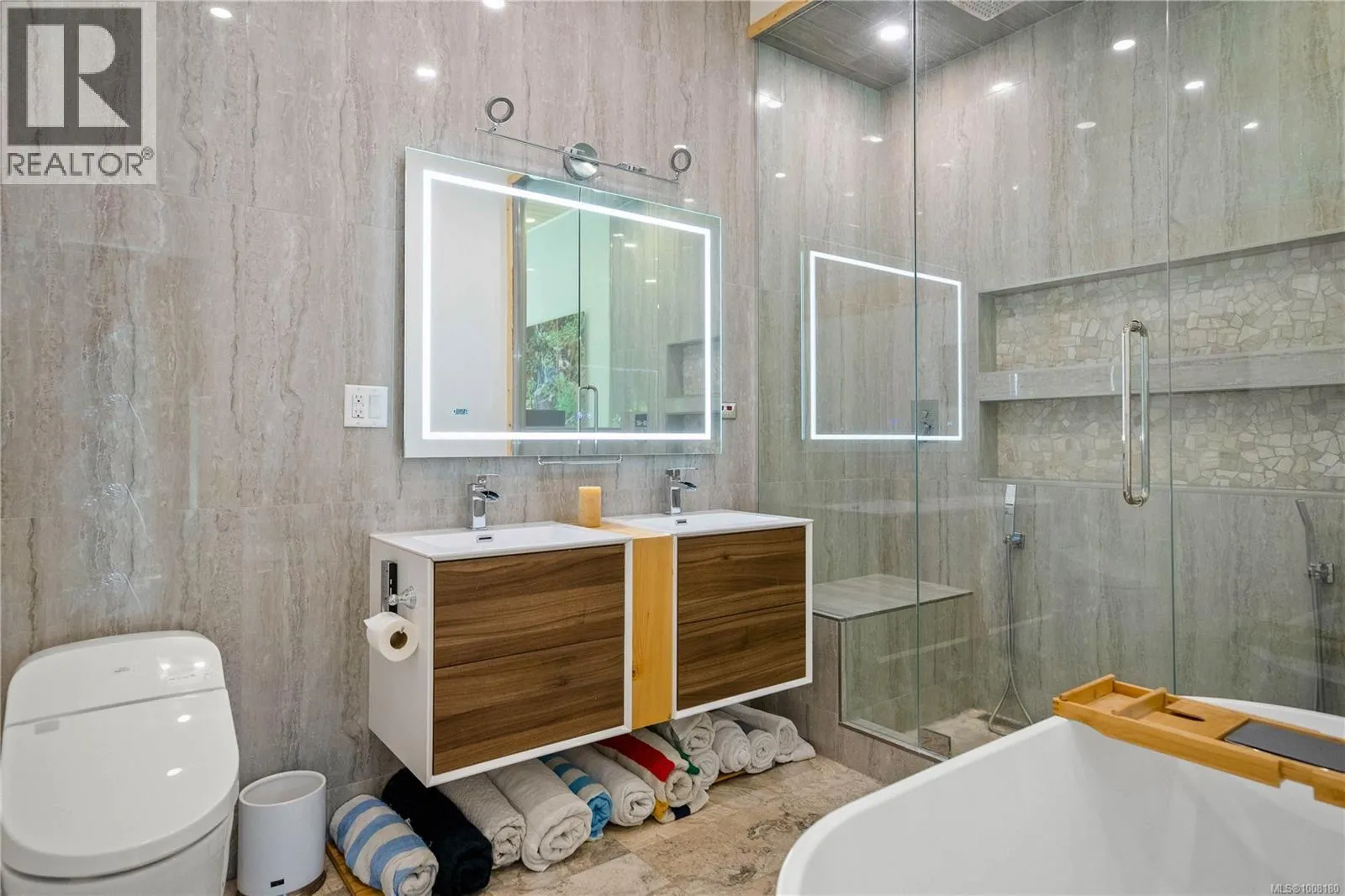 Live in nature at this oceanfront home within city limits, nestled beside Goldstream Provincial Park, Langfordâs only oceanfront park setting. Built in 2009 and fully reimagined between 2021 and 2025 with thoughtful custom upgrades, this home blends West Coast serenity with refined, modern design. Highlights include an ocean-view steam shower, a new primary bedroom wing with walk-in closet and laundry, a fully renovated kitchen, plus updated electrical, plumbing, and a white oak heated floor system. A metal roof, gutter guards, and water management systems ensure lasting peace of mind. Bathrooms are spa-inspired, with heated tile, glass showers, and high end finishes, complemented by a saltwater ocean-view hot tub. Follow pathways through the forest and mature landscaping down to your private oceanfront access, perfect for watching salmon, seals, sea lions, and eagles drift past. With a high-producing well and septic system, this coastal retreat is truly turnkey. (id:27476)