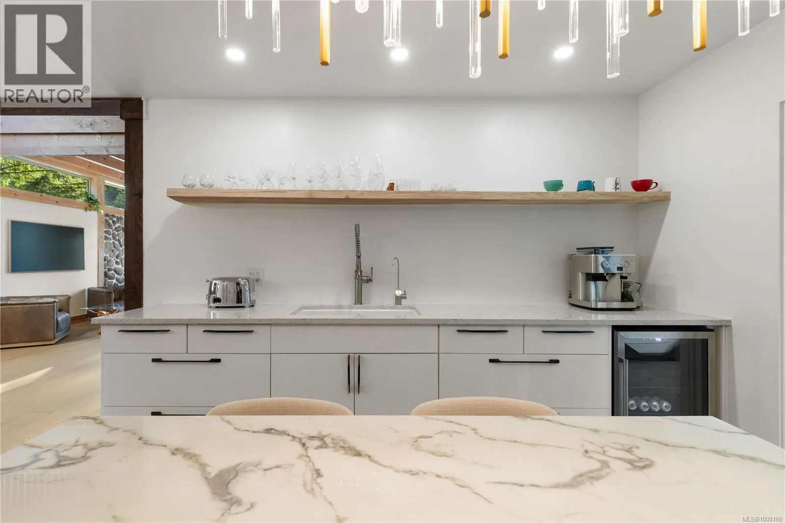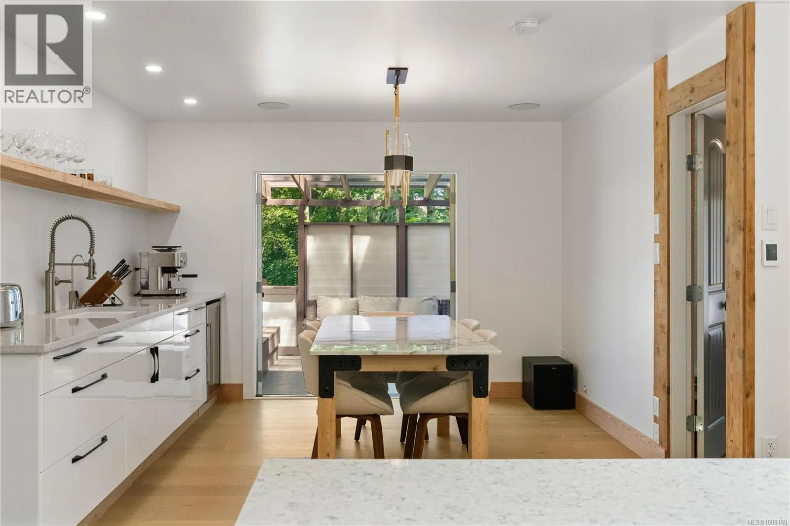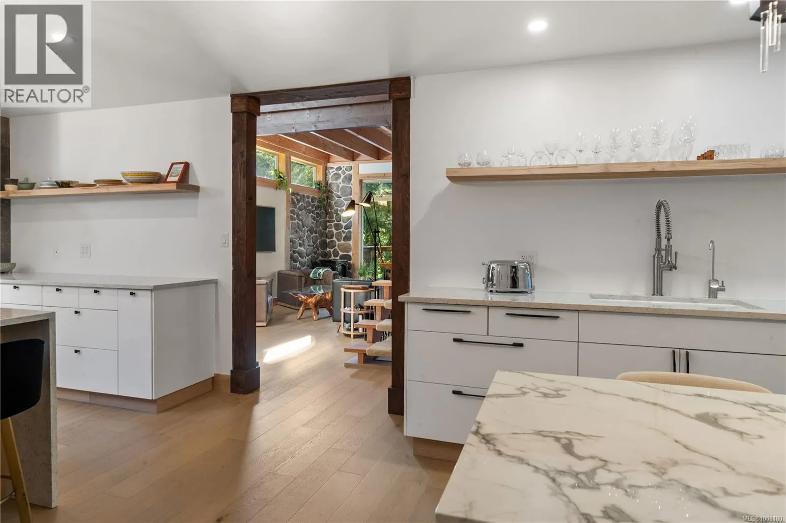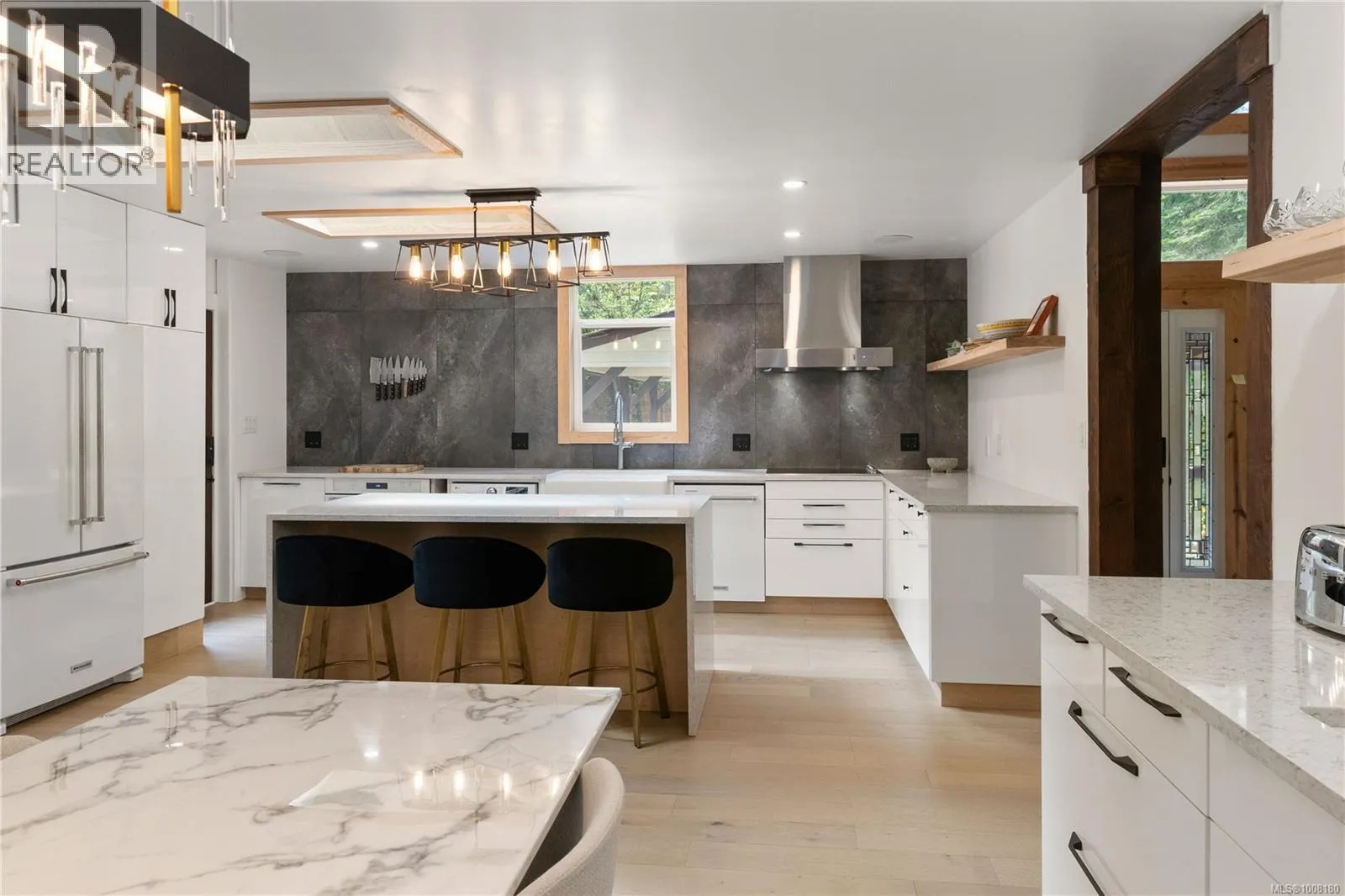 Live in nature at this oceanfront home within city limits, nestled beside Goldstream Provincial Park, Langfordâs only oceanfront park setting. Built in 2009 and fully reimagined between 2021 and 2025 with thoughtful custom upgrades, this home blends West Coast serenity with refined, modern design. Highlights include an ocean-view steam shower, a new primary bedroom wing with walk-in closet and laundry, a fully renovated kitchen, plus updated electrical, plumbing, and a white oak heated floor system. A metal roof, gutter guards, and water management systems ensure lasting peace of mind. Bathrooms are spa-inspired, with heated tile, glass showers, and high end finishes, complemented by a saltwater ocean-view hot tub. Follow pathways through the forest and mature landscaping down to your private oceanfront access, perfect for watching salmon, seals, sea lions, and eagles drift past. With a high-producing well and septic system, this coastal retreat is truly turnkey. (id:27476)