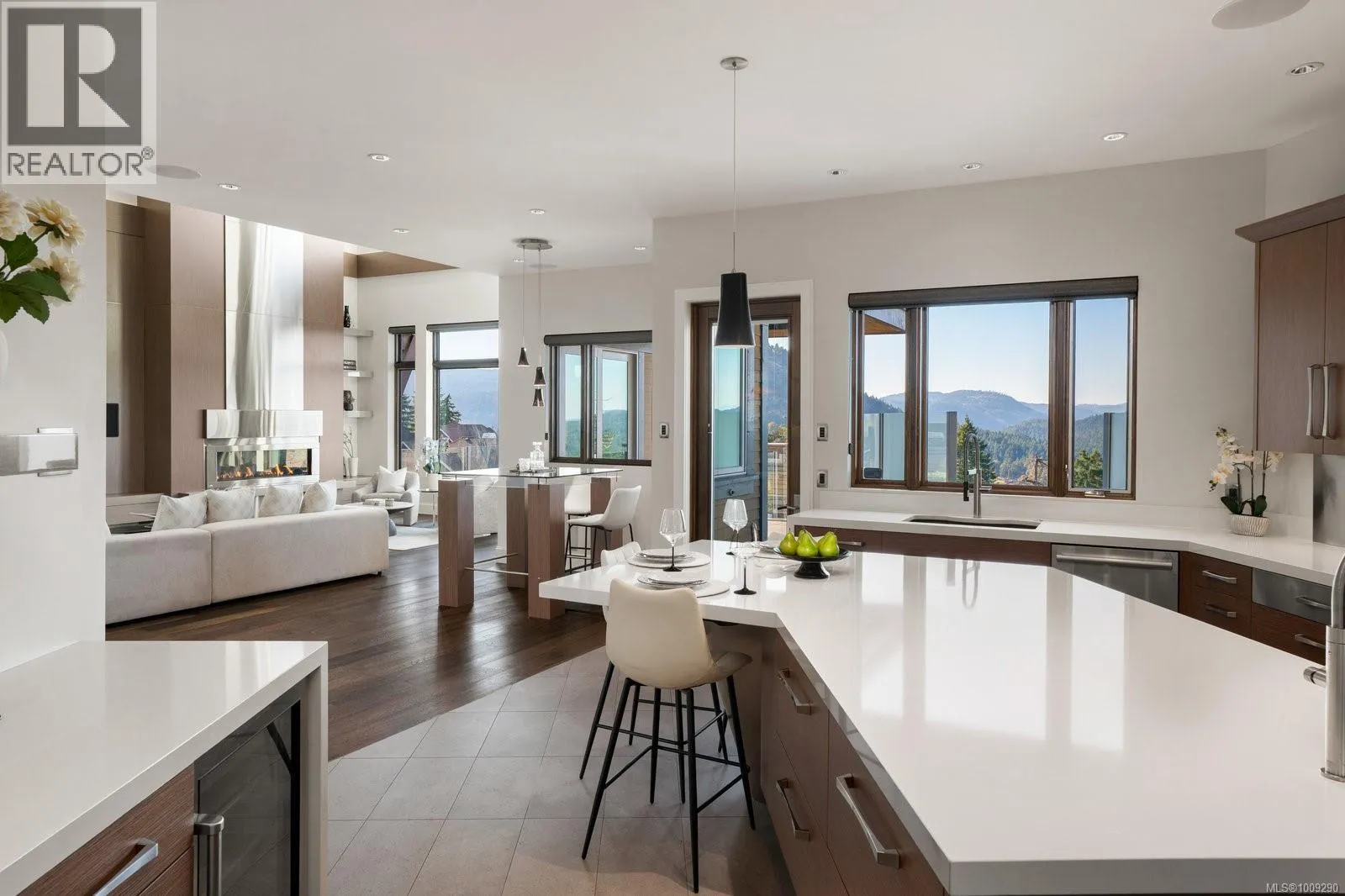 1098 Bears Paw Plateau is a custom-built masterpiece by Terry Johal Developments, nestled in Bear Mountainâs prestigious gated enclave. This luxurious home welcomes you with a grand entry, leading to soaring an open-concept 20 ft living area, dedicated dining space, and an entertainerâs kitchen complete with a walk-through pantry. Step onto the expansive west-facing patio and take in panoramic views of Mt. Finlayson perfect for BBQs and golden sunsets. The main-level primary suite offers a cozy fireplace, walk-in closet, and a stunning 5-piece ensuite with a Japanese soaker tub. The lower level features a theatre room with a sit-up bar, two bedrooms, and double doors to a second heated garage with a built-in workshop and showroom flooring. A bonus space above the triple garage offers endless potential for guests, hobbies, or extended family. With in-floor heating, a heat pump, and a state-of-the-art Control4 system, comfort and efficiency are top of mind. Golf membership to two year-round Nicklaus Design courses includedâresort living awaits. (id:27476)