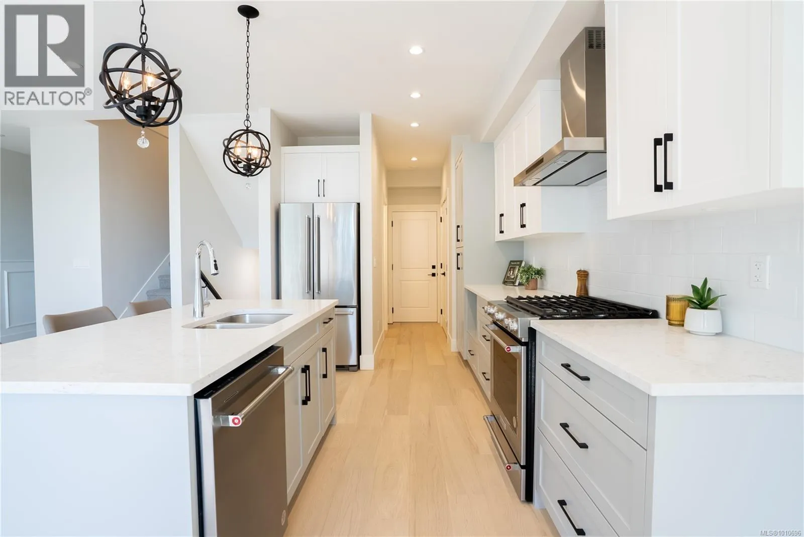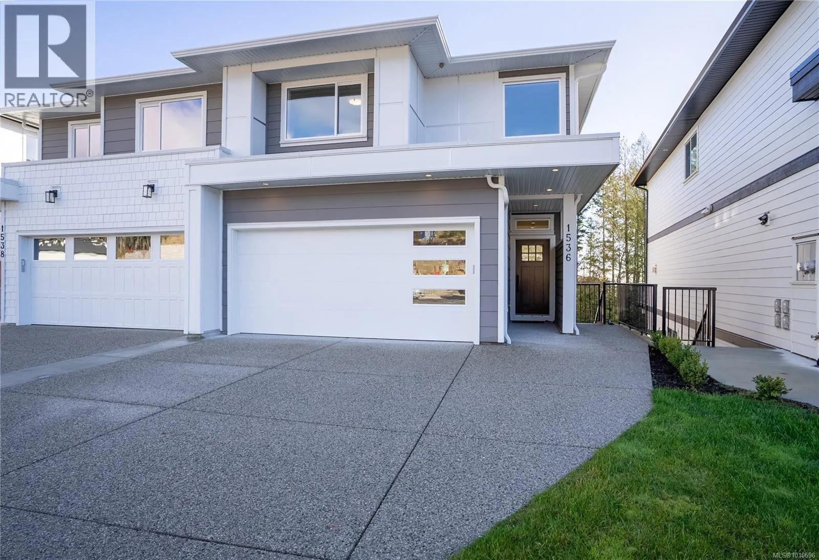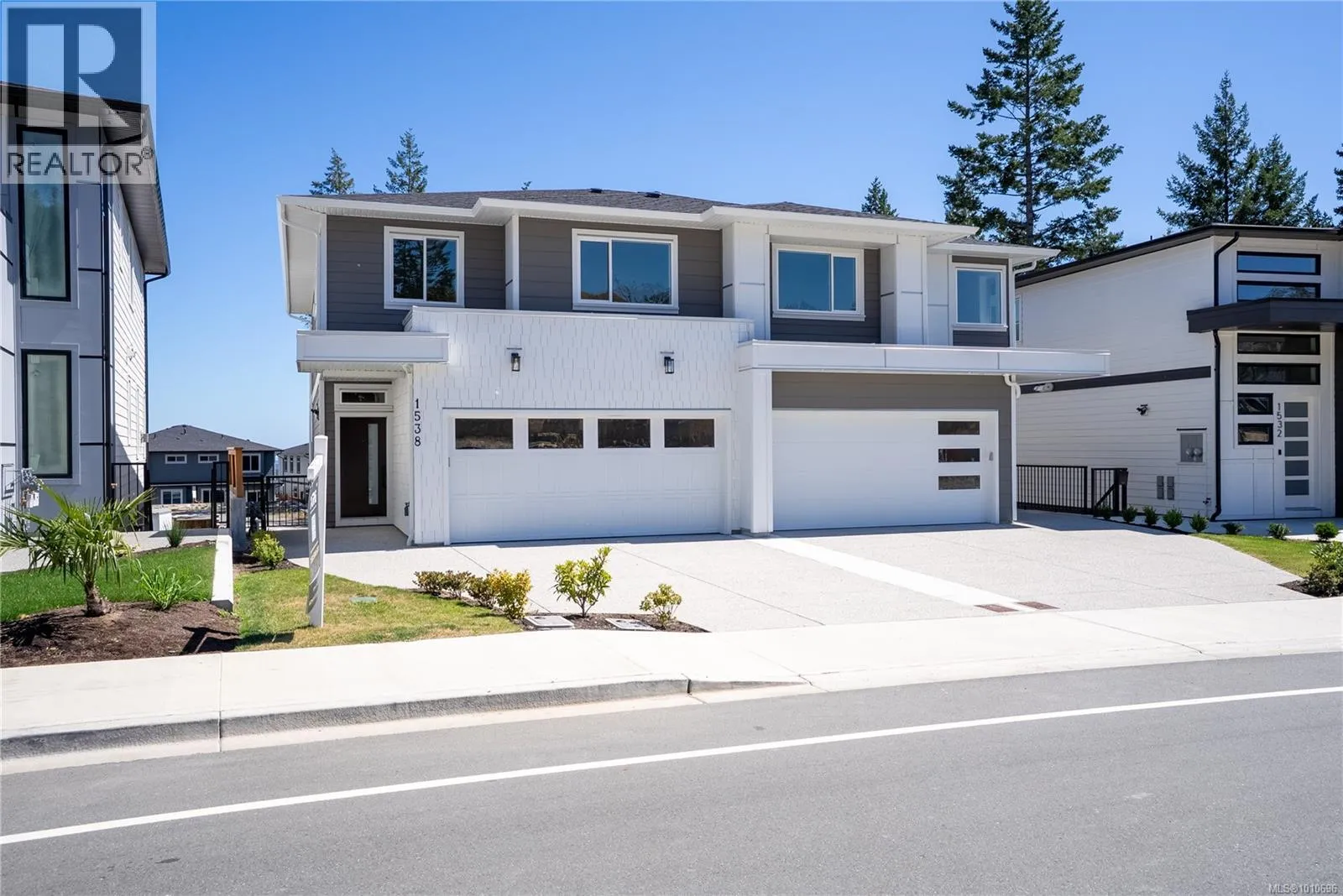 OPEN HOUSE SAT NOV 22ND, 11am-1pm. Experience the best of Southpoint in this stunning brand-new half duplex, perfectly situated on a serene greenspace in the desirable South Bear Mountain area. This spacious 2500+ sq ft retreat boasts a convenient in-law suite, ideal for multi-generational living or rental income. The main floor shines with an open-concept layout, featuring a sleek kitchen with gas stove, island, and breakfast bar, plus a cozy living room with a gas fireplace and marble surround. Enjoy seamless indoor-outdoor living on the expansive deck, complete with a gas BBQ outlet and breathtaking views. With a double garage, ample driveway parking, and a fenced rear yard with synthetic lawn, this property has it all. Plus, enjoy the benefits of efficient heating and cooling, Built Green Gold certification, and modern amenities like engineered Oak flooring and a tankless hot water system. Conveniently located near amenities, TC1, transit, and recreation on Bear Mountain, this fantastic home comes with a New Home Warranty. Come and discover your dream home! (id:27476)