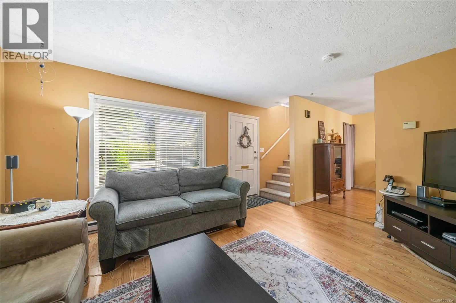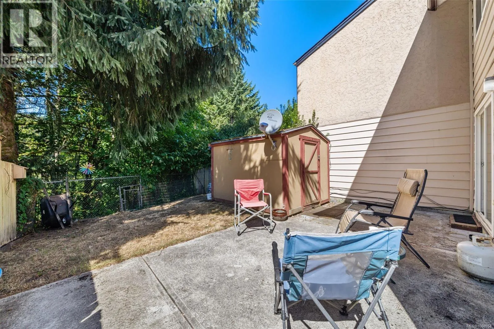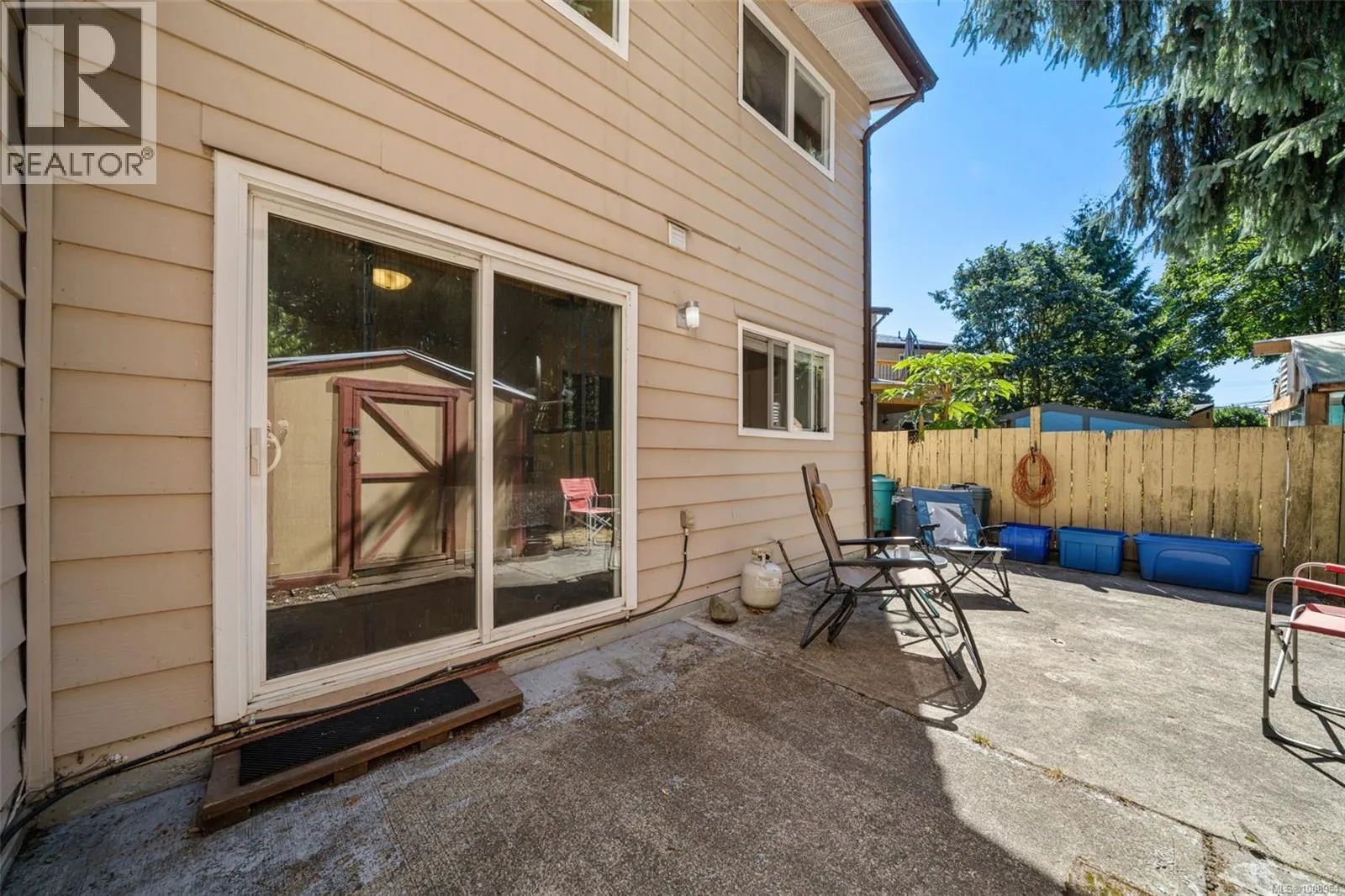 Rare offering! Strata allows multiple pets with no size restrictions!! Welcome home to this 3 bed 1 bath, open concept townhouse in the well run Canyon Park Estates which allows rentals and pets (see bylaws). New hot water heater and windows have been updated. The bright kitchen with large pantry/laundry flows into the dining room and outside patio area, backing onto sunning westcoast mature forest with the sun streaming through the trees (Goldstream Provincial Park!). Enjoy this private end unit complete with bathroom window, storage access and two parking spaces directly in front of home. All this tucked in behind mature landscaping to feel private, yet so close to so many amenities! Contact your realtor today for for more details and a private showing! Measurements are approximate, buyer to verify. (id:27476)
