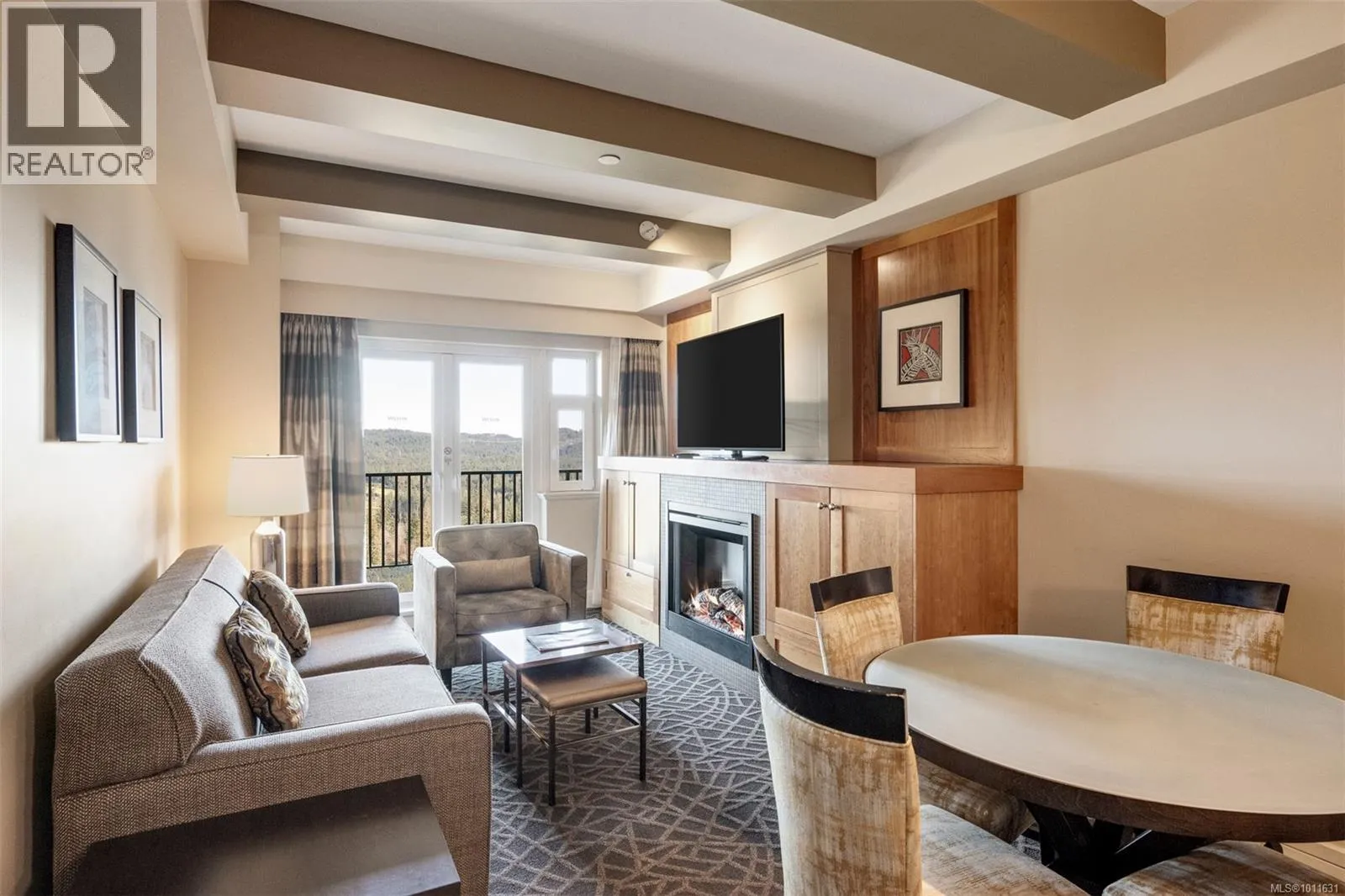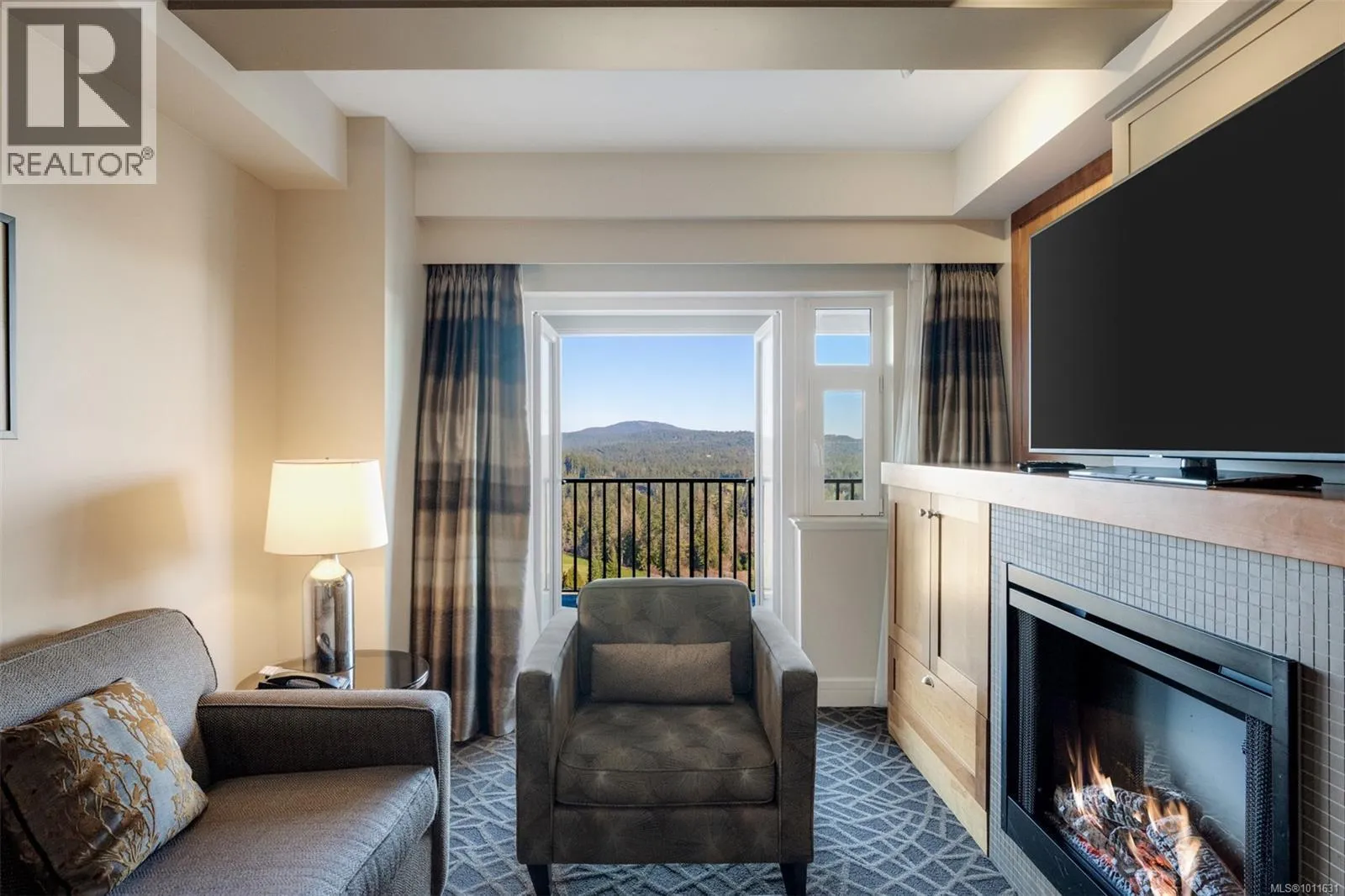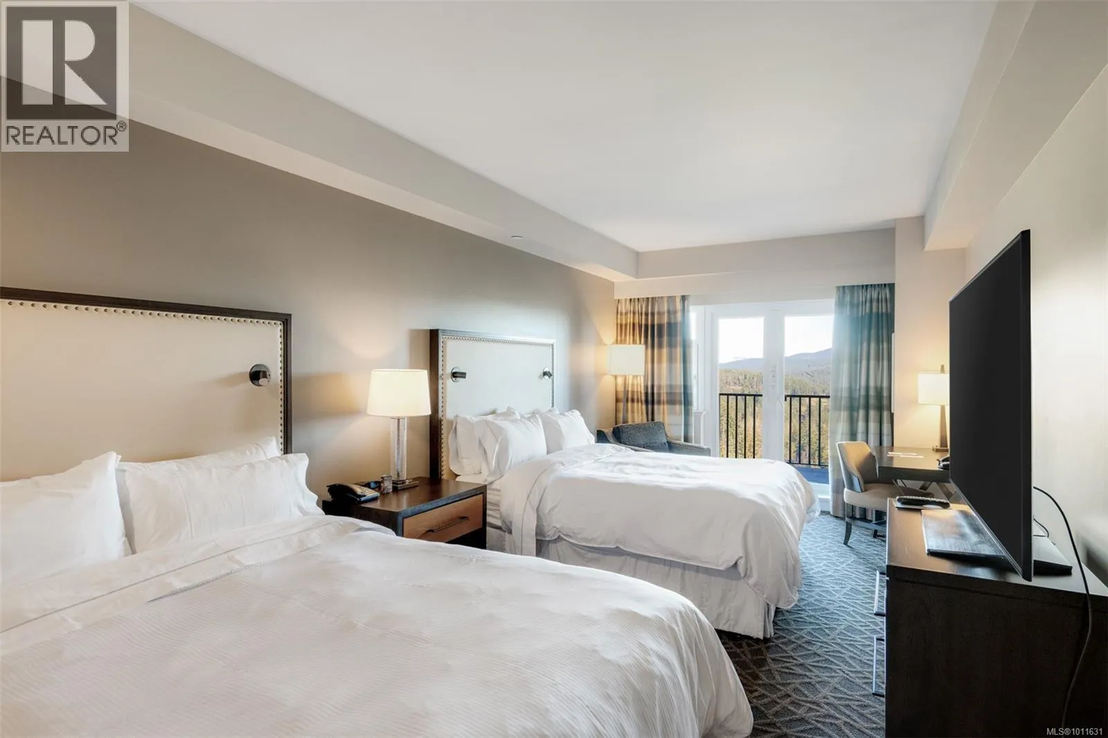 Incredible opportunity to own in Bear Mountain Resort Community! Fractional ownership in the ClubHouse at the Westin Golf Resort & Spa offers two adjoining rooms, providing guest privacy or spacious family accommodations. The kitchen flows into an open living area with a cozy fireplace, leading to a stunning patio with breathtaking mountain and golf course views. The primary suite boasts a desk area, balcony access, a walk-through double closet, and a luxurious 4-piece ensuite with a soaker tub. The additional lock-off suite sleeps four, featuring a wet bar and a 4-piece ensuite. Enjoy world-class amenities at your doorstepâtwo Championship Nicklaus-designed golf courses, Tennis Centre, an outdoor pool/hot tub at North Langford Recreation Centre, or hike/bike scenic trails and Mt. Finlayson. Your mountain retreat is just 20 minutes from downtown Victoria! (id:27476)