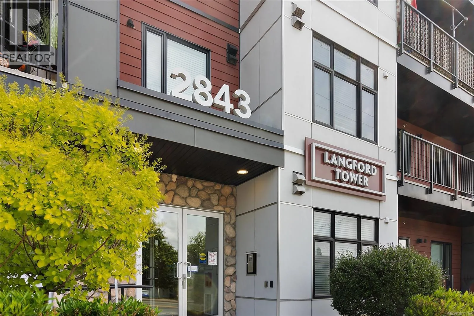 Built in 2020, Langford Towers delivers comfortable living in a well-managed, beautifully designed building. This top-floor unit has an excellent layout, with an open kitchen; two bedrooms on opposite sides of the living room; two bathrooms; and an extra area for den, office, or additional storage. Features include an ensuite and walk-in closet attached to the primary bedroom; in-suite laundry; east-facing balcony on the quiet side of the building; as well as secure, underground parking and bike room. The building has a tranquil outdoor courtyard to share with your neighbours and guests. This central location is within easy reach of big box stores as well as local favourites for meals out, like House of Boateng, Jones BBQ, and Floydâs Diner. A short drive will take you to Langford Lake, Royal Colwood Golf Club, Bear Mountain, Royal Roadâs campus, or Goldstream Provincial Park. This home will make a great option for new buyers, investors, or seniors looking to downsize. (id:27476)