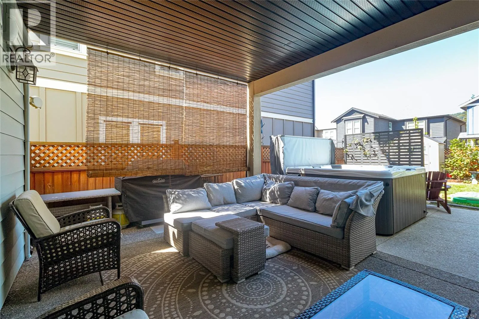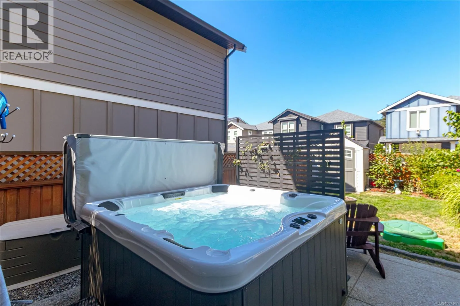 This meticulously maintained home offers style, comfort, and a LEGAL 1-bedroom suite above the garageâperfect for in-laws or added income! Recent updates include a ductless heat pump with A/C, new appliances, fresh exterior paint, new carpet upstairs, new concrete patio, sliding glass doors, and a hot tub for relaxing evenings. The main level features open-concept living with granite counters, custom wood cabinetry, high-end appliances, a huge walk-in pantry, and a powder room. Upstairs you'll find 3 bedrooms, 2 bathrooms, including a spacious primary with walk-in closet and ensuite. The private backyard is beautifully landscaped and ready for entertaining. Located on a quiet street with back-lane access in a family-friendly neighbourhood near Happy Valley Elementary and the Galloping Goose Trail. Move-in ready with everything done. Just unpack and enjoy! (id:27476)