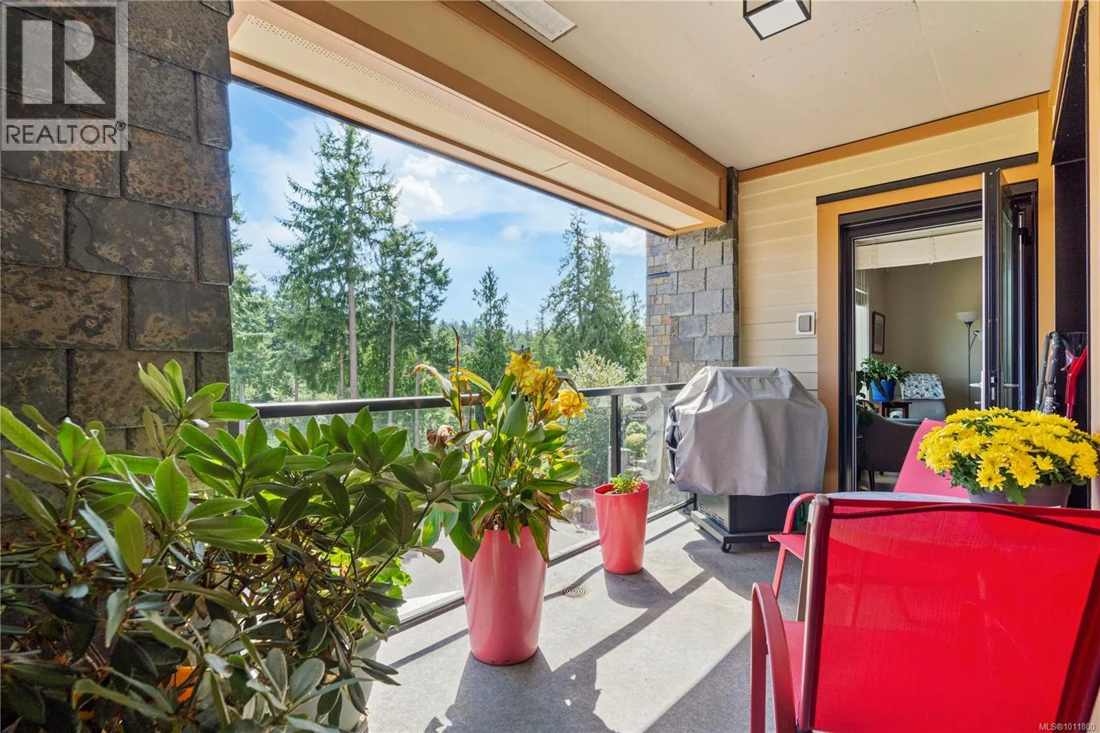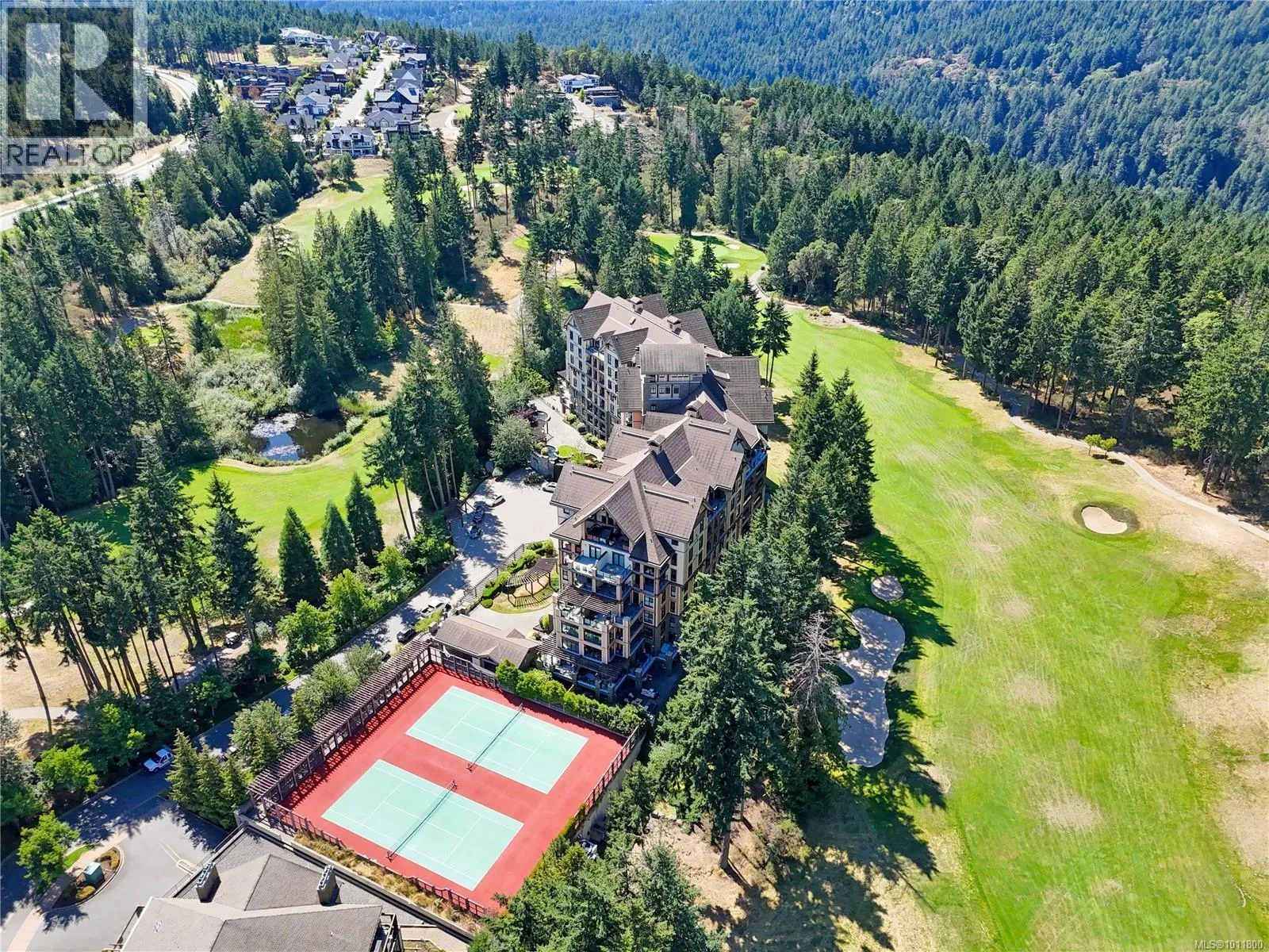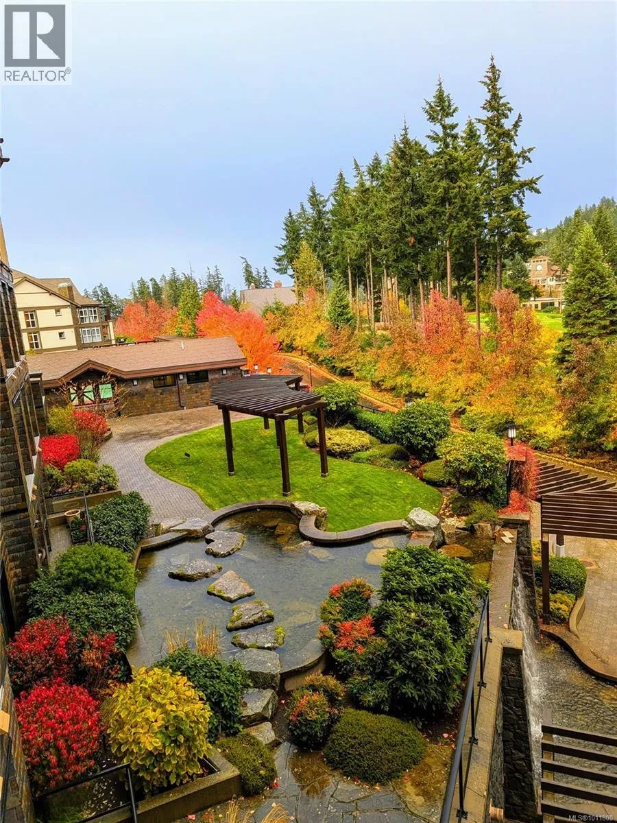 Luxury Resort-Style Condo in Bear Mountain Resort! Bright 2BR/2BA in Finlayson Reach, a steel & concrete, adult-oriented building at the end of a quiet no-thru road in Bear Mountain Resort. Enjoy year-round comfort with efficient heat pump/AC, plus a sunny south-facing balconyâperfect for morning coffee or natural gas BBQs while listening to soothing waterfalls and panoramic pond & golf course views. Upgrades include: new carpets (2025), fridge, dishwasher, washer and dryer (all 2023), gourmet gas range, granite counters, large island, full-size laundry. Spacious primary suite boasts spa-like ensuite with separate shower and tub, double closets, and balcony access. Amenities include gym, theatre, lounge, sauna/steam shower, secure underground parking, storage, car wash. Ultimate pet-friendly living! Walk to spa, salon, liquor store, pool & hot tub recreation center, restaurants, endless trails. Minutes to Costco, shopping, and easy highway accessâlive the ultimate resort lifestyle at The Bear Mountain Resort Community. Possession can be flexible! (id:27476)