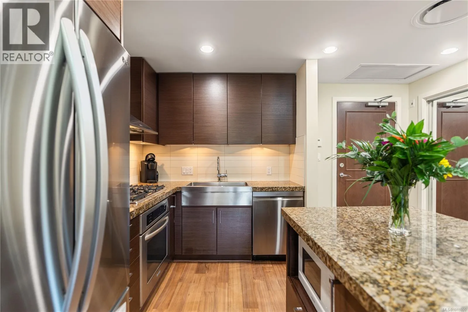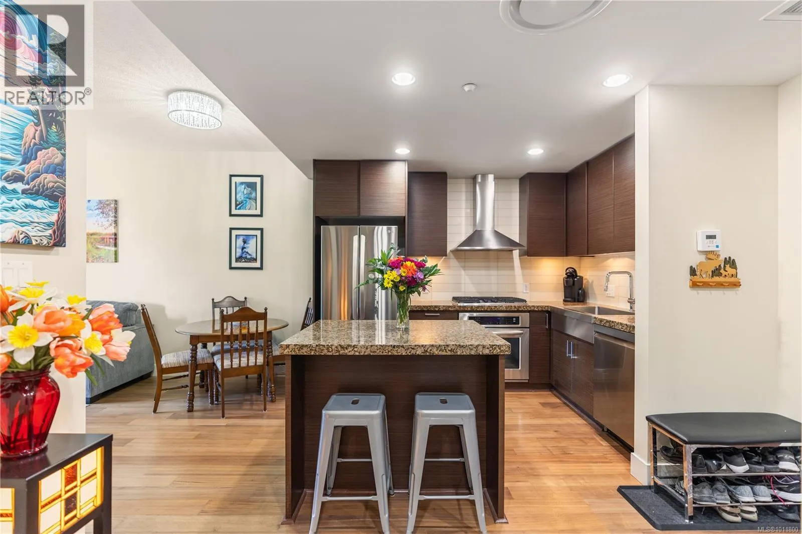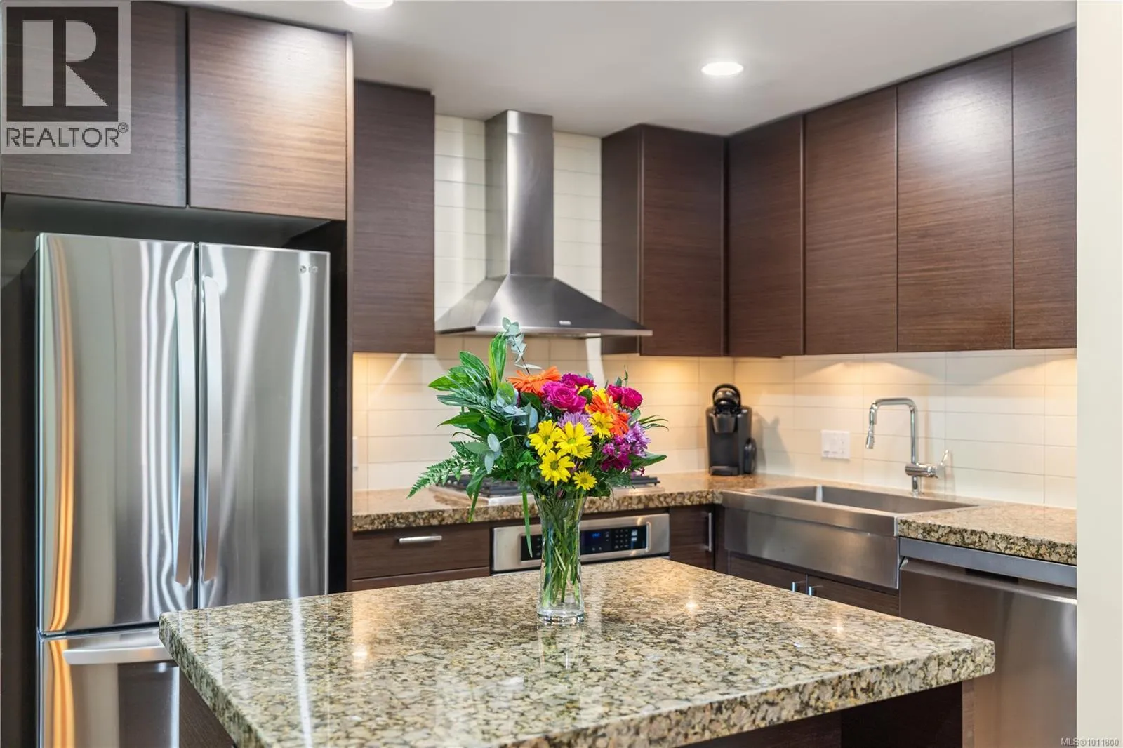 Luxury Resort-Style Condo in Bear Mountain Resort! Bright 2BR/2BA in Finlayson Reach, a steel & concrete, adult-oriented building at the end of a quiet no-thru road in Bear Mountain Resort. Enjoy year-round comfort with efficient heat pump/AC, plus a sunny south-facing balconyâperfect for morning coffee or natural gas BBQs while listening to soothing waterfalls and panoramic pond & golf course views. Upgrades include: new carpets (2025), fridge, dishwasher, washer and dryer (all 2023), gourmet gas range, granite counters, large island, full-size laundry. Spacious primary suite boasts spa-like ensuite with separate shower and tub, double closets, and balcony access. Amenities include gym, theatre, lounge, sauna/steam shower, secure underground parking, storage, car wash. Ultimate pet-friendly living! Walk to spa, salon, liquor store, pool & hot tub recreation center, restaurants, endless trails. Minutes to Costco, shopping, and easy highway accessâlive the ultimate resort lifestyle at The Bear Mountain Resort Community. Possession can be flexible! (id:27476)