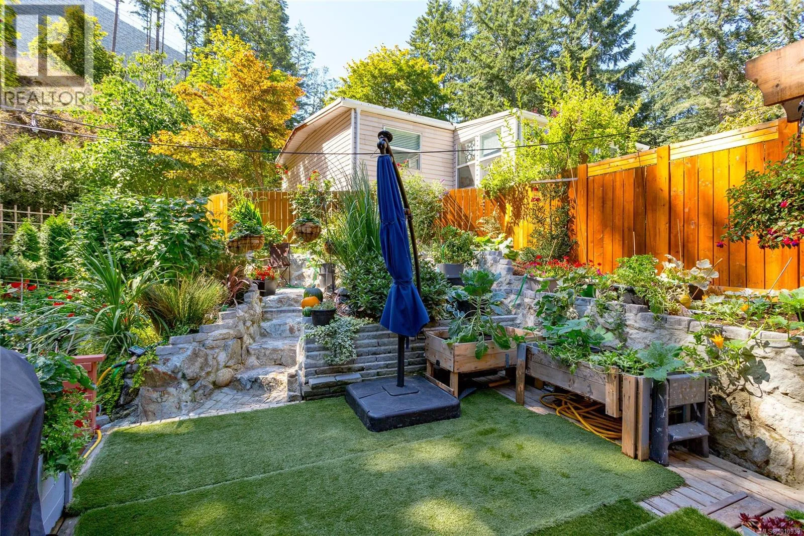 Skip the condo life and enjoy the beauty, spaciousness and privacy of this 2-bed, 2-bath manufactured home in Hidden Valley; a well-run 55+ park in the heart of Langford. Completely renovated in 2023, the home offers a bright, open concept layout, modern kitchen, two generous bedrooms, separate laundry room, heat pump for year-round comfort and ample storage. Outside, bask in your garden oasis featuring watermelons, strawberries, apples, tomatoes, pumpkins, cucumbers and more. Enjoy lounging on your large, sunny deck while your furry friends enjoy the fenced yard. If you ever manage to leave your little slice of paradise, Florence Lake is just steps away and a little beyond that, all of the conveniences of Millstream Village and Costco. Downsize without having to compromise! (id:27476)