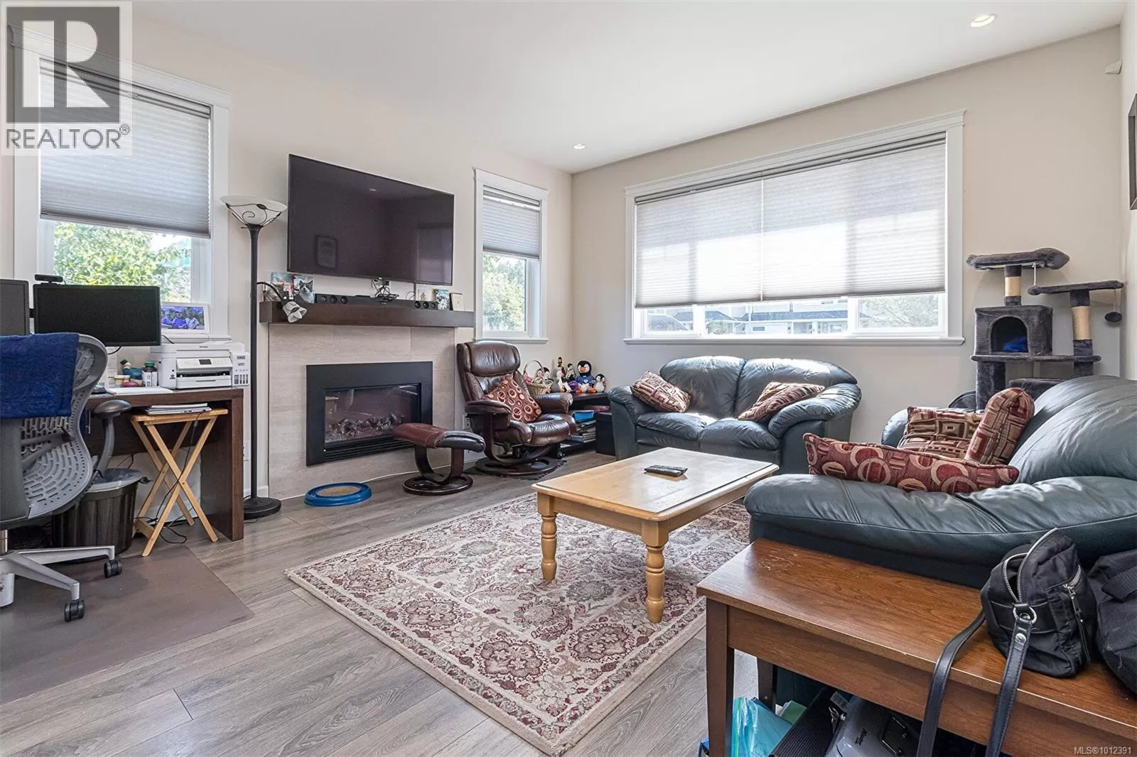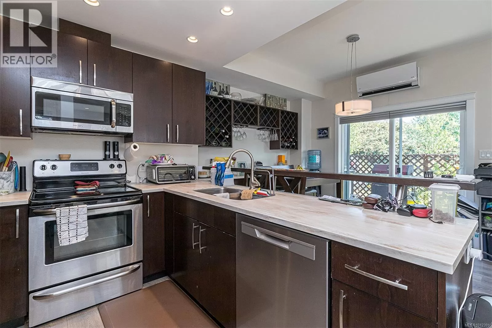CONVENIENTLY LOCATED DUPLEX in the popular THETIS HEIGHTS area. PRIMARY HOME is 3 bedrooms and 3 baths with oversized 2 car garage. Open plan living and dining with electric fireplace. The kitchen dining area has CUSTOM WINE RACK, stainless steel appliances. The primary bedroom has own in-suite bath with heated tile and walk in closet. EXTERIOR has abundance of parking, plus lower patio and private upper balcony off of primary bedroom, 2ND SUITE has 2 bedrooms with 3 baths, Open living and dining area with fireplace, kitchen with bar and stainless steel appliances, bedroom with in-suite bath and walk-in closet, Beautiful private outside patio. Both homes have the feature to stay warm in the winter and cool in the summer with the energy efficient ductless heat pump. Enjoy a walk to nearby Thetis Lake Park or ride your bicycle on convenient bike path. This is a very unique property with the possibility of being your family home with mortgage helper or an investment property. (id:27476)