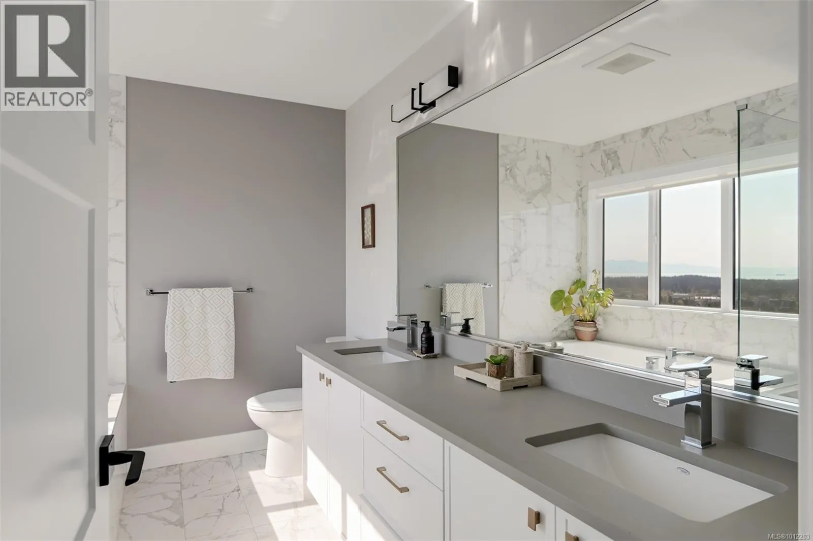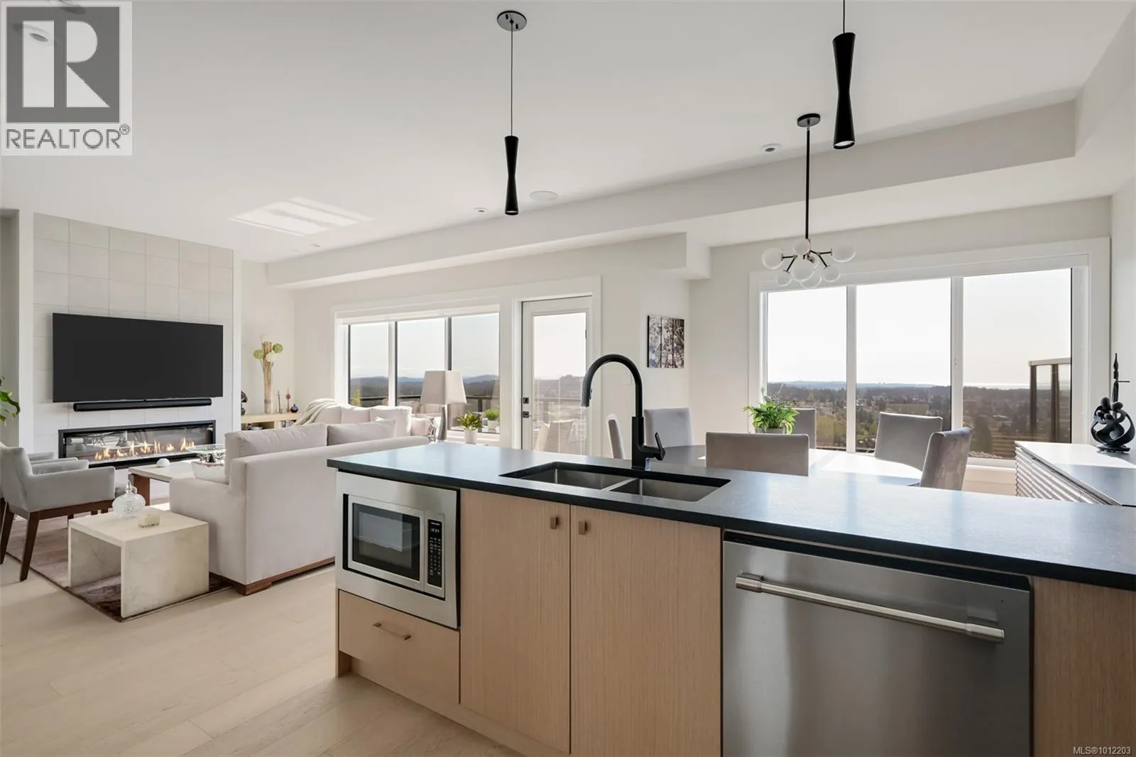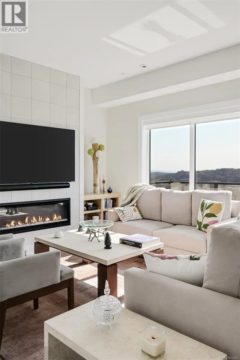 A beautifully appointed home with panoramic views enjoyed from every principal room. Offering 3 beds/4 baths across 2,147 sqft of thoughtfully designed space, this home blends everyday comfort with elevated living. The gourmet kitchen features SS appliances, a gas range, a large sit-up island, and a welcoming dining area. The bright living room centers around a cozy fireplace and flows seamlessly to a spacious patio, where mountain and ocean vistas create the perfect backdrop for gatherings or quiet evenings. The primary suite delights with soaring 11 ft ceilings, a walk-in closet, and a spa-like 5-piece ensuite. Two additional bedrooms, a 3-piece bath, and laundry complete the upper level. The lower floor offers a generous rec room, a 3-piece bath, and a versatile flex space with direct access to a patio and fenced backyard. With a double garage, air conditioning, and Built Green certification, this home brings together luxury, comfort, and lifestyle. (id:27476)