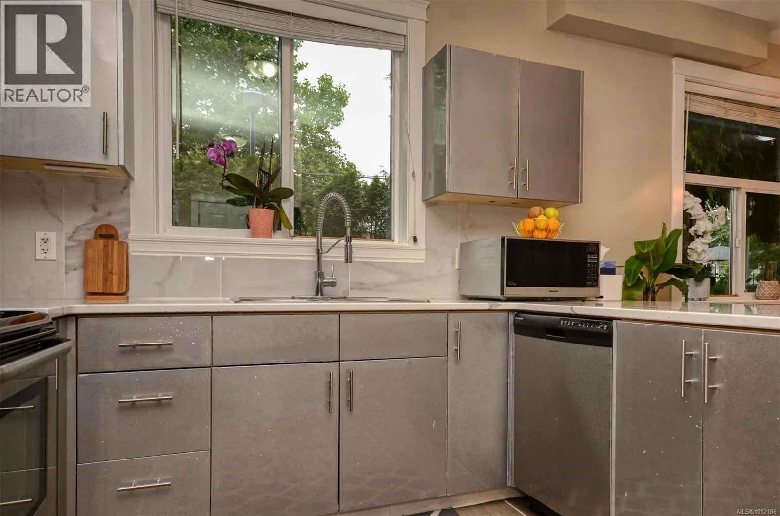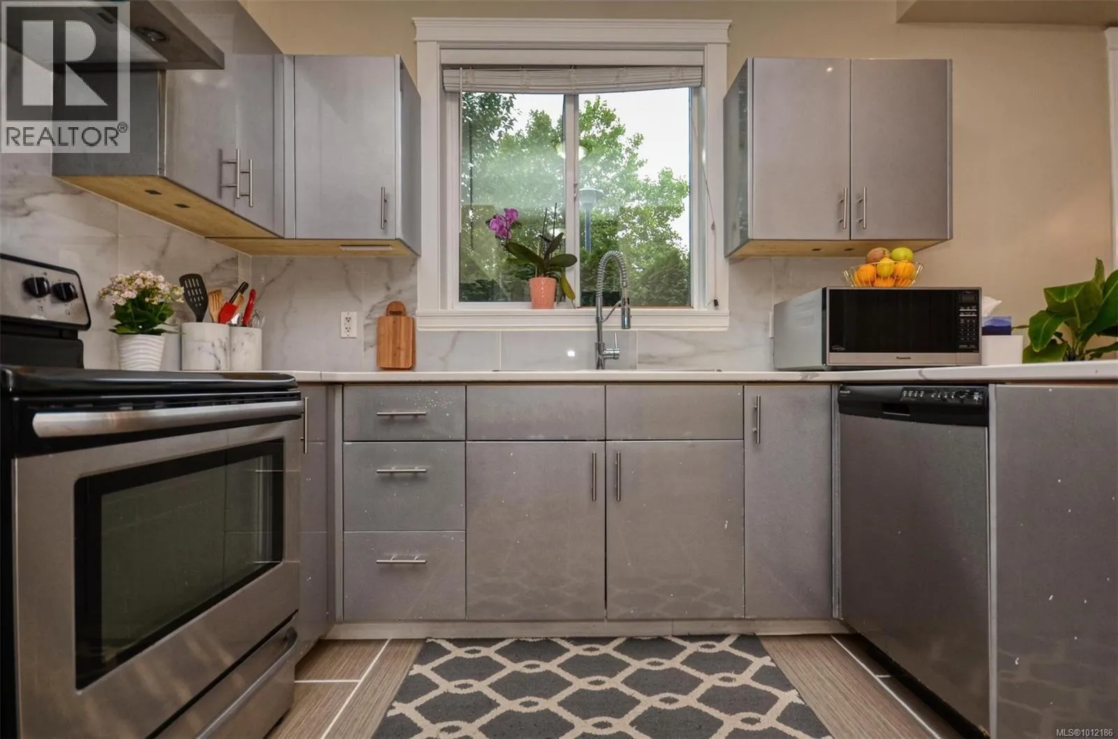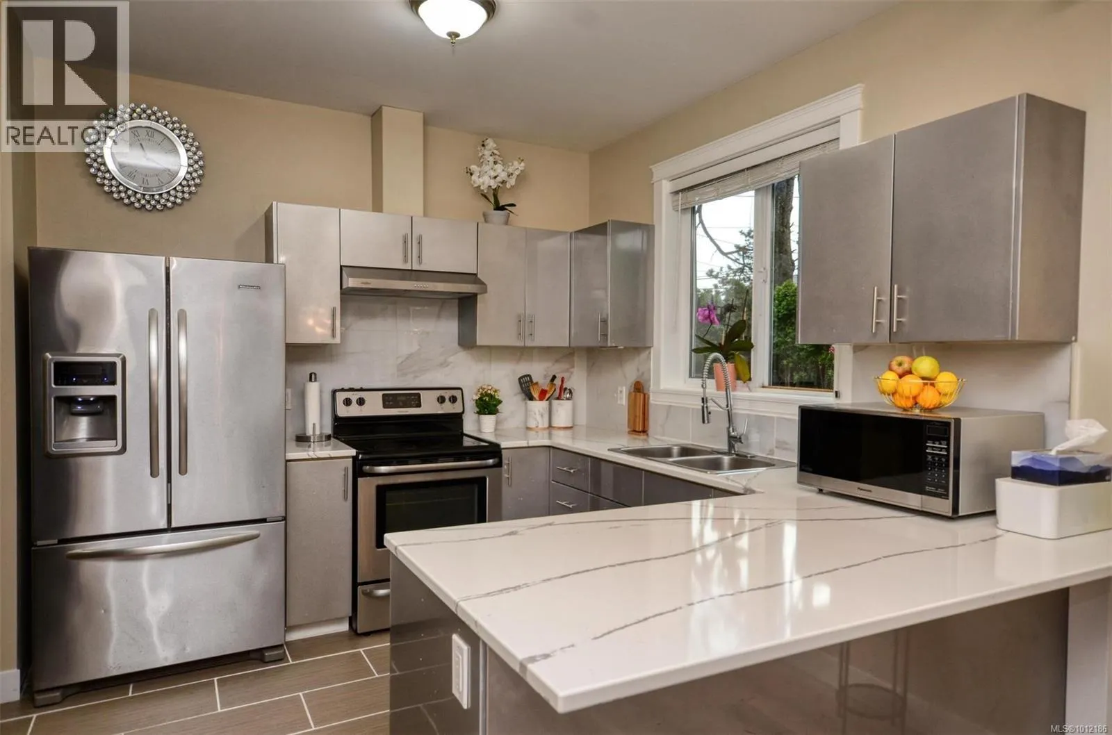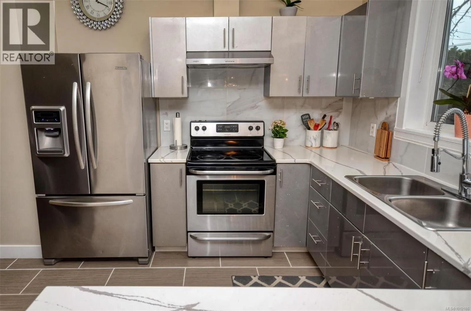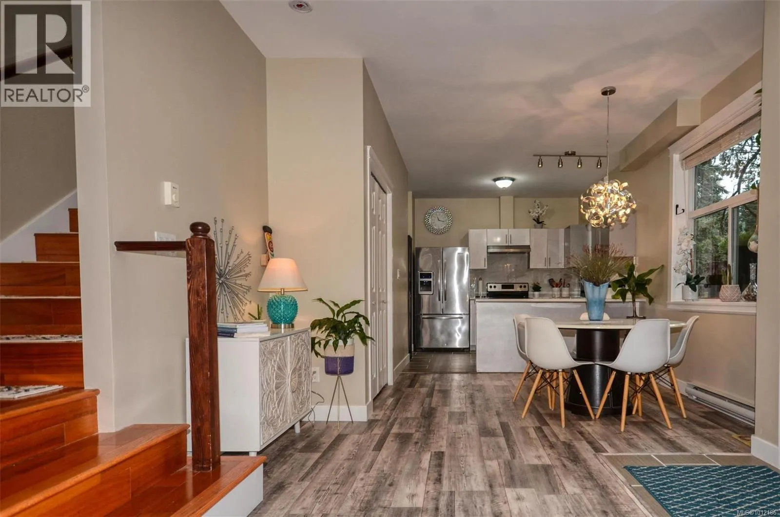 Welcome Home! This fabulous 1408 sqft 3 bed/3 bath town home on 2 levels offers an exceptional open concept floor plan! The main floor entrance opens into a bright living/dining room area and a lovely, spacious kitchen finished with granite countertops, stainless steel appliances, soft close cabinets, tiled glass backsplash and eating bar. Completing the 1st floor, you will a find a 2 piece main level powder room, a single car garage and access to the fully fenced. Upstairs features 3 generous sized bedrooms, each with vaulted ceilings, including master suite with a walk through closet and full ensuite, a 3rd bath and separate laundry room. This move-in ready home has all hard surface flooring including cherry hardwood as well as being freshly painted. Located in a great location with the conveniences of schools, shopping, transportation and parks all nearby. Perfect starter home and great for families, bonus - no monthly strata fees! (id:27476)