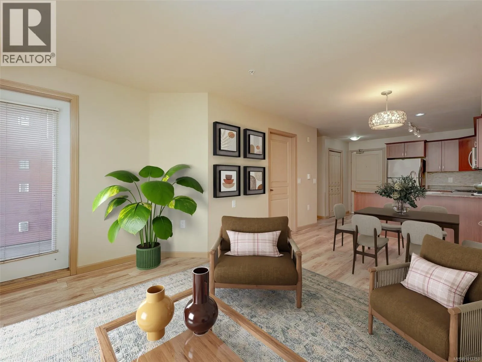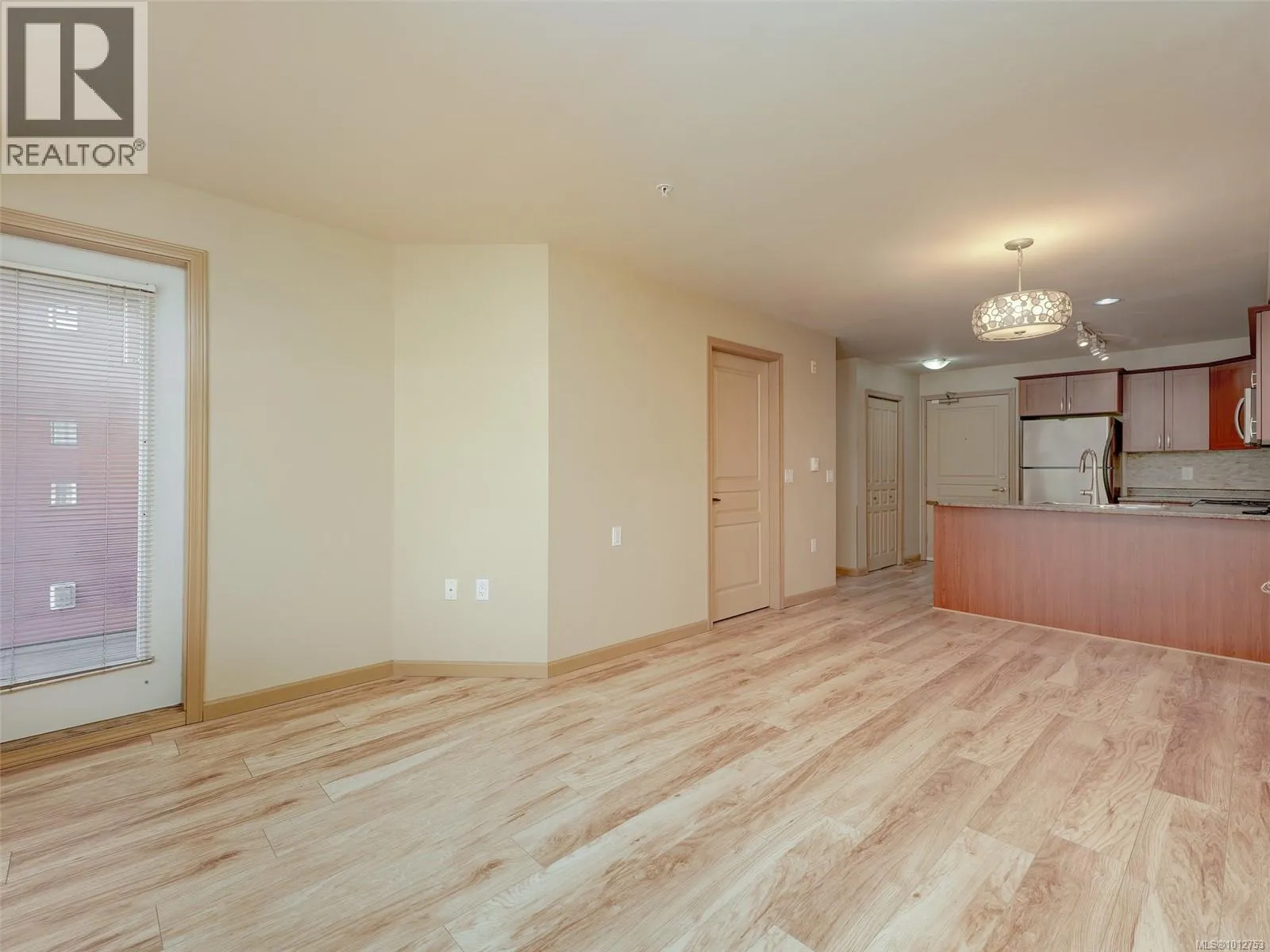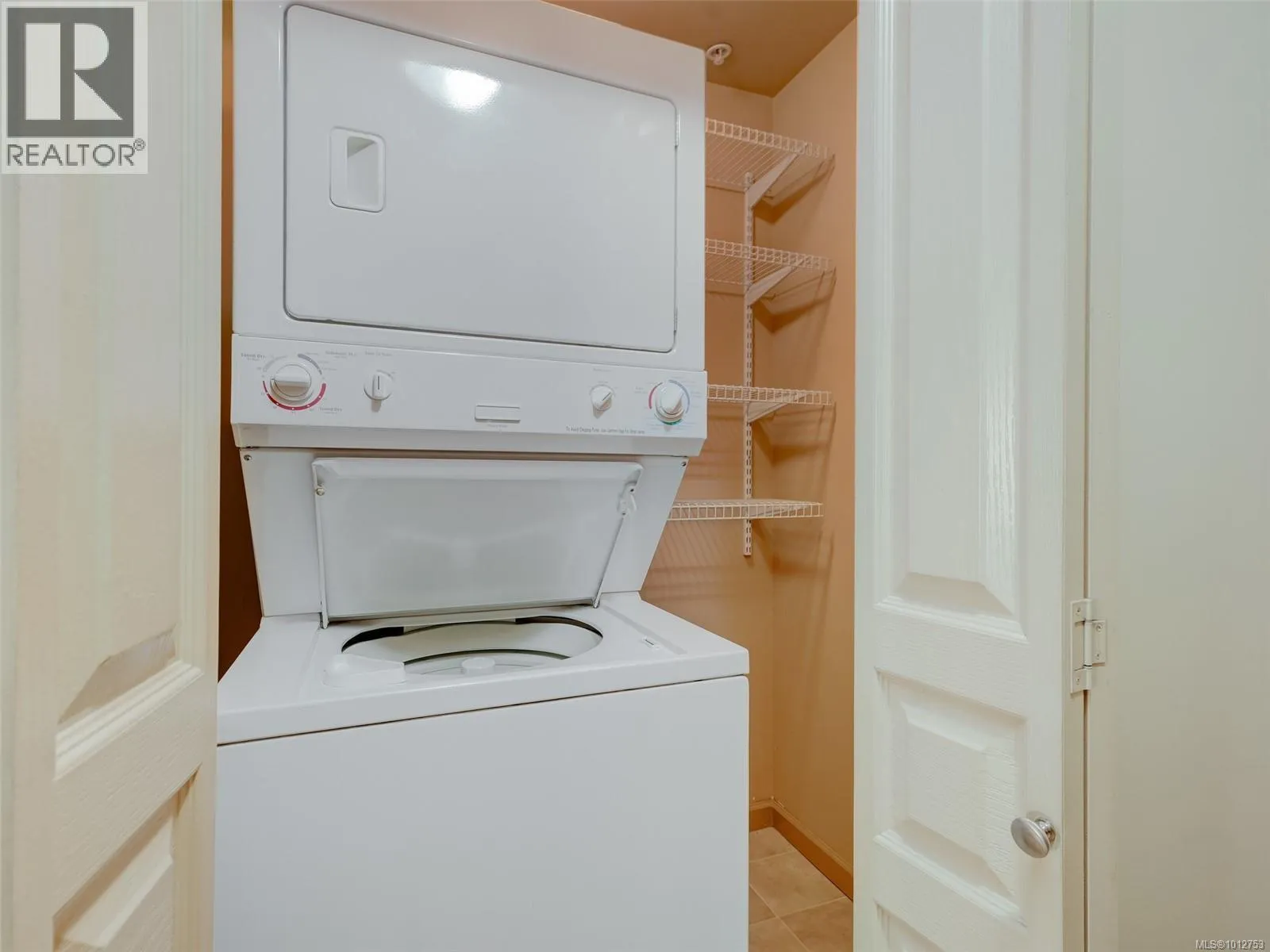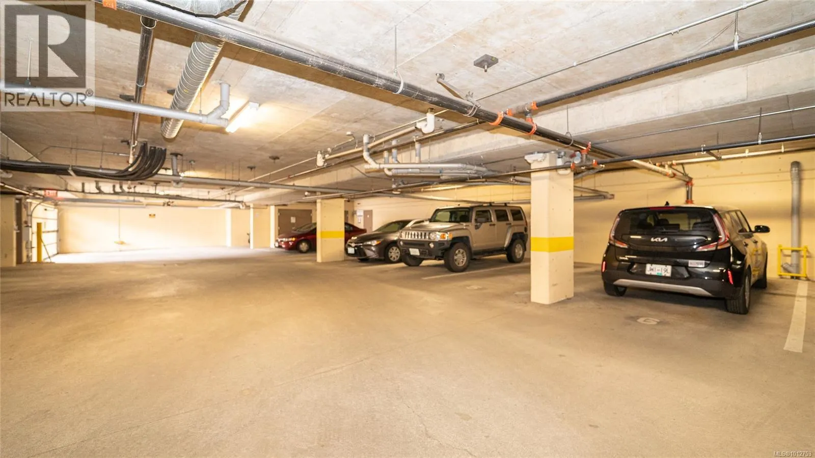 Nestled in the heart of Langford, this quiet open concept, spacious 2 bedroom & 2 full bath third floor condo has a great layout. Fabulous kitchen with lots of cupboards, counter space & breakfast bar seating. Master bedroom has a walk-in closet & a full en suite. Large bedrooms both have exterior windows. Convenient in-suite laundry, large coat closet & linen closet. Secure underground parking, storage locker, bicycle room, exercise room, common room, Japanese courtyard garden & a roof top patio. A short stroll to shopping, restaurants, parks, championship golfing, the new university & all amenities. Minutes to the highway. Pets & rentals allowed. Bike to town on the Galloping Goose Trail across the street, super convenient location. And now newly painted, come have a look! (id:27476)