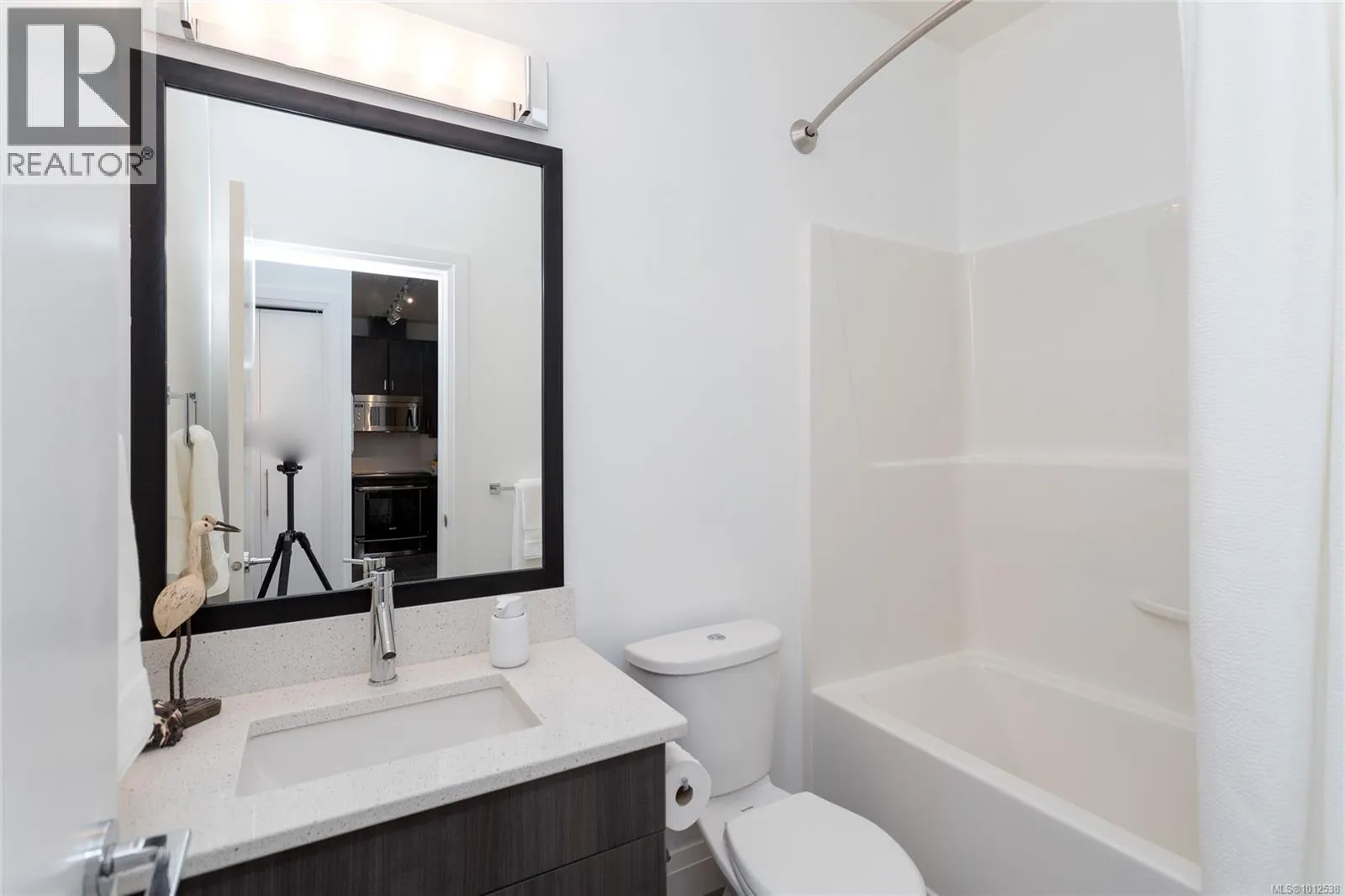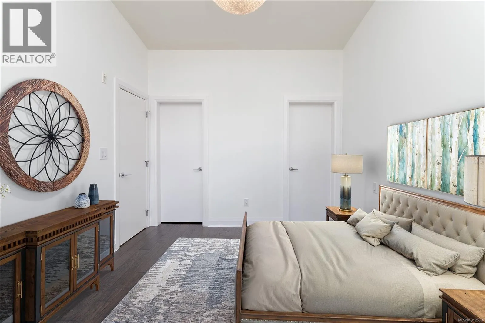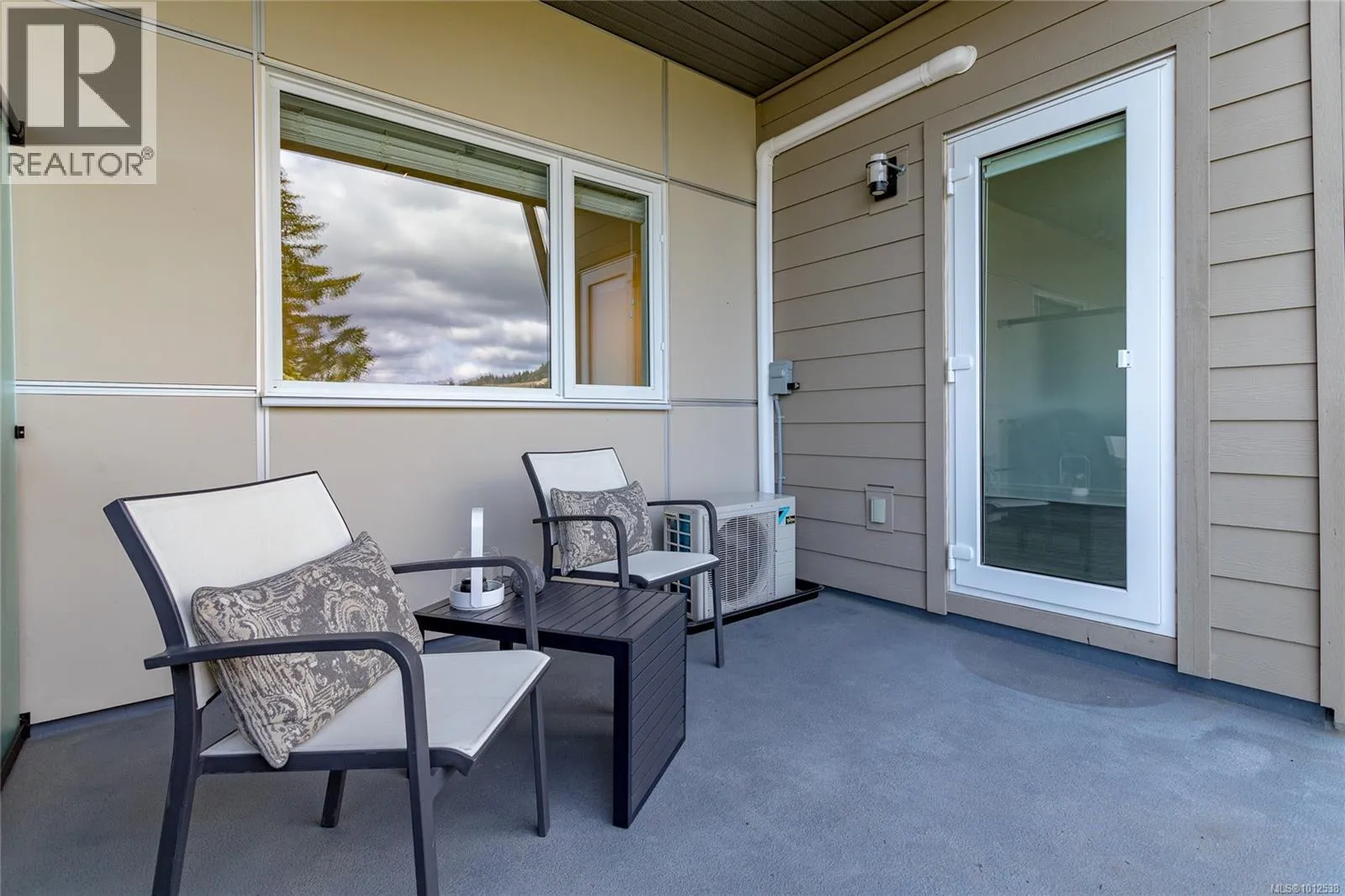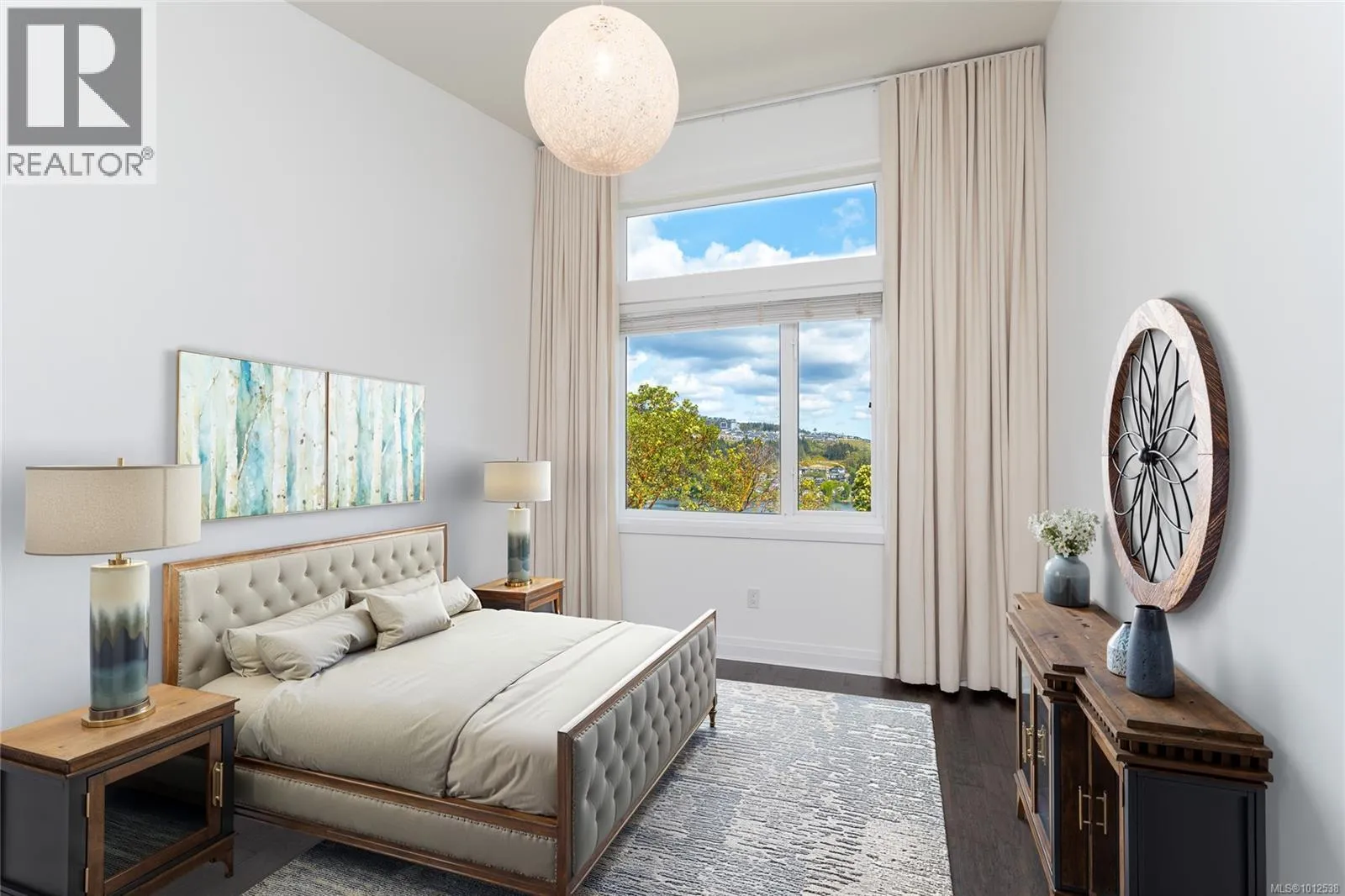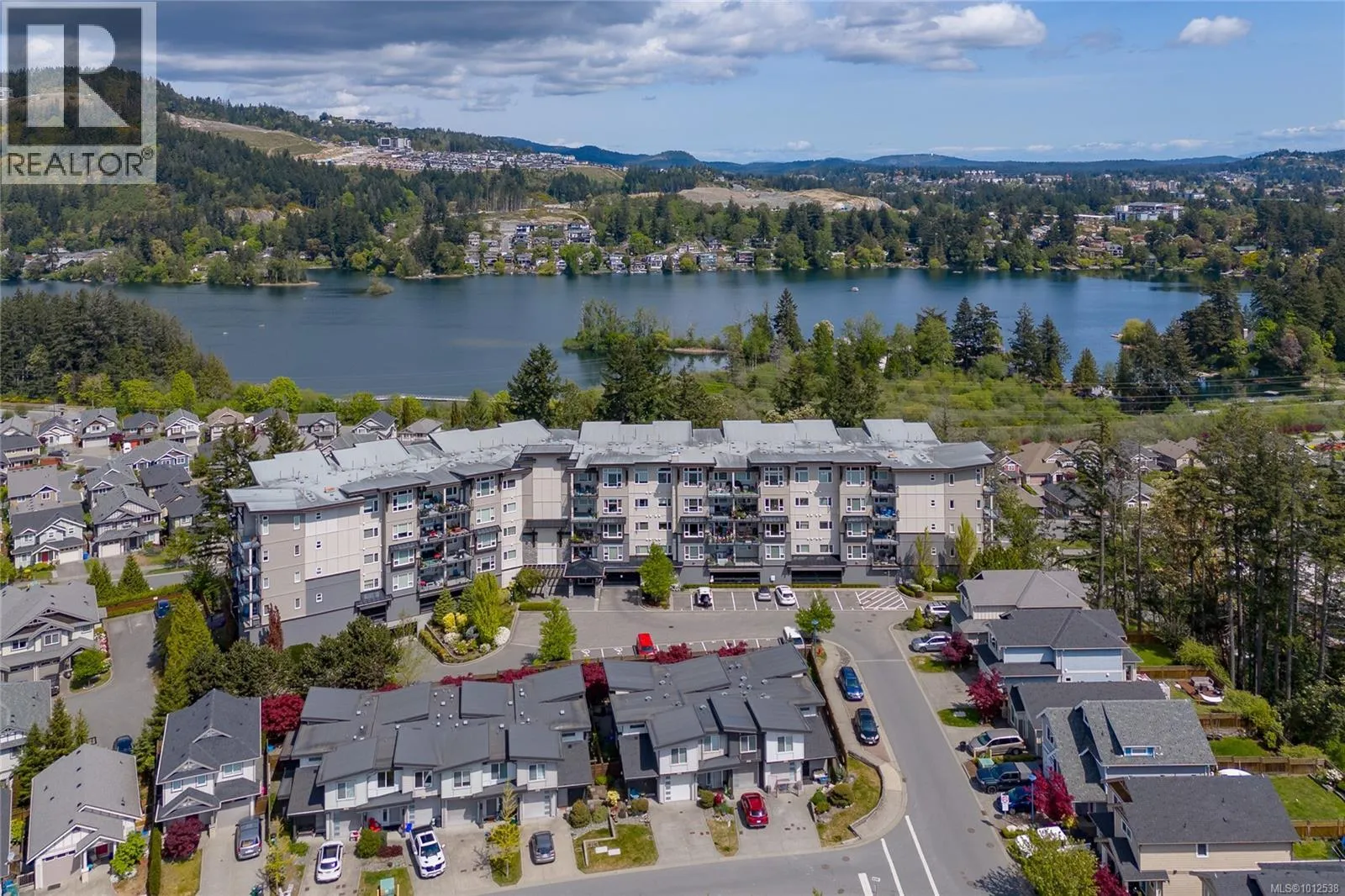 Act now and be Home for the Holidays! TOP FLOOR UNIT Perched on a hill offering sweeping, spectacular water views, & gorgeous mountain views, this tranquil 2 bed + 2 bath residence is elevated above it all. A private sanctuary featuring exquisitely upgraded interior, including 12' vaulted ceilings, a Heat Pump to keep you cool in summer, high-end appliances, rich hardwood floors, custom closet organizers, & elegant floor-to-ceiling custom draperies. The chefâs kitchen blends beauty & function, & expansive windows flood the home with natural light & capture breathtaking vistas from every angle. Step onto your private balcony to entertain, unwind, & savor the views. The generous primary suite boasts a custom walk-in closet & luxurious ensuite. A spacious second bedroom, a full bath, in-suite laundry, fresh designer paint, & in-floor geothermal heating included in the strata fee. Ideally located in the award-winning Westhills community close to the YMCA, parks, schools, & shopping (id:27476)