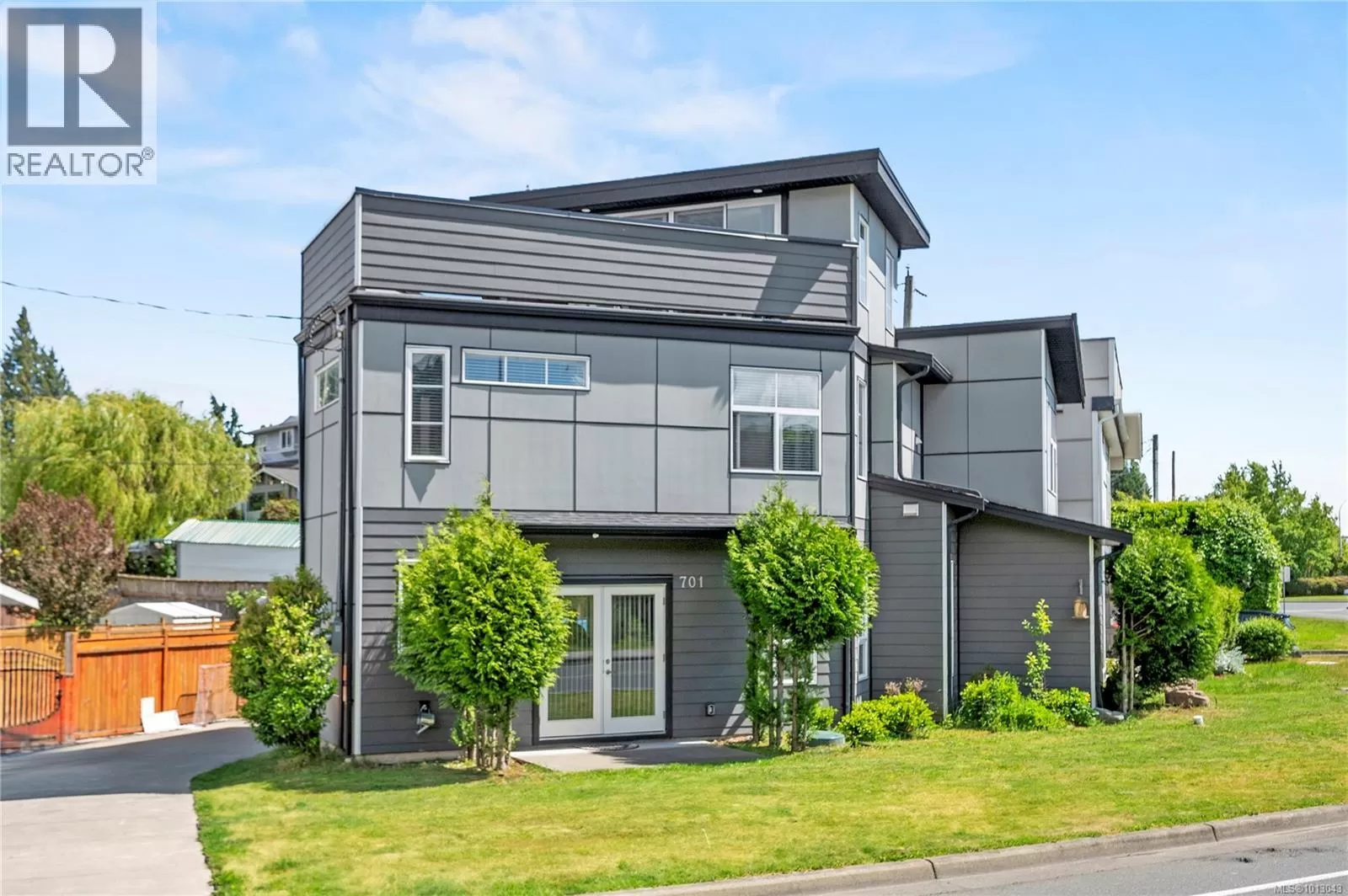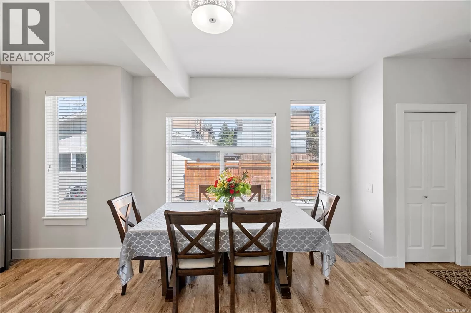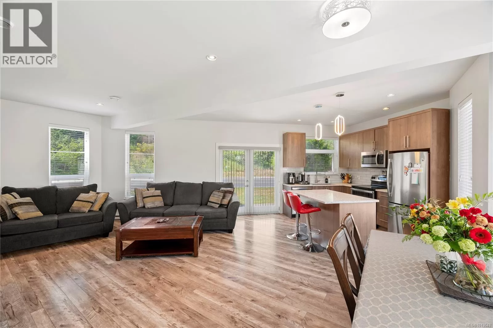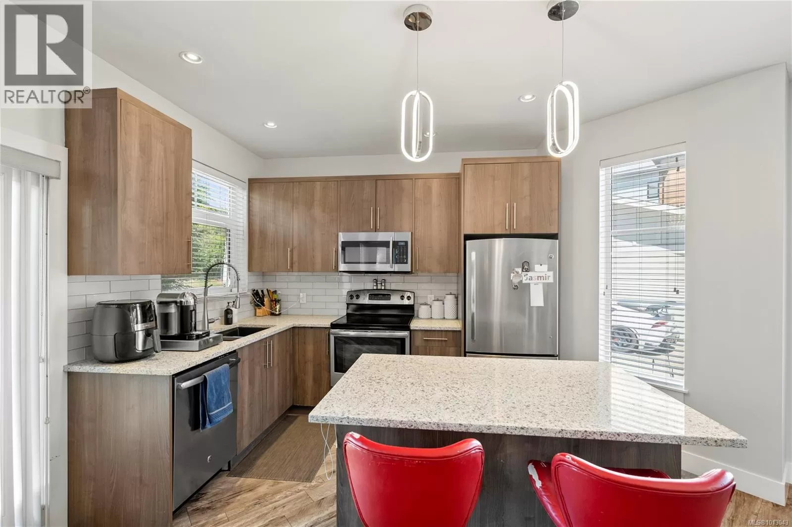 Sophisticated Living with a Rooftop Oasis Welcome to a home that blends modern style, thoughtful design, and low-maintenance living. This 3-bedroom, 3-bathroom residence with a spacious flex room and an expansive 315 sq. ft. rooftop patio offers the perfect balance of comfort and sophistication. The main floor showcases an open-concept layout with 9-foot ceilings and oversized windows that invite natural light throughout. The contemporary kitchen features sleek quartz countertops, stainless steel appliances, and abundant cabinetry, flowing seamlessly into the dining and living areasâideal for both relaxed family living and hosting guests. Step through French doors into your private, fully fenced yard and patio, where indoor and outdoor living connect effortlessly. Upstairs, discover the crown jewel of this property: a rooftop patio designed for year-round enjoyment. Whether itâs morning coffee, evening gatherings, or the addition of a hot tub under the stars, this space provides a true retreat. The home is further enhanced by durable solid laminate flooring, underground sprinklers, and quality finishes that ensure easy care and long-lasting appeal. Perfectly located just minutes from shopping, restaurants, schools, and transit, and only 20 minutes to downtown Victoria, this home offers convenience without compromise. A modern lifestyle, private outdoor escapes, and functional design come together hereâready for you to move in and enjoy. (id:27476)