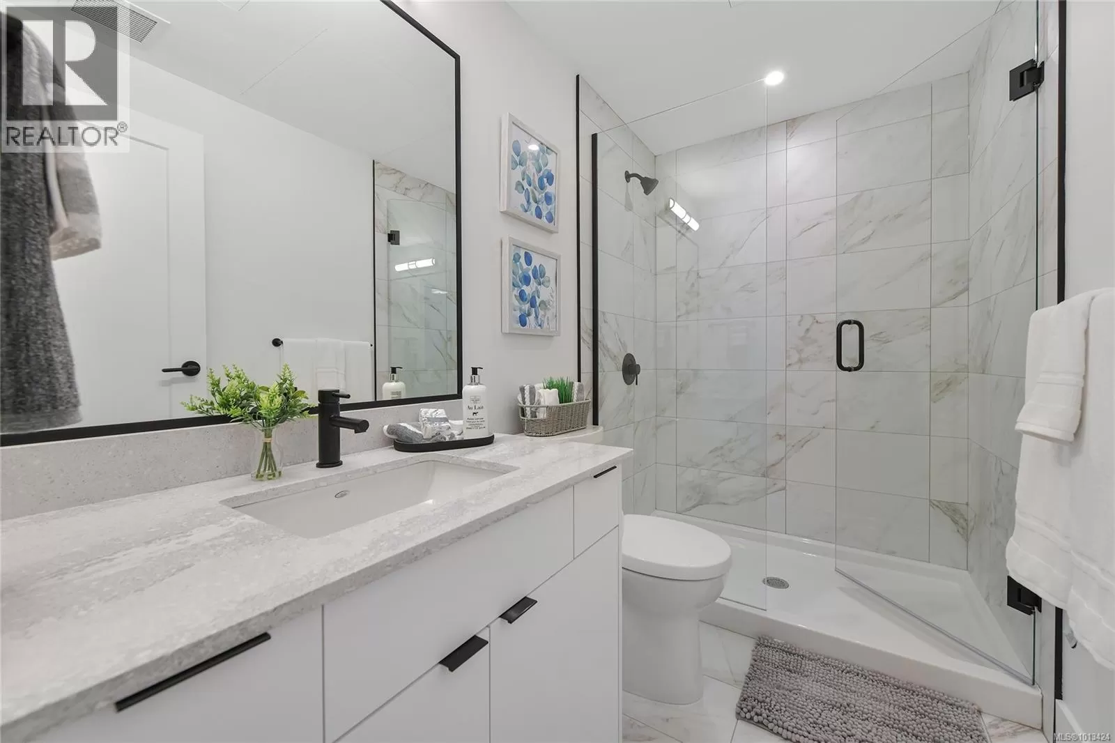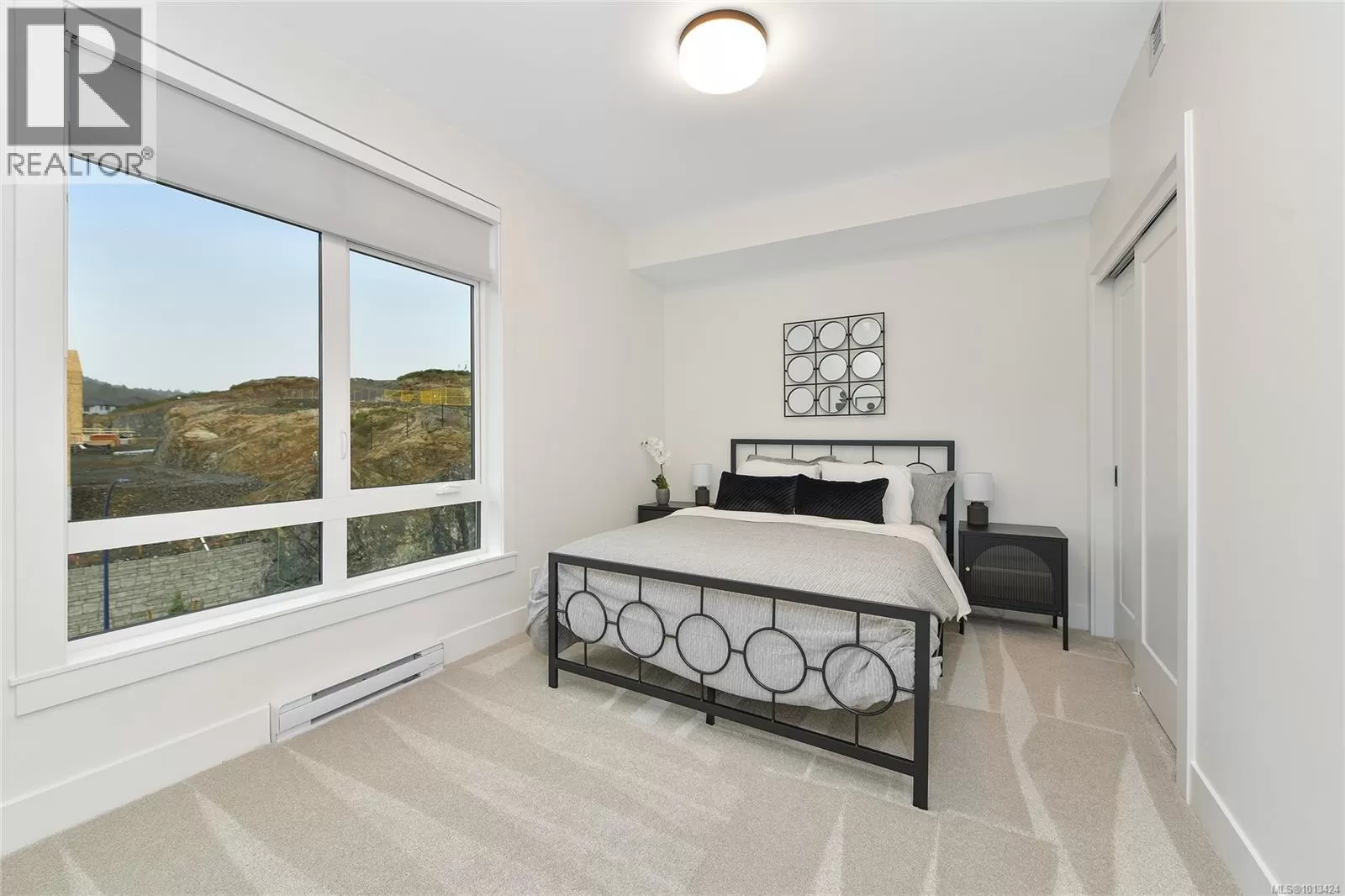 Discover this stunning 5th floor home in the heart of the vibrant, lakeside Westhills community. With 1,260 sq. ft. of bright, open-concept living, this south-facing residence captures expansive views of Mt. Wells and the Sooke Hills through its floor-to-ceiling windows. Offering 2 bedrooms, 2 bathrooms, and a flexible den, this home combines thoughtful design with modern comfort. Step onto your private deck and take in the sun-soaked outlook over the beautifully designed courtyard. Inside, every detail is elevatedâcustom cabinetry, quartz countertops, and soothing neutral tones pair seamlessly with tiled bathrooms. The spa-like ensuite features a double vanity and an elegant glass-enclosed tiled shower. Residents of Solaris North enjoy access to an extraordinary courtyard, featuring an outdoor kitchen with BBQs, cozy firepits, dining spaces, a putting green, herb gardens, and even an outdoor gymâall set against a backdrop of sparkling lake views. Nearby, youâll find endless recreation with trails, Jordie Lunn Bike Park, and the Langford Gravity Zone. Located just minutes from downtown Langford, everything you need is within reach: shopping, dining, theaters, Starlight Stadium, Westhills Arena, and more. Families benefit from schools within walking distance, while Highway #1 ensures commuting is effortless. Now is the time to secure your home at Solaris North. Tour the show suite at 205-1110 Samar Crescent, open daily from 12â4 pm, or arrange a private showing. Own this piece of Westhills living with only a $25,000 deposit! (id:27476)