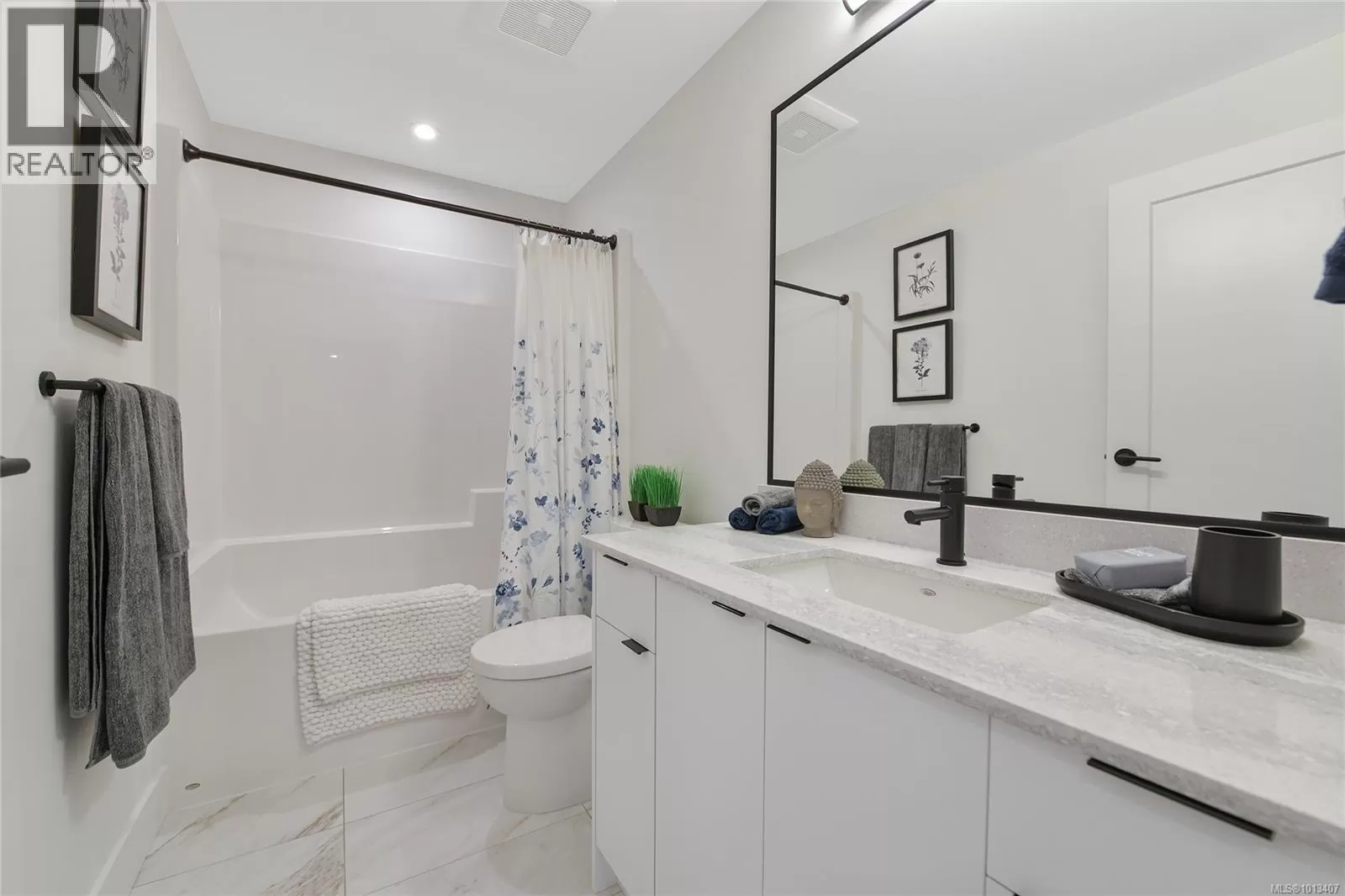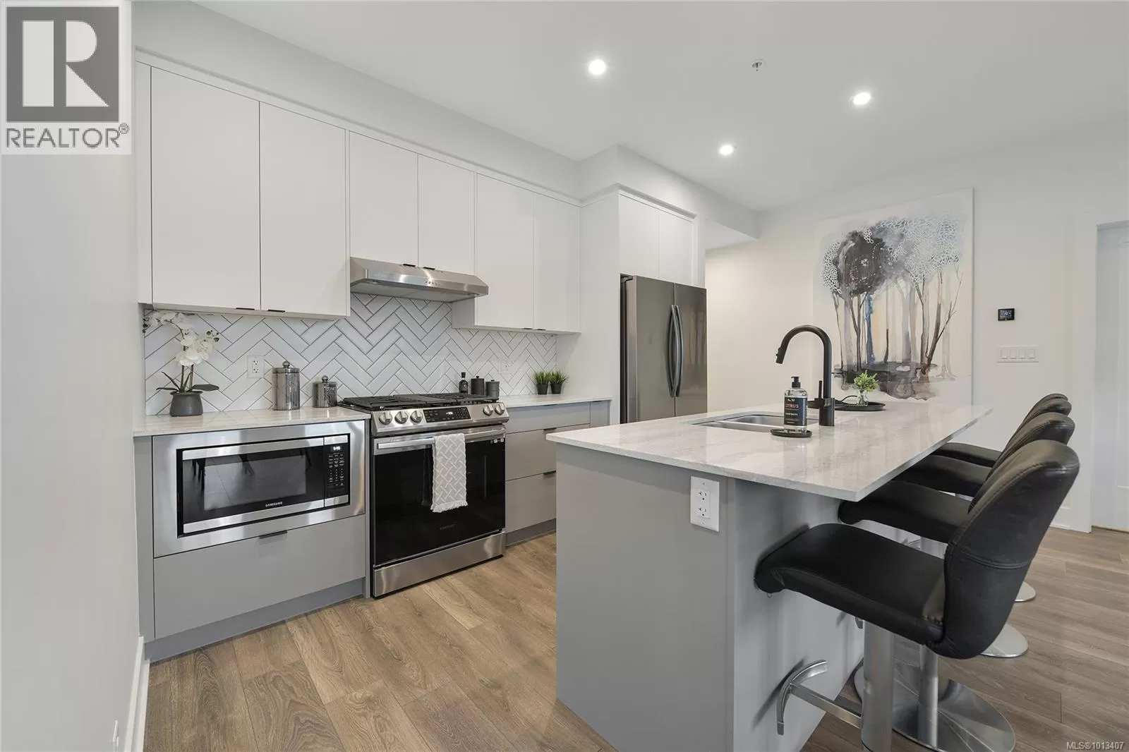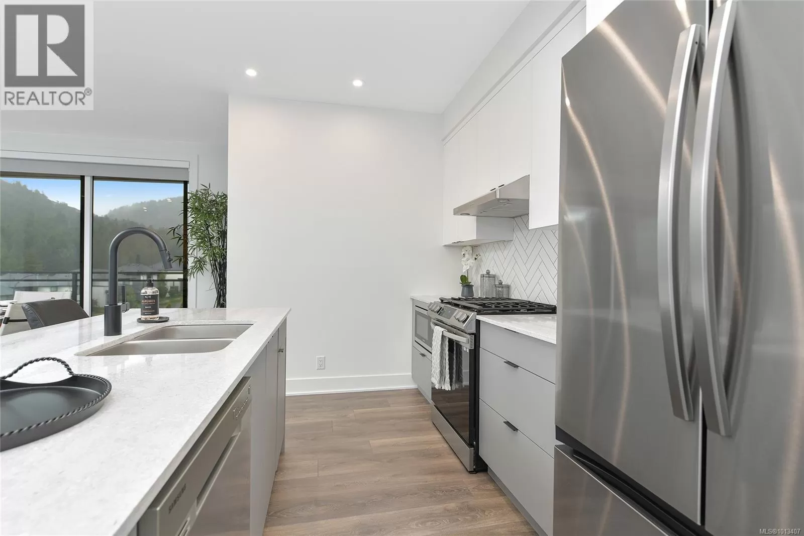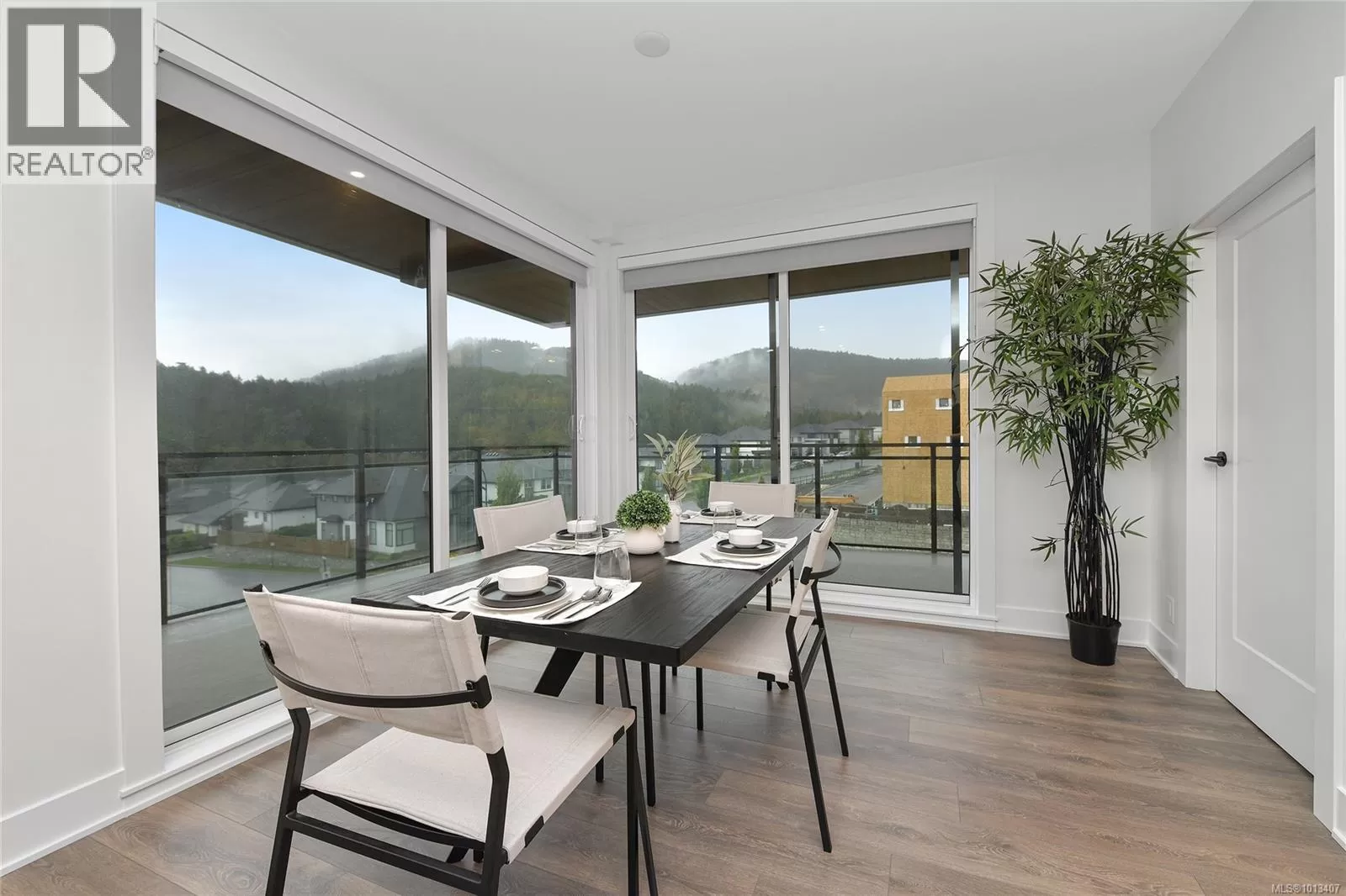 Welcome to Solaris North, an exciting new opportunity in the desirable lakeside community of Westhills. This bright, south-facing home offers 1,260 sq. ft. of thoughtfully designed living space, highlighted by floor-to-ceiling windows framing sweeping views of Mt. Wells and the Sooke Hills. Featuring 2 bedrooms, 2 bathrooms, and a versatile den, this residence balances style with functionality. Step outside to a generous deck, ideal for enjoying sunshine and courtyard views. Inside, refined finishes create a warm, inviting feelâcustom kitchens, quartz countertops, and neutral palettes pair beautifully with tiled bathroom floors. The spa-inspired ensuite includes a glass-enclosed tiled shower and double vanity. Residents will love the one-of-a-kind courtyard amenities: outdoor kitchen with BBQs, dining areas, herb garden, cozy firepits, putting green, and an outdoor gymâall with lake vistas as your backdrop. Explore nearby trails with your four-legged companion, or venture into Jordie Lunn Bike Park, Langford Gravity Zone, and the areaâs vast network of hiking and biking routes. Everything you need is close at hand in downtown Langfordâshops, restaurants, theaters, big box stores, Starlight Stadium, Westhills Arena, and Langford Lanes. Families will appreciate walkable schools from kindergarten through high school, while Hwy #1 makes commuting and weekend escapes simple. Donât miss your chance to embrace the island lifestyle at Solaris North. Visit the show suite at 205-1110 Samar Crescent, open daily from 12â4 pm, or book your private tour today. Secure your new home with just a $25,000 deposit! (id:27476)