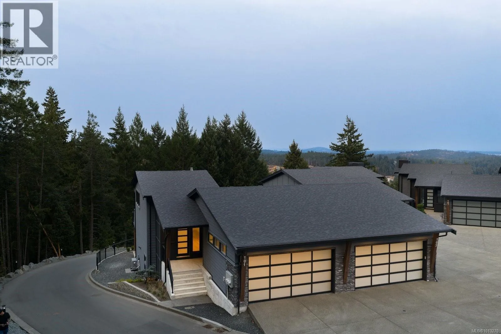 Welcome to Copper Rock, an exclusive gated community of 11 luxury townhomes on Bear Mountain with highly sought-after main floor primary suites. Designed for modern living with timeless style, these homes feature double garages, dramatic 13â ceilings, and oversized windows showcasing stunning mountain, tree-top, ocean, and city views. Thoughtful layouts complete with excitingly enormous media rooms, a private gym, an office, a spa-inspired ensuite, and plenty of low-maintenance outdoor + driveway space. Entertaining is effortless in this chefâs kitchen boasting quartz island seating, two-toned cabinetry, plaster hood fan, and integrated Fisher & Paykel appliances. Floorplans range from 2,572â3,312 sq. ft. Set on a quiet cul-de-sac, Copper Rock combines privacy and easy living with access to Bear Mountainâs world-class golf, trails, and amenitiesâjust 20 minutes from downtown Victoria. Experience everyday luxury in a home designed for lifestyle. (id:27476)