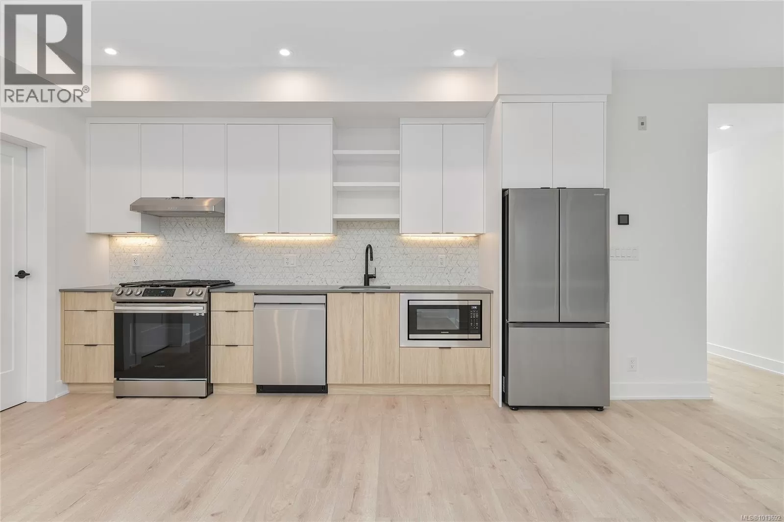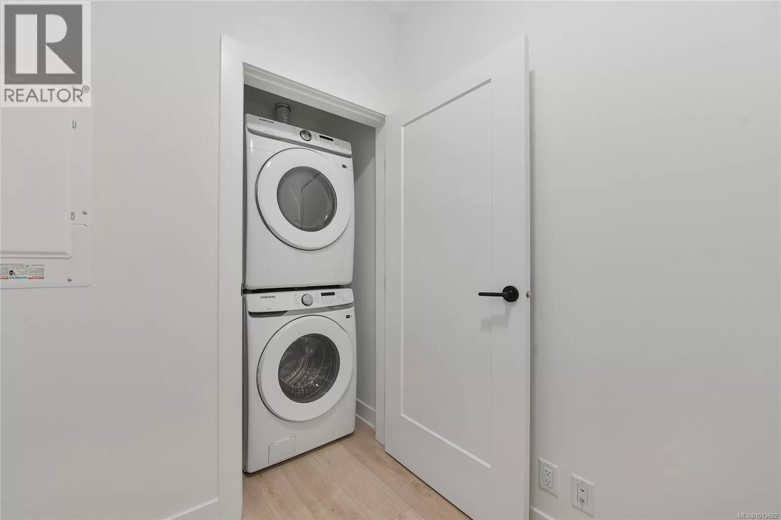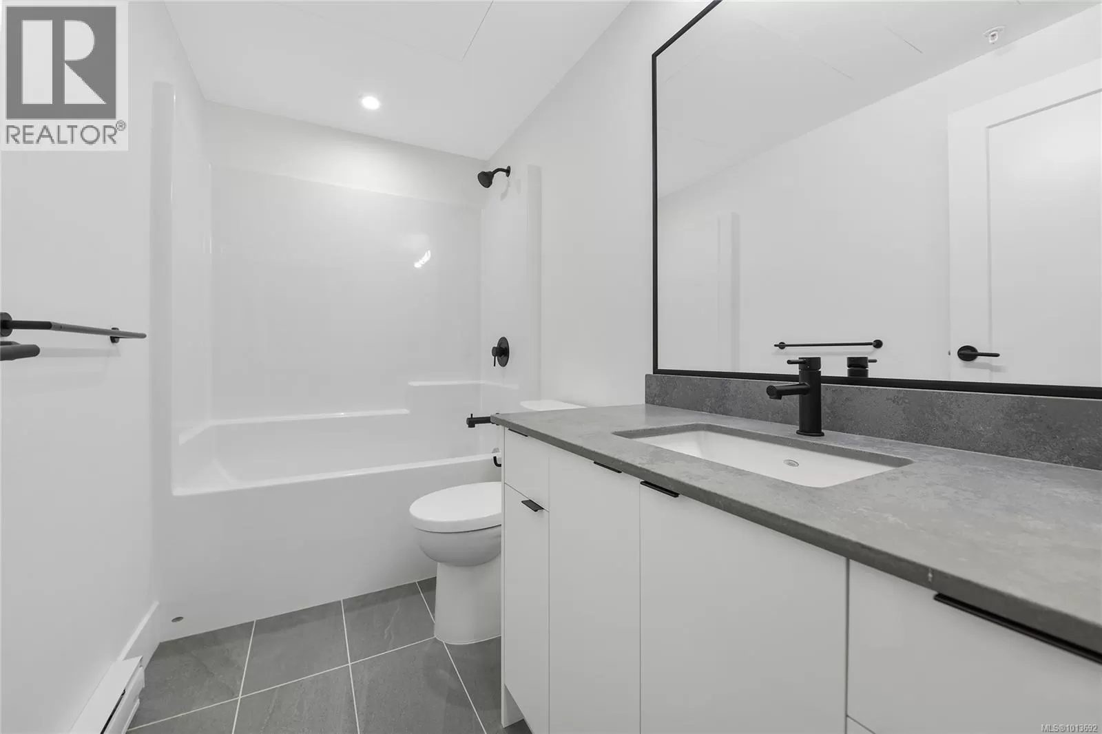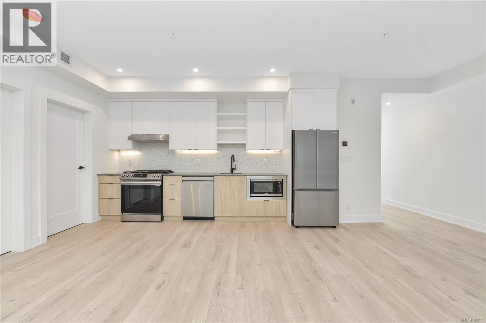 Welcome to Solaris North, a stunning new addition to the sought-after lakeside community of Westhills. This contemporary, south facing 1-bedroom, den & 1-bathroom unit is 686 sq ft and features an open-concept layout with 9â ceilings and expansive windows designed to take in the views and flood your space with natural light. Enjoy a modern living experience with stainless steel appliances, full-size in-suite laundry, quartz countertops, and chic two-toned cabinetry. The space is perfect for both cozy nights in and entertaining guests. Step outside and discover a world of outdoor opportunities with trail networks, hiking, biking, parks, and playgrounds right at your doorstep. Your dog will appreciate the ample options for daily walks in the scenic surroundings. Solaris North offers an exceptional amenity package, including an outdoor kitchen, BBQ areas, dining spaces, cozy firepit seating, herb gardens, and even a putting green. Stay active with the outdoor gym area or take advantage of the pet-friendly features like the convenient pet wash station. The building also includes bike storage, a car wash, and EV-ready parking stalls. Ideally located, Solaris North is a short drive from vibrant Langford for all your shopping and dining needs and offers easy access to Hwy #1 for effortless commuting and weekend getaways. Donât miss your chance to make Solaris North your new home. Only a $25,000 deposit is required to secure your home. Show suites are open daily from 12â4 pm at 205 -1110 Samar Crescent. Visit us and discover your new home today! (id:27476)