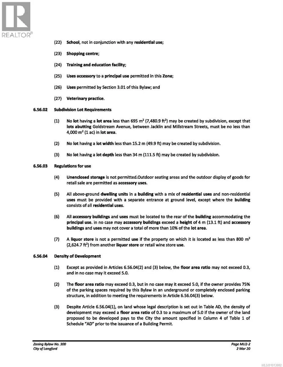 Court Ordered Sale, price just reduced! Flexible MU2 zoned vacant property ideal for new commercial business or higher-density mixed use development. The MU2 (Mixed Use Residential Commercial) zone offers several commercial/residential uses including retail, fitness center, daycare, restaurant, office, medical, apartment and many more. Located in the heart of Langford this 7,962sq' lot is a 69.6' x 114.4' cleared and level rectangle. Draft OCP (Due by December 2025) identifies this as City Centre Development Permit Area envisioning mid rise up to 6 stories. Central access to Trans Canada and Hwy 14. Walking distance to downtown Langford shopping and services. Front faces south/south west. Court ordered sale, further information available for that process. (id:27476)