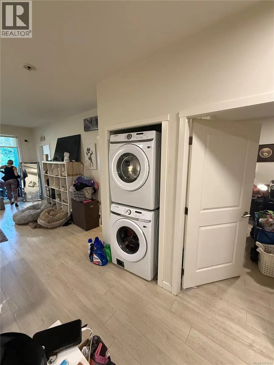 This bright North-East facing 2-bedroom, 2-bathroom unit spans 875 square feet with a smart layout and bedrooms separated for privacy. Both bathrooms feature shower/tub combos, and the primary suite includes a private ensuite and walk-in closet. In-suite washer and dryer adds convenience. The kitchen offers quartz countertops, stainless steel appliances, and a peninsula for extra seating. Step out onto the covered balcony for additional year-round living space. Building amenities include secure bike storage, a gym, and a large south-facing shared patioâperfect for socializing or soaking up the sun. Pet-friendly with no weight restrictions, plus secure covered parking with fob entry. Built in 2023, this 6-story, 45-unit building offers video security, EV-ready parking, and remaining 2-5-10 warranty. Ideal as a home or investment in Langfordâs fast-growing community. (id:27476)