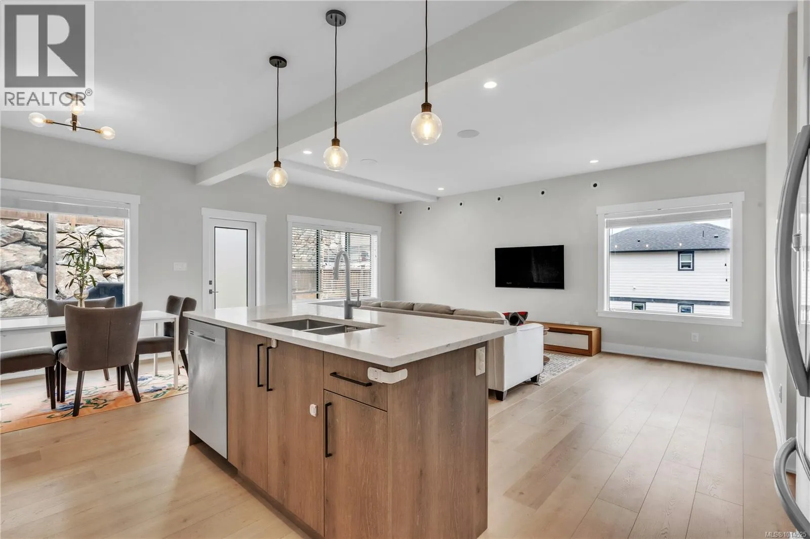 Soak in the views from this thoughtfully designed Bear Mountain home, offering nearly 2,800 sq ft, including a legal 1-bed ground-level suite. The main floor features a bright kitchen with island seating, stainless steel appliances, and an open breakfast nook + family room layout as well as a separate living/dining room with a gas fireplace and front deck to take in the sprawling views. Upstairs, youâll find a spacious bedrooms with breathtaking views from the primary + walk-in closet and ensuite with heated floors. Additional comfort upgrades include air conditioning, heated floors in the main bath, and central vac system. Built Green certified with quality finishes throughout, this home also has landscaping with irrigation, garden bed, a gas BBQ hookup, double car garage, and a fully fenced yard. Enjoy the Bear Mountain lifestyle with world-class golf, dining, and amenities just minutes from your door. (id:27476)