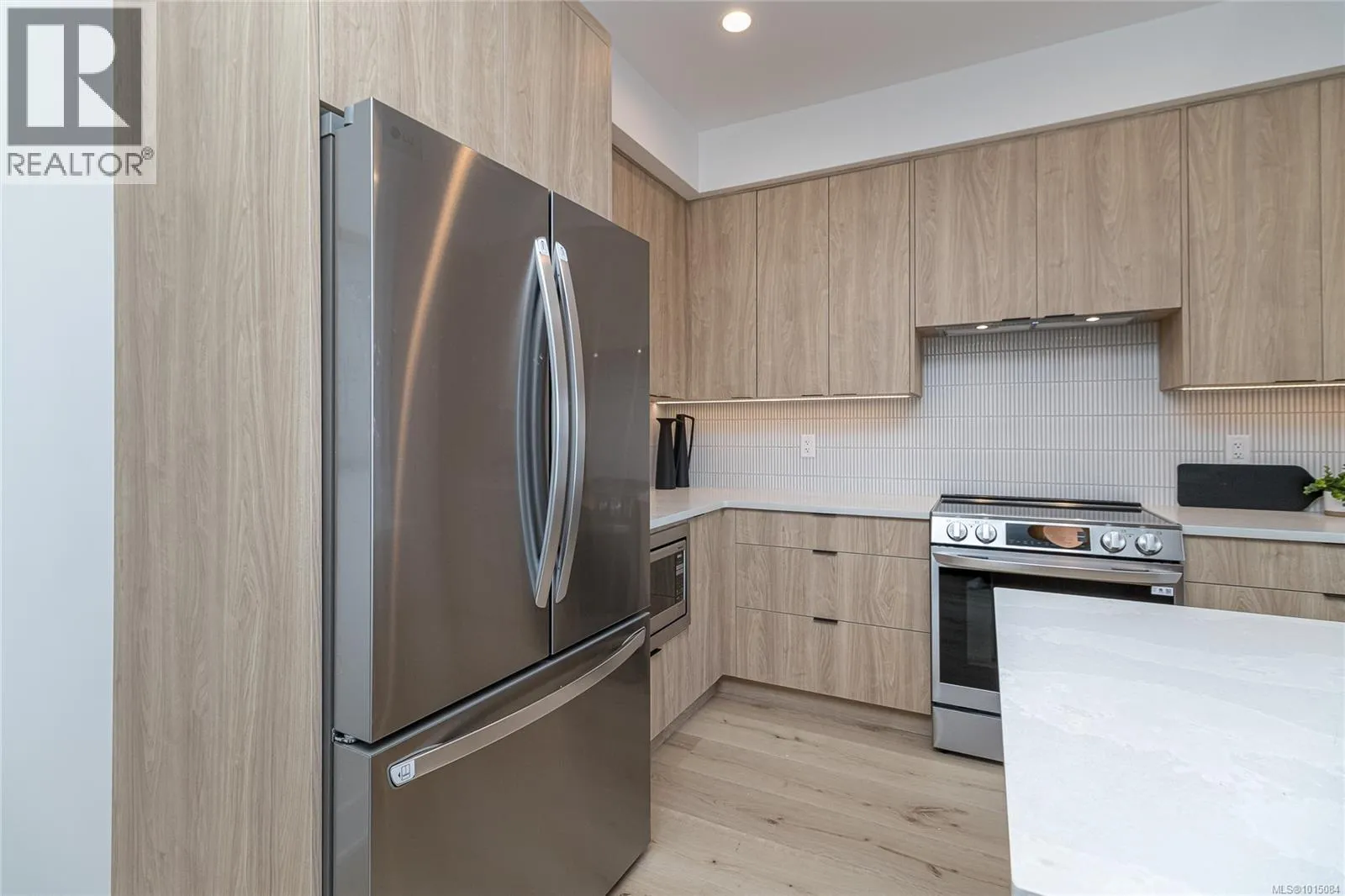 Ask about our limited quick close $15,000 credit. Welcome to Dolomite Ridge, the latest collection of spacious townhomes from award winning Verity Construction in the Bear Mountain area. This beautiful end-unit home features amazing outlooks and views, 4 bedrooms and 4 baths, as well as separate lower level rec room with rear patio and landscaped and irrigated yard. This step down style lot allows for an open concept living area that walks out onto a large deck with great views and outlooks and gas BBQ hookup. Great for hosting! The kitchen is complete with a stainless steel appliance package, quartz counters, and an island with breakfast bar. Upstairs is three bedrooms including a primary with walk in closet and 5 pce ensuite with tiled walk in shower, stand alone tub, and dual sinks. Efficient heating and cooling via a dual head ductless heat pump system. Built Green Certified. Double Garage. Laminate flooring in the main area. New home warranty. Move in this summer! (id:27476)