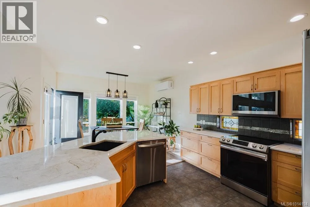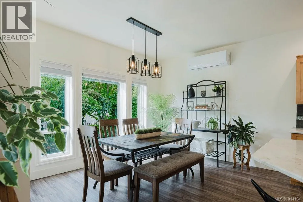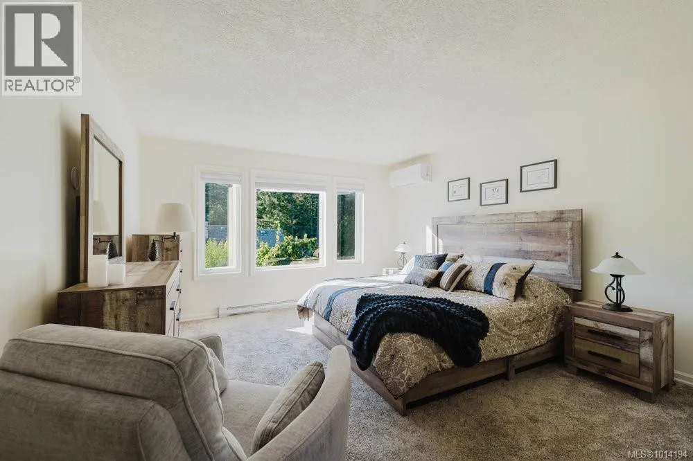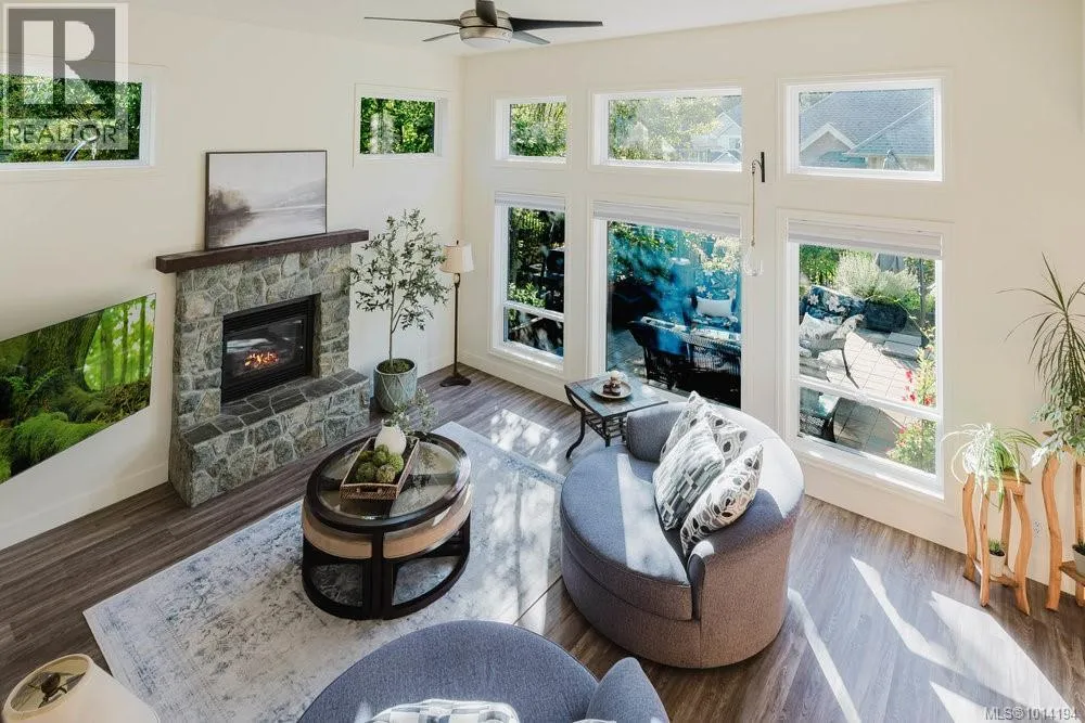 Open House: Sunday 2-4pm Cozy, charming and beautifully maintained, this 3 bed, 3 bath home offers 2,100sqft of comfortable living on a quiet no-through street in a welcoming family neighbourhood.The sunny west-facing backyard features mature, lush landscaping and a private 274 sqft patioâideal for relaxing and BBQs. The open-concept layout includes vaulted ceilings, large windows, a gas fireplace, a main floor bedroom with full bath, laundry and kitchen closet pantry. Upstairs are two spacious bedrooms and two more bathrooms. Updates include appliances, granite countertops, hot water on demand, heat pump, blinds, fresh paint inside and out, artificial turf, and more. Enjoy a triple driveway, double garage with storage and EV charger, and full crawlspace for additional storage. Steps to parks, minutes to schools, shopping and amenities with Bear Mountain Resort - golf, spa, dining, tennis and fitness just a quick drive or walk up the mountain. A warm, welcoming home ready for new memories to be made! (id:27476)