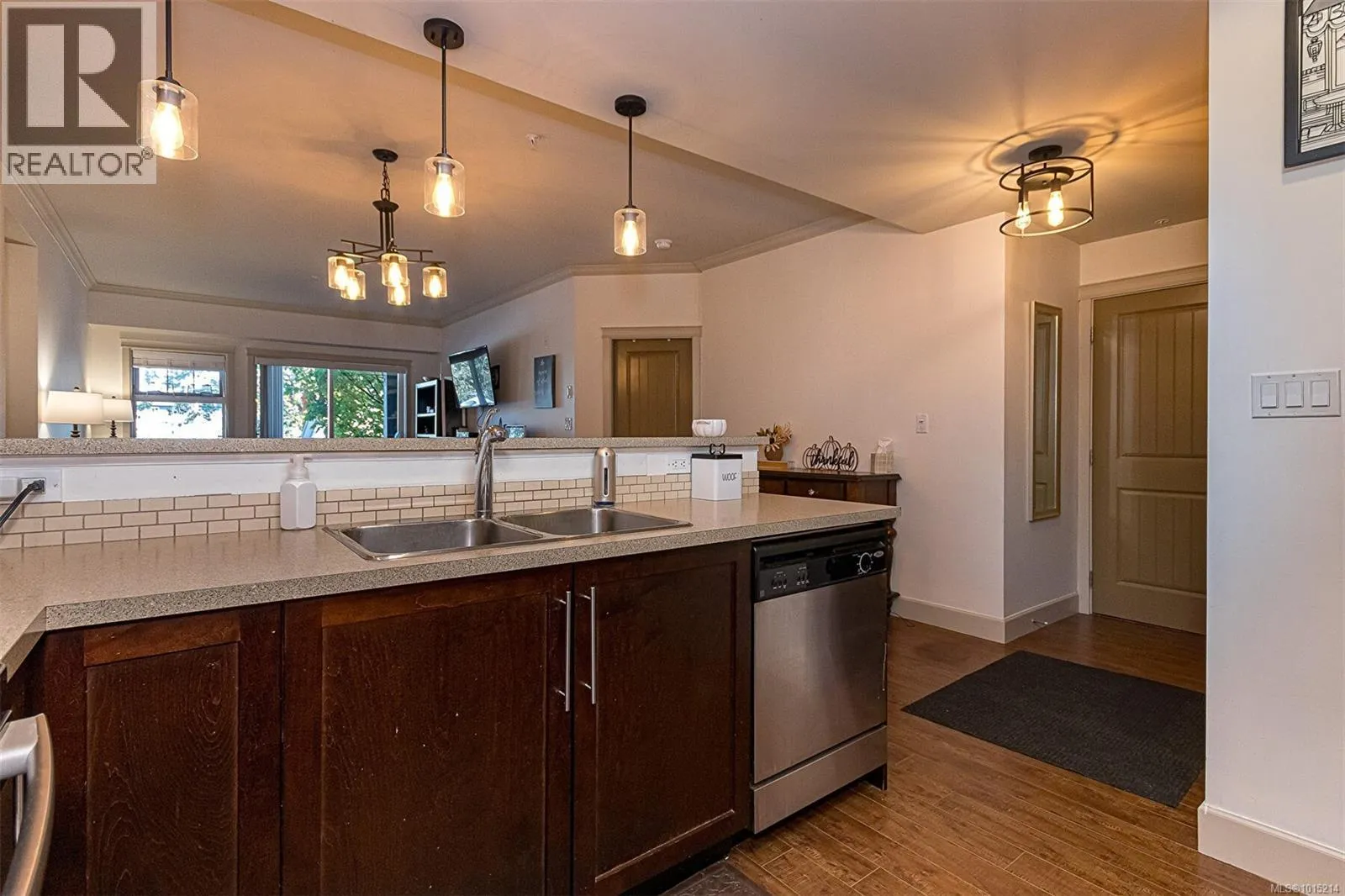 OPEN HOUSE SAT NOV 15TH 2:30-4PM. New Price. $599,900 Truly Amazing 2 huge bedrooms, 2 bathrooms, 2nd Level Corner Unit Condo. Features Spacious Kitchen with sit up space, Dining area, large bright living room with smartly done built in electric Fireplace and sliding glass doors to a Massive Sundeck. If you like to entertain or Garden with 490 ft of Deck Space, this 2010 yr built building 'The Stonegate' has lots of upgrades. Roof was just redone and outside of building freshly painted. Perfect Location in the middle of Langford, 203-2881 Peatt Rd, minutes walk to Westshore Mall and Langford town Core. This unit has to be seen to be truly appreciated, ideal for a Retirement Couple or someone entering the market for 1st time. The unit comes with 1 parking spot and storage locker. Has own laundry room with storage area, Building has no age or rental bylaws and limited pet restrictions, great common areas, video surveillance, and definitely a proud place to call home, Call for your own private viewing. (id:27476)