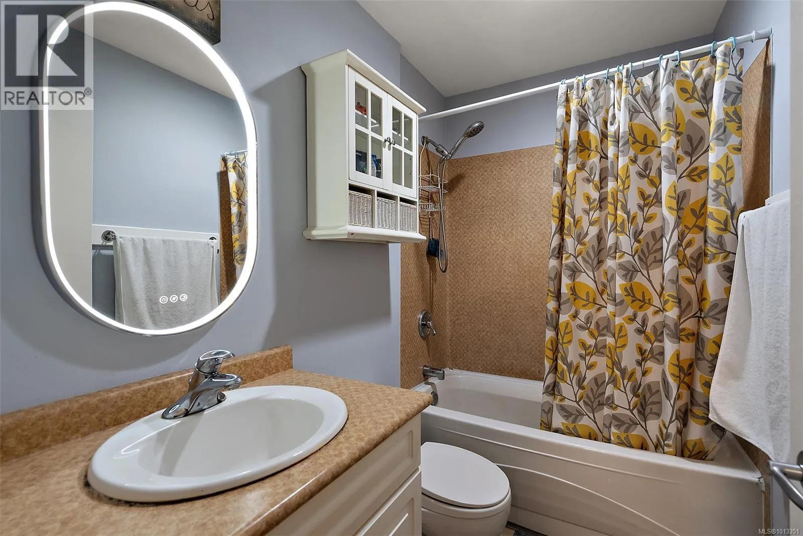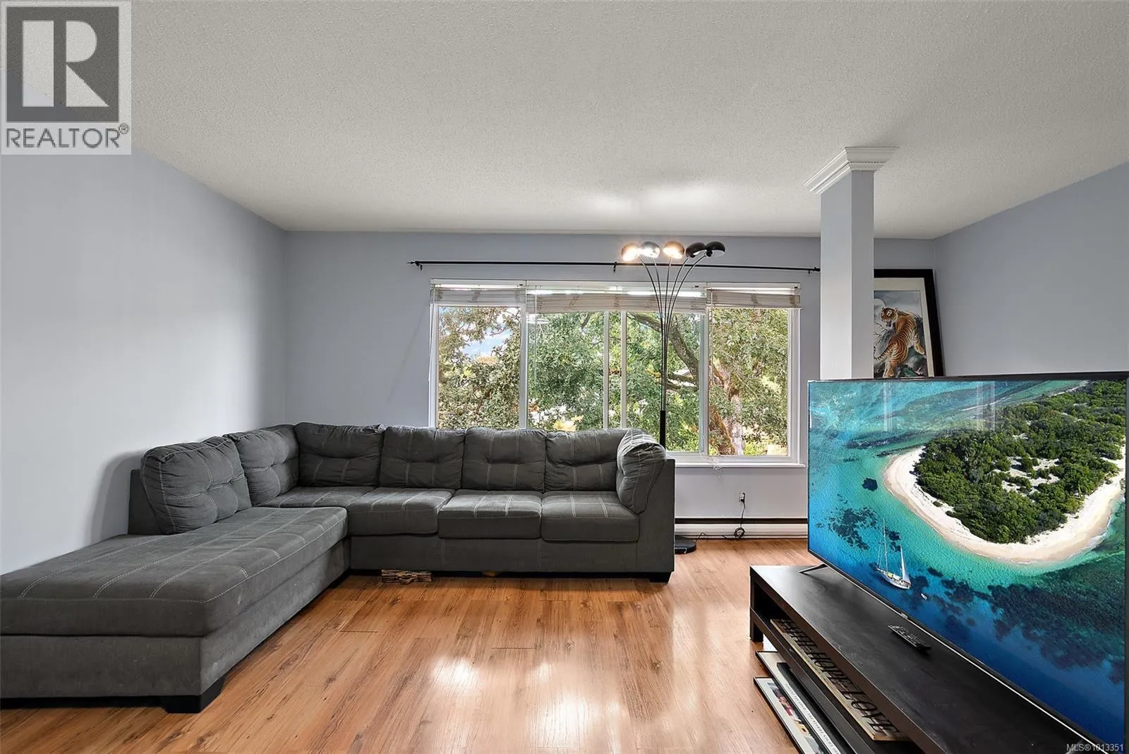 JUST REDUCED! This freshly painted upper-floor 3-bedroom, 1-bath corner unit is one of the largest in the building, offering a rare blend of space, comfort, and convenience. The open-concept layout includes a generous kitchen that flows into the dining and living areas â perfect for everyday living or entertaining. Step out to the balcony for BBQs or a quiet spot to relax, and enjoy the practicality of in-suite laundry. One parking stall is included, with the option to rent a second. Tucked away on a quiet no-thru street next to the E&N Rail Trail, this pet-friendly complex is just steps from parks, schools, shopping, dining, and transit, with direct walking and cycling access to Colwood, View Royal, and beyond. Whether you're a first-time buyer, downsizer, or investor, this is a smart opportunity to own in one of Langford's most connected neighbourhoods. (id:27476)