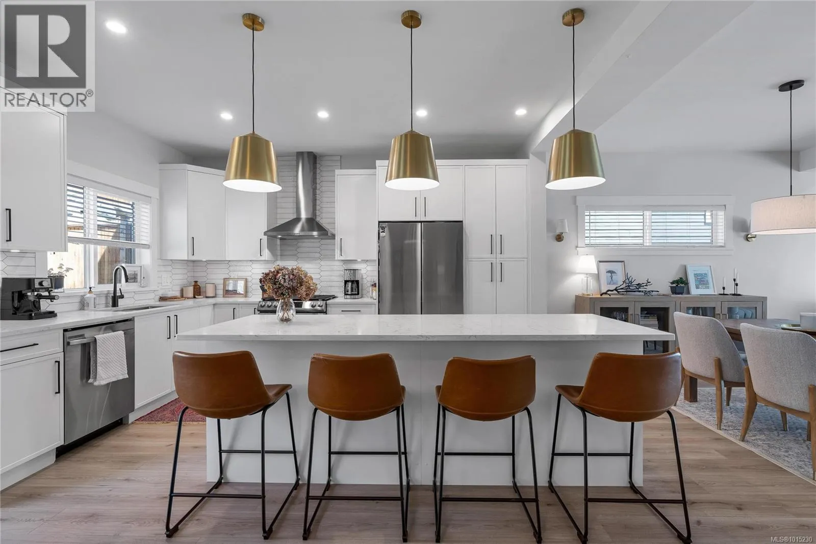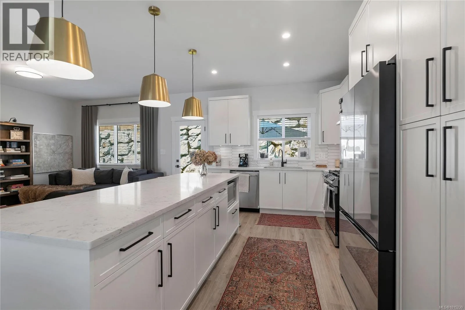 Welcome to 2645 Mica Place in the sought-after Westview community on Bear Mountain. This modern, green-certified home offers 3 bedrooms, 3 bathrooms, a den, plus a legal 1-bedroom suite with separate entry, hydro, and laundryâperfect for rental income or extended family. Designed for comfort and efficiency, it features a smart home system, energy-saving mini-split heating/cooling, and a natural gas fireplace. The open-concept main floor includes a spacious kitchen, dining, living, and family room with access to a sunny west-facing patio with gas BBQ hookup. A large front deck provides breathtaking southern ocean and Olympic Mountain views. Additional highlights: custom lighting, automatic primary bedroom drapes, double garage with epoxy floors, roller blinds, irrigation, and hot water on demand. Move-in ready in one of Langfordâs most desirable new developmentsâNo GST. (Some furnishings are negotiable) (id:27476)
