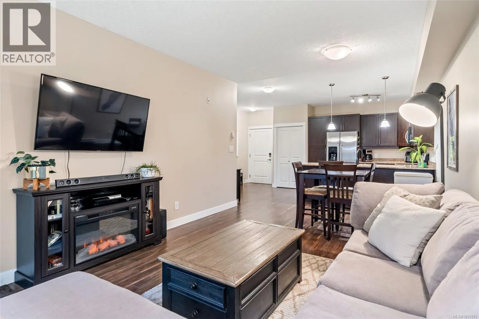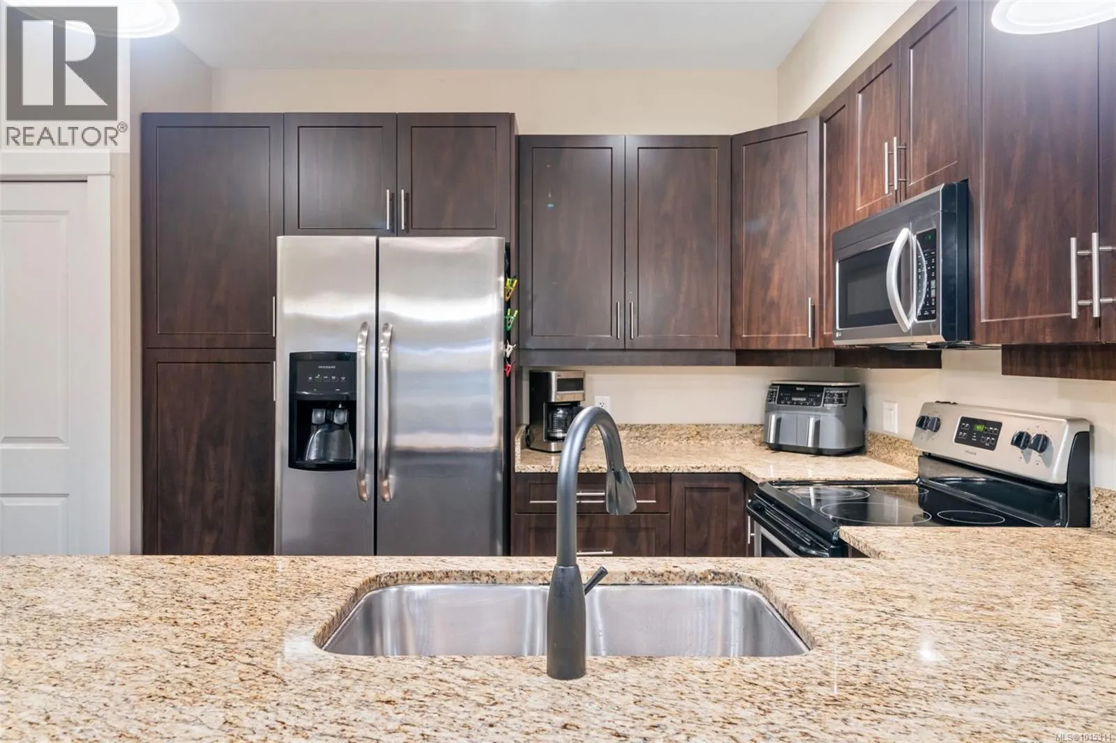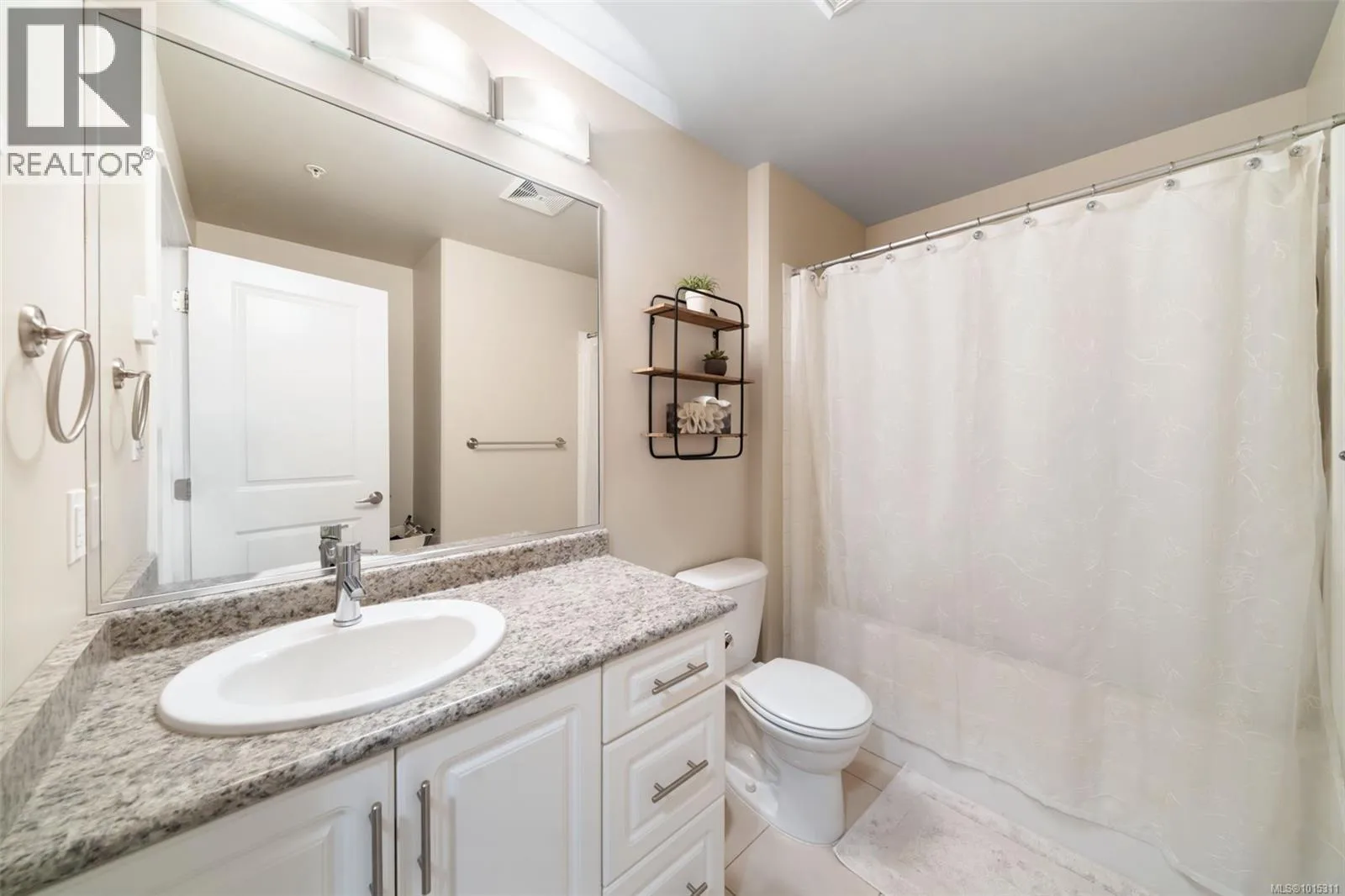 Welcome to Doma Living! Rarely available, this is the largest floor plan in the complex. Located on the quiet side of the building, step inside and be greeted by an open-concept entry that immediately feels like home. The kitchen boasts abundant cabinetry and counterspace, while the spacious living and dining areas are perfect for entertaining or relaxing. The balcony features a convenient gate with access to the grassy yard, perfect for dog lovers (up to 2 dogsâno size restriction)! The oversized primary bedroom is a true retreat, offering ample space for a king-size bed, with a walk-thru closet to the ensuite, while the second bedroom is ideal for a guest room or home office. A main bath off the entrance keeps flow and separation. Recent updates include an LG WashTower (2024) and brand new hot water tank (Sept 2025). Secure underground parking and storage included. Steps from shops, restaurants, transit, and close to the newly opened Camosun College and Royal Roads University campus! (id:27476)